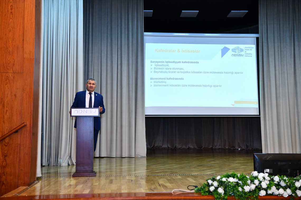 Oktyabrın 6-da Azərbaycan Dövlət Neft və Sənaye Universitetində (ADNSU) Energetika, İqtisadiyyat və menecment, həmçinin İnformasiya texnologiyaları və idarəetmə fakültələrinin birinci kurs tələbələri ilə tanışlıq görüşü başa çatıb.