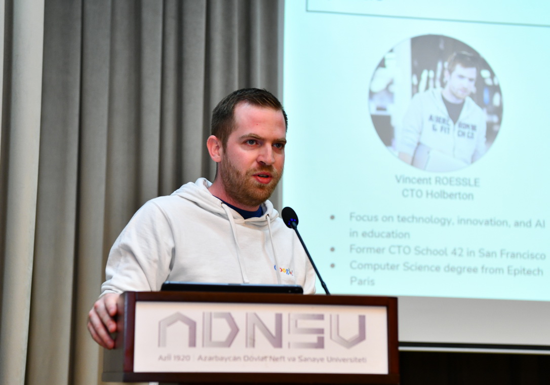 Oktyabrın 8-də Azərbaycan Dövlət Neft və Sənaye Universitetində (ADNSU) Holberton İT məktəbinin xarici nümayəndələrinin iştirakı ilə “İT dünyasının gələcəyi və iş bazarının perspektivləri” mövzusunda təlim keçirilib.
