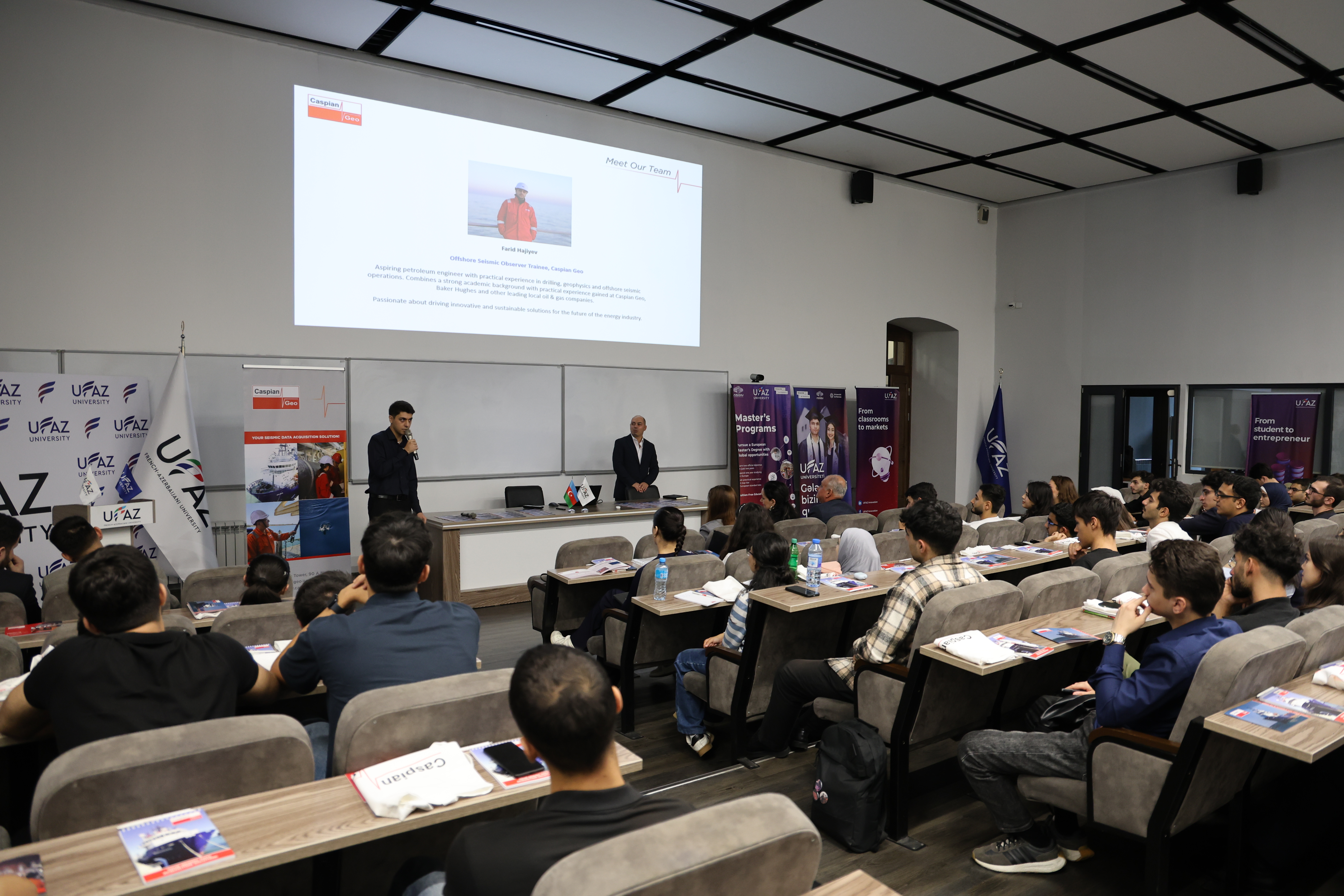 Oktyabrın 8-də Azərbaycan Dövlət Neft və Sənaye Universitetinin (ADNSU) nəzdində fəaliyyət göstərən Azərbaycan-Fransız Universitetində (UFAZ) “Caspian Geo” şirkətinin təşəbbüsü ilə Karyera Günü Məlumat Sessiyası keçirilib. Sessiyada 3-cü və 4-cü kurs tələbələri, eləcə də məzunlar iştirak ediblər.