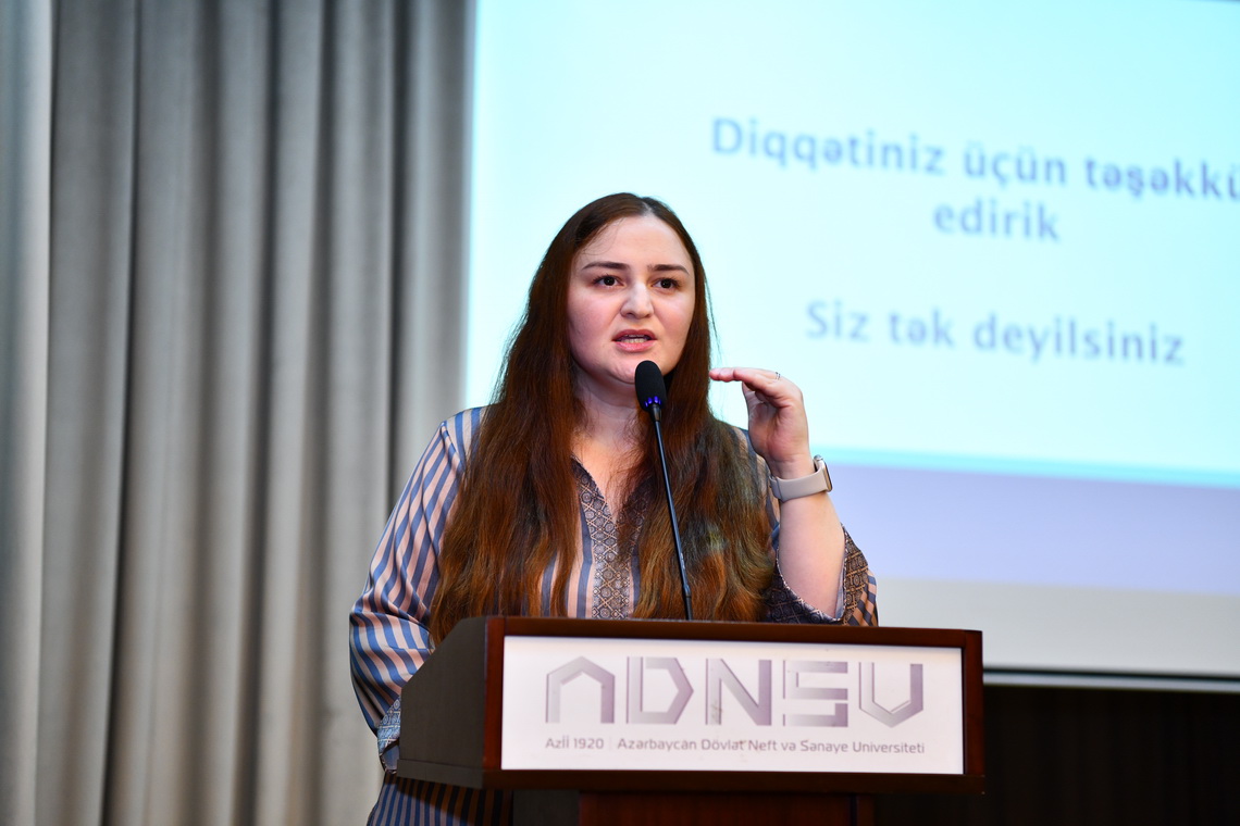 Oktyabrın 10-da Azərbaycan Dövlət Neft və Sənaye Universitetində (ADNSU) “Dünya Psixi Sağlamlıq Günü” münasibətilə tələbələr üçün maarifləndirici təlim təşkil olunub. Təlimdə universitetin bütün kurslardan olan tələbələr iştirak ediblər.