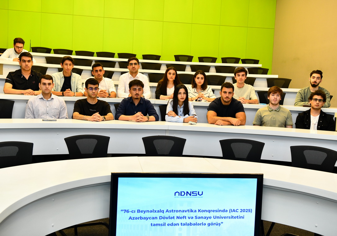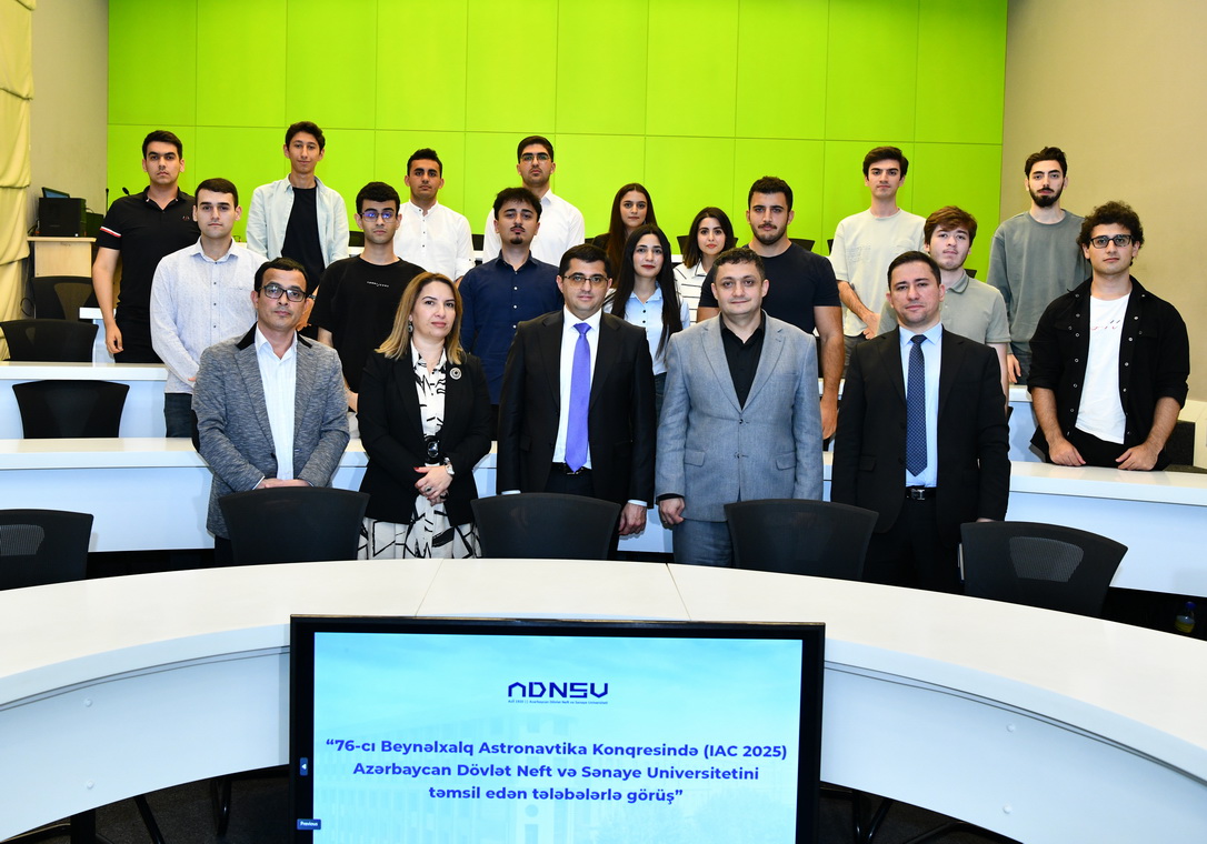 Oktyabrın 13-də Azərbaycan Dövlət Neft və Sənaye Universitetinin (ADNSU) rektoru, dosent Rüfət Əzizov Avstraliyanın Sidney şəhərində keçirilən 76-cı Beynəlxalq Astronavtika Konqresində (IAC 2025) uğurla iştirak edən tələbələrlə görüşüb.