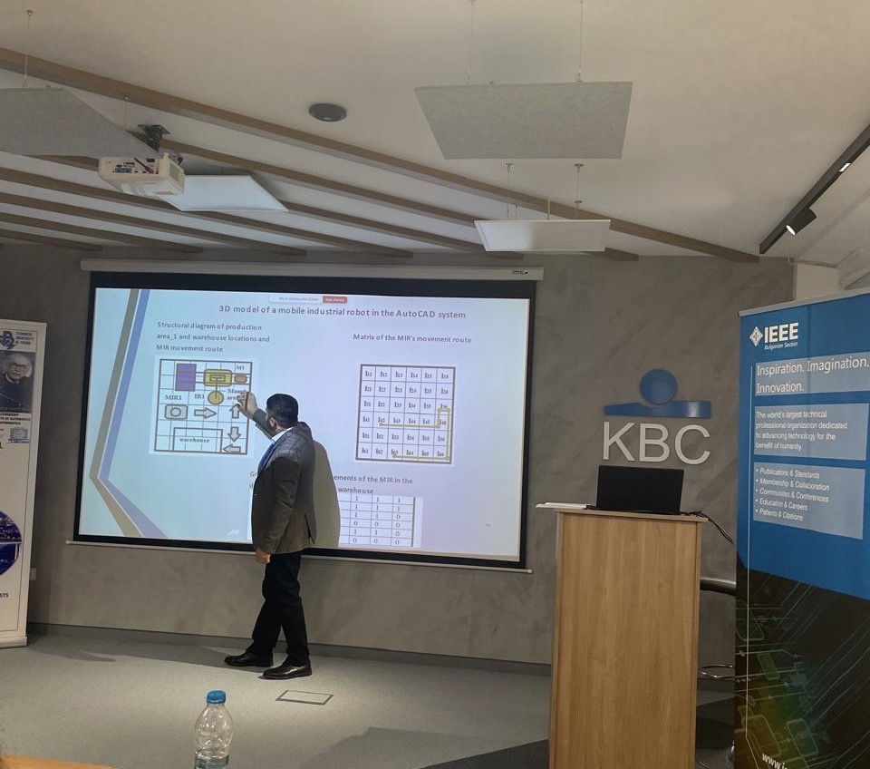Əhməd Əhmədzadə konfransda “Modeling of the Innovation Construction Mobile Industrial Robot Applied in Technology Park” adlı elmi məqalə ilə çıxış edib. Tədqiqat sənaye parklarında istehsalat proseslərinin avtomatlaşdırılması üçün innovativ mobil sənaye robotunun modelləşdirilməsini və intellektual idarəetmə mexanizmlərinin tətbiqini nəzərdə tutur.