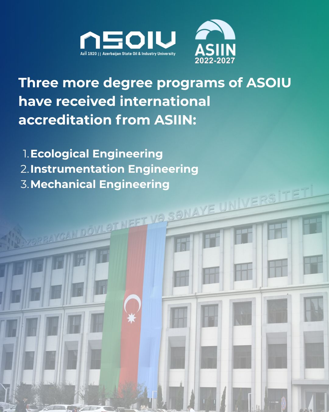 Azərbaycan Dövlət Neft və Sənaye Universiteti (ADNSU) beynəlxalq təhsil məkanında tanınma və keyfiyyət təminatı istiqamətində daha bir mühüm nailiyyət əldə edib. Universitetin üç Ekologiya mühəndisliyi, Cihaz mühəndisliyi və Mexanika mühəndisliyi olmaqla, 3 bakalavr ixtisası Almaniyanın nüfuzlu ASIIN (Accreditation Agency for Degree Programmes in Engineering, Informatics, Natural Sciences and Mathematics) beynəlxalq akkreditasiya təşkilatı tərəfindən 26 sentyabr 2025-ci il tarixli qərarla beynəlxalq akkreditasiyadan keçib. Bu qərar ADNSU-nun tədris prosesinin beynəlxalq standartlara uyğunluğunu, ixtisas proqramlarının keyfiyyətini və davamlı inkişaf istiqamətində atdığı addımların səmərəsini bir daha təsdiqləyir.