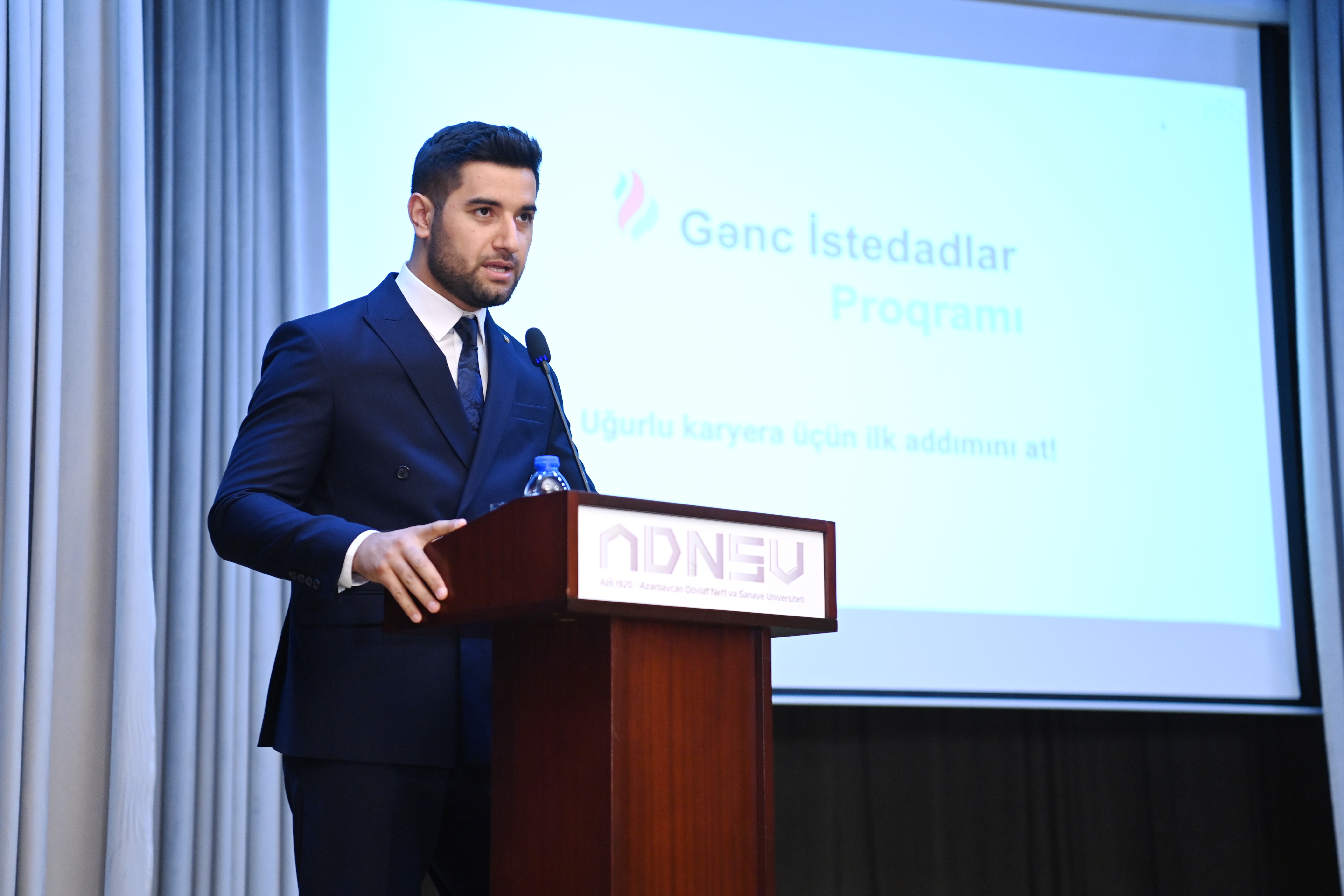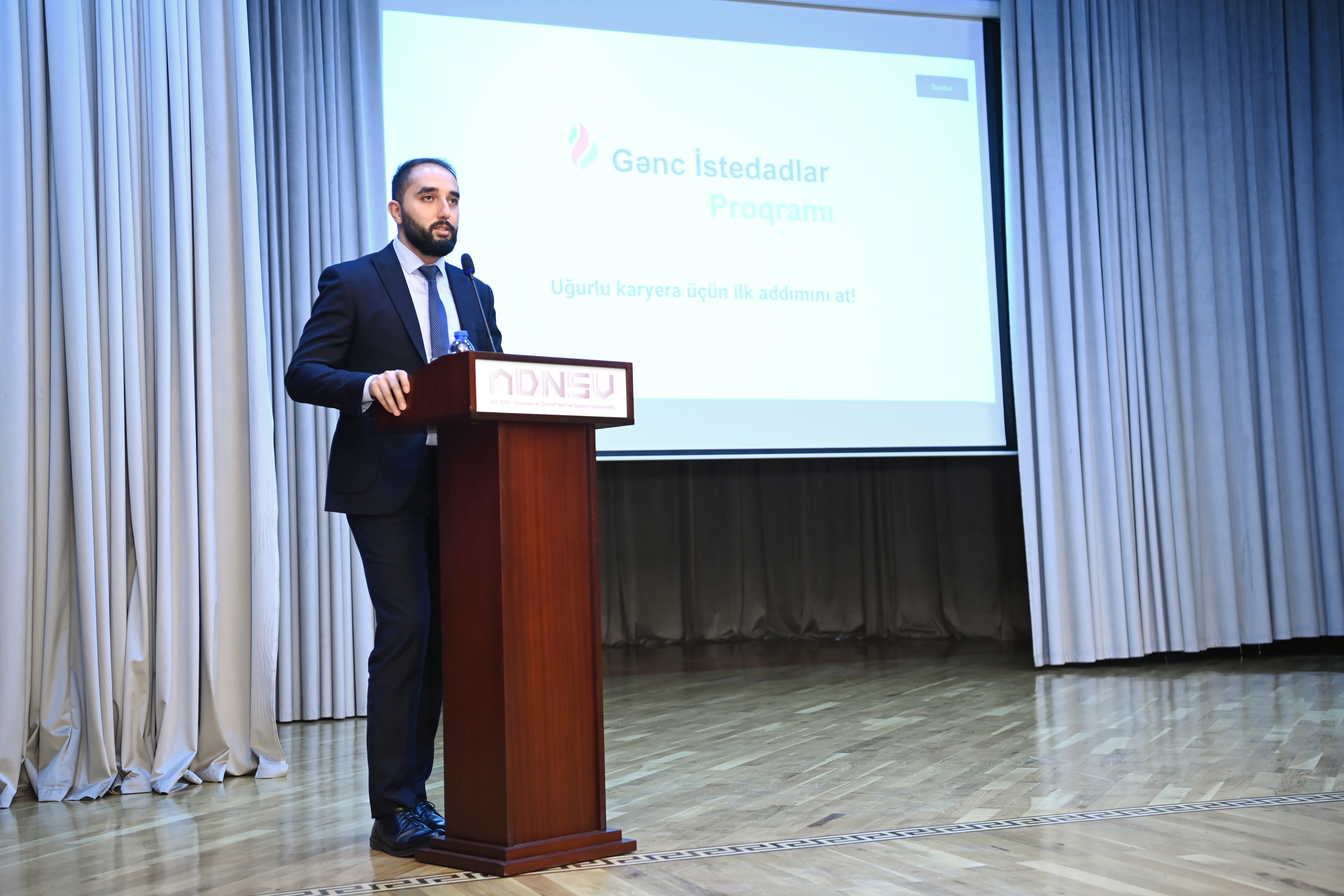İnfosessiyada SOCAR İşə qəbul şöbəsinin insan resursları üzrə aparıcı mütəxəssisləri Orxan Musayev ,Rəşad Ələkbərov və Məzunlarla iş və karyera mərkəzinin əməkdaşları iştirak ediblər. İnfosessiya zamanı iştirakçılara proqrama müraciət qaydası, qeydiyyat mərhələləri və seçim meyarları barədə ətraflı məlumat verilib. Həmçinin proqramın gənclərə qazandırdığı üstünlüklər, real iş mühitində təcrübə qazanmaq, peşəkar mentorlardan öyrənmək, müxtəlif layihələrdə iştirak etmək və SOCAR-da karyera qurmaq imkanı haqqında geniş təqdimat aparılıb.