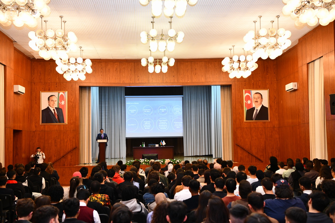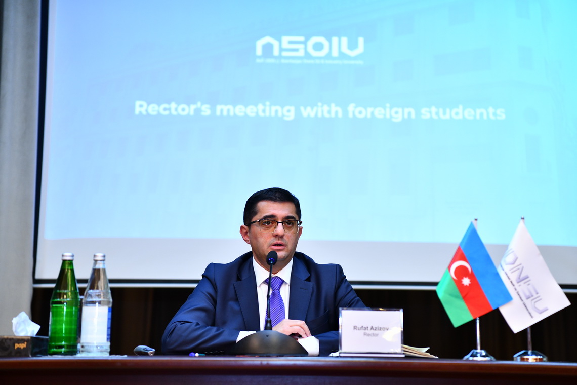 Oktyabrın 20-də Azərbaycan Dövlət Neft və Sənaye Universitetinin (ADNSU) rektoru, dosent Rüfət Əzizov universitetdə təhsil alan əcnəbi tələbələrlə görüş keçirib. Görüş zamanı tələbələrə universitetin müasir standartlara uyğun təhsil imkanları, elmi potensialı və beynəlxalq əlaqələri barədə ətraflı məlumat verilib.