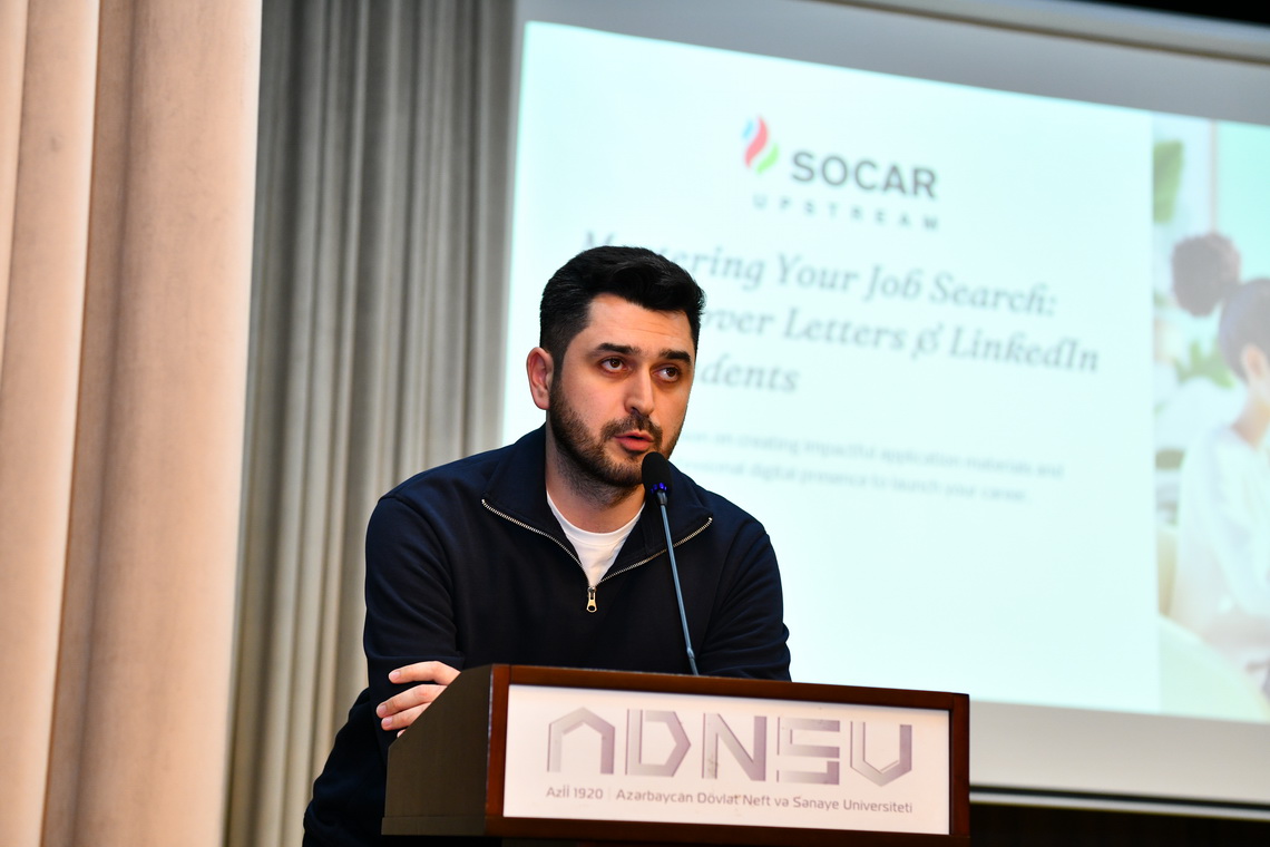 17 oktyabr 2025-ci il tarixində Azərbaycan Dövlət Neft və Sənaye Universitetində (ADNSU) “İş Axtarışında Ustalaşmaq: Tələbələr üçün CV-lər, Motivasiya Məktubları və LinkedIn” mövzusunda təlim təşkil olunub. Tədbir Məzunlarla iş və karyera mərkəzinin təşkilatçılığı ilə baş tutub.