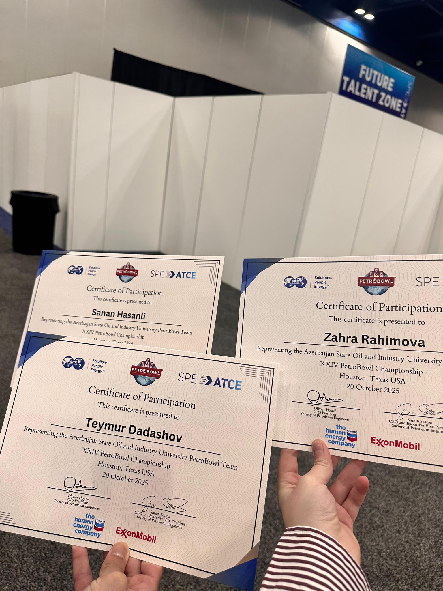 Azərbaycan Dövlət Neft və Sənaye Universitetinin (ADNSU) komandası ABŞ-da keçirilən “PetroBowl dünya çempionatı 2025” yarışmasında uğurlu çıxış edərək 1/4 final mərhələsinə qədər irəliləyib və dünyanın ən güclü səkkiz universitet komandası sırasına düşüb.