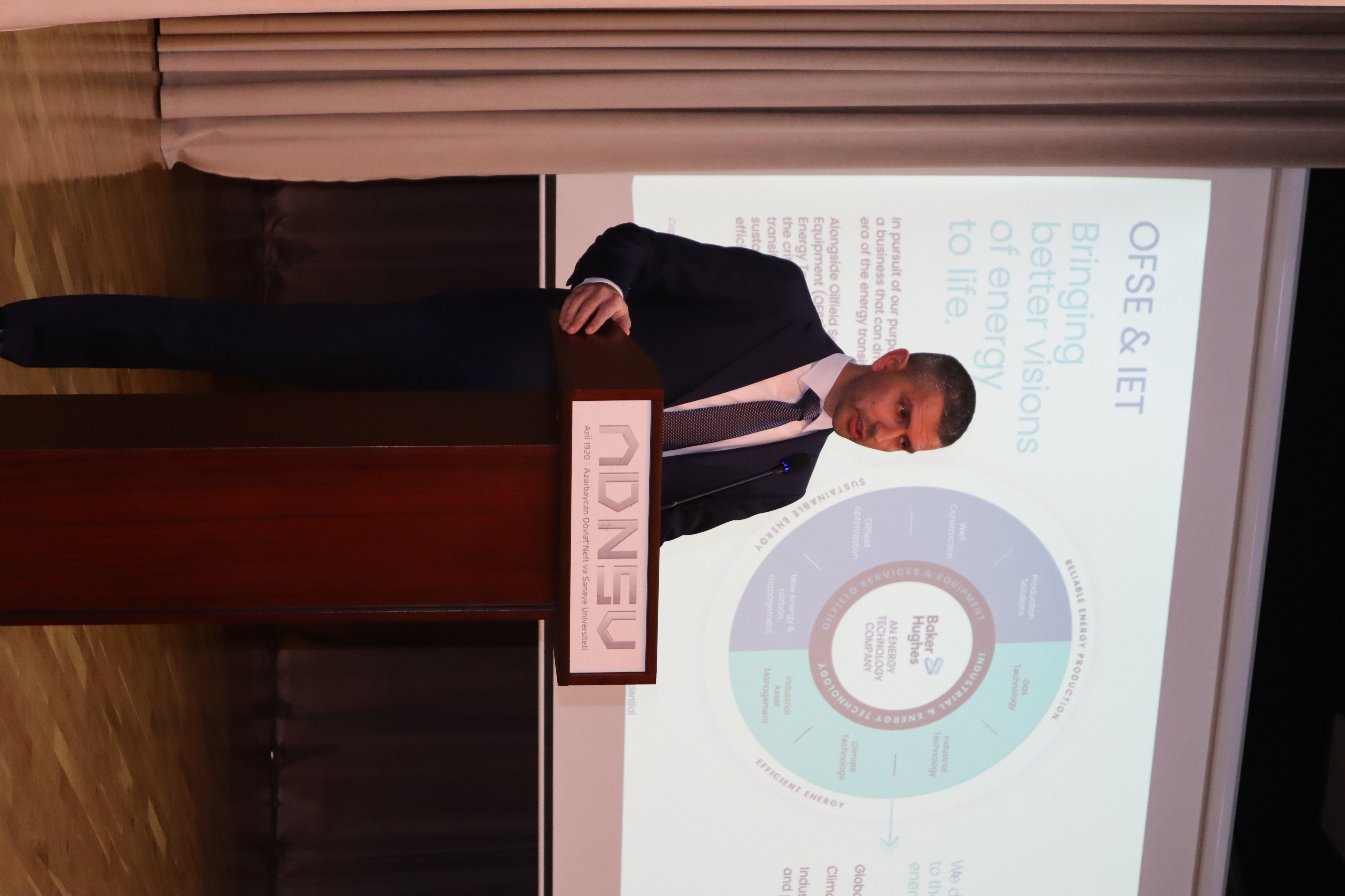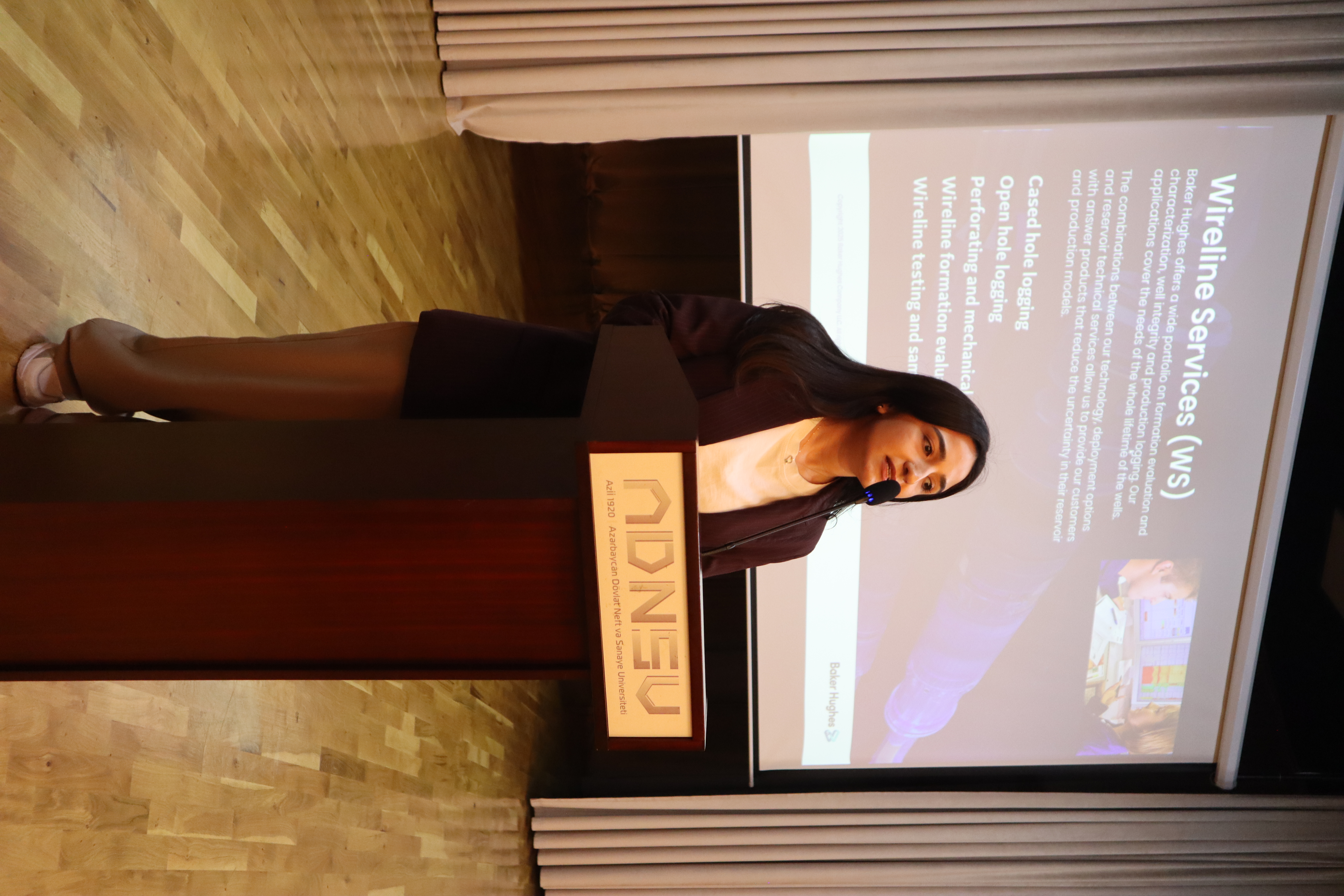 Sessiyada Baker Hughes şirkətinin ölkə üzrə filial direktoru Yanis Levzhinskiy və şirkətin menecerləri iştirak edərək tələbələrlə görüşüblər. İştirakçılara şirkətin tarixi, fəaliyyət istiqamətləri və texnoloji innovasiyalar sahəsində həyata keçirdiyi layihələr barədə təqdimat nümayiş etdirilib. Nümayəndələr tələbələri maraqlandıran sualları cavablandıraraq işə qəbul mərhələləri, təcrübə proqramlarında iştirak şərtləri və bu proqramlarda uğur qazanmaq üçün tələb olunan əsas bilik və bacarıqlar barədə ətraflı məlumat veriblər.