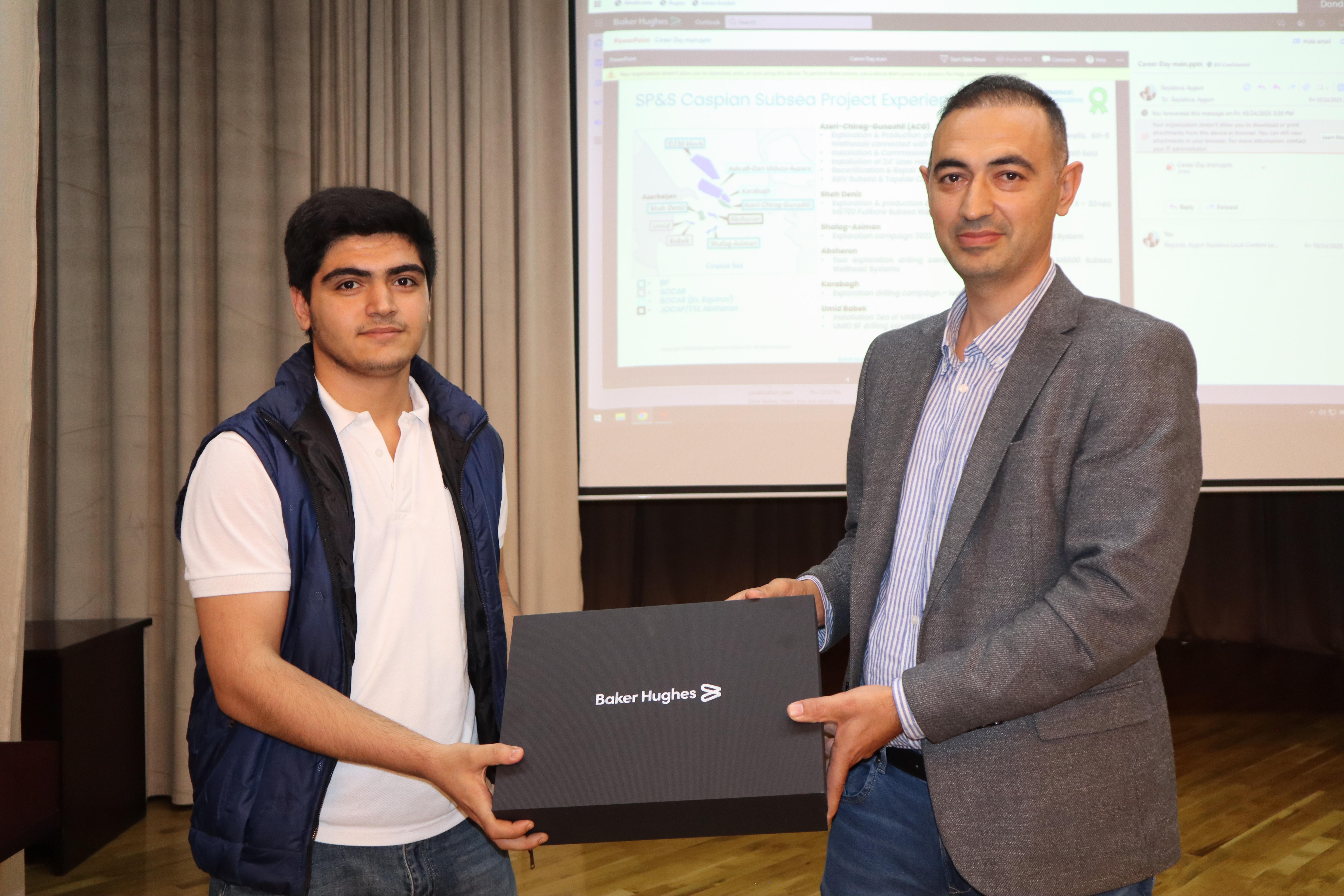 Tədbir çərçivəsində keçirilən sual-cavab sessiyasında aktiv iştirak edən və suallara düzgün cavab verən tələbələrə Baker Hughes şirkəti tərəfindən xatirə hədiyyələri təqdim olunub.