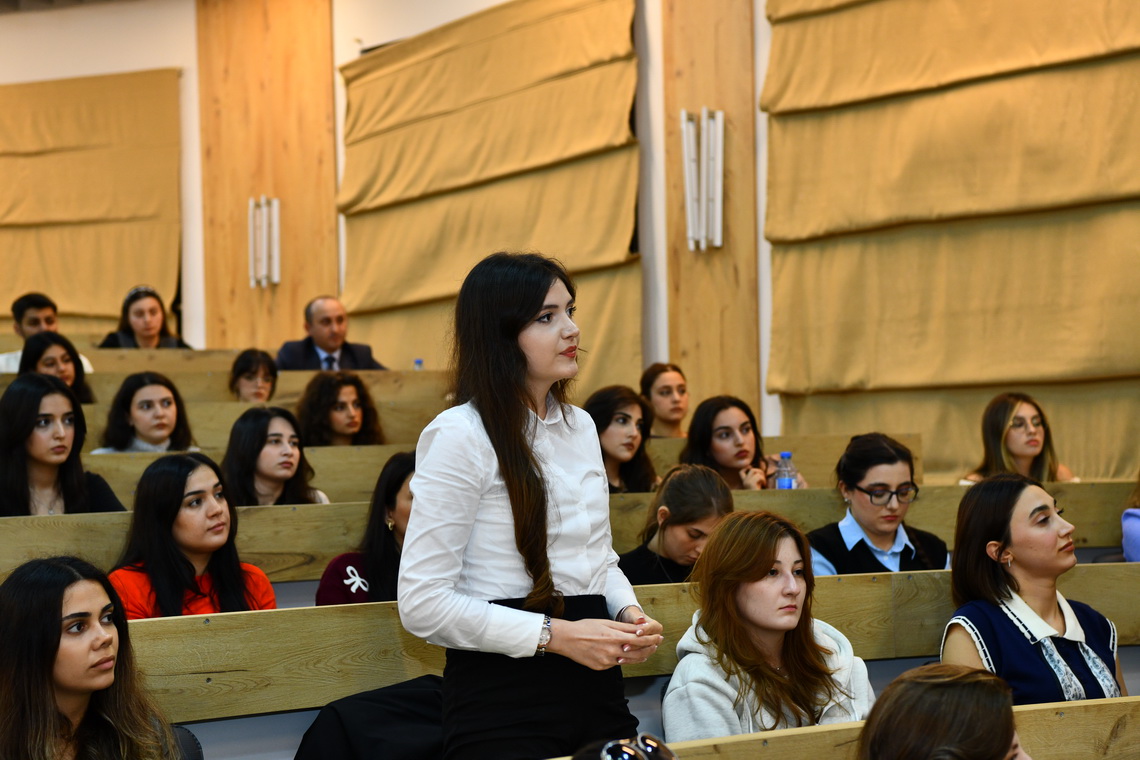 Görüş interaktiv formatda keçib. Tələbələr nazirə suallar ünvanlayaraq şəxsi maraq və peşə yönümlü məsələlərlə bağlı fikir mübadiləsi aparmaq imkanı qazanıblar.