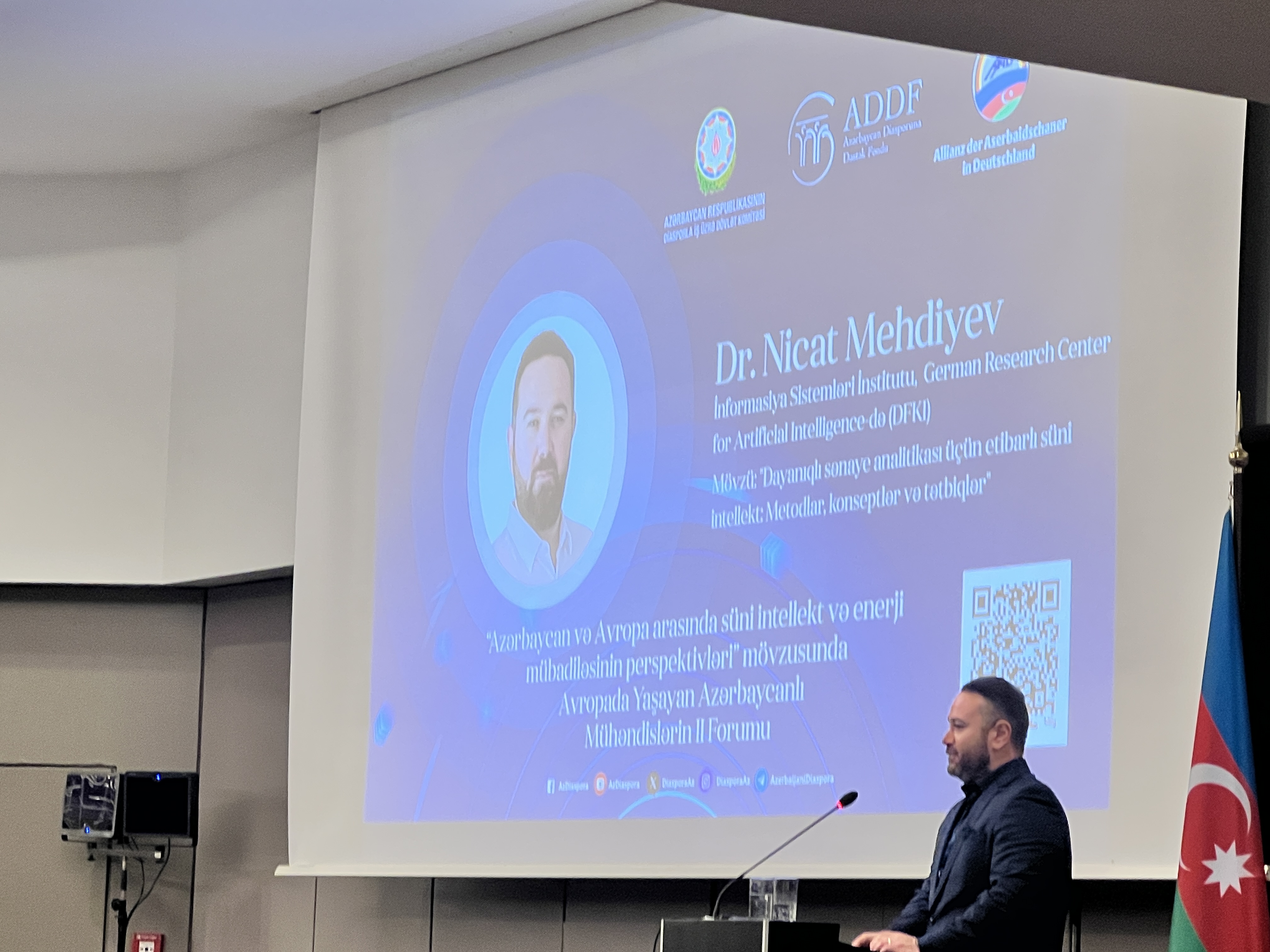 “Azərbaycan və Avropa arasında süni intellekt və enerji mübadiləsinin perspektivləri” mövzusunda keçirilən nüfuzlu tədbirdə avropanın 16 ölkəsindən və Almaniyanın 45 şəhərindən 200-ə yaxın həmvətənimiz və xarici mütəxəssisin iştirakı ilə yanaşı, ADNSU əməkdaşları - BA Proqramlarının direktor müavini, t.ü.f.d. Nigar Adilova, MBA Proqramının müəllimi, "Alman Süni İntellekt tədqiqat mərkəzi"ndə baş tədqiqatçı və "İnformasiya sistemləri" departamentinin meneceri Dr. Nicat Mehdiyev, ADNSU-nun "Mexatronika və robototexnika mühəndisliyi" bakalvr ixtisası üzrə məzunları - hazırda Almaniyanın Dortumnd Texniki Universitetində tədqiqatla məşğul olan Hüseynzadə Sonabəyim və Quliyev Mirzəağa iştirak ediblər.