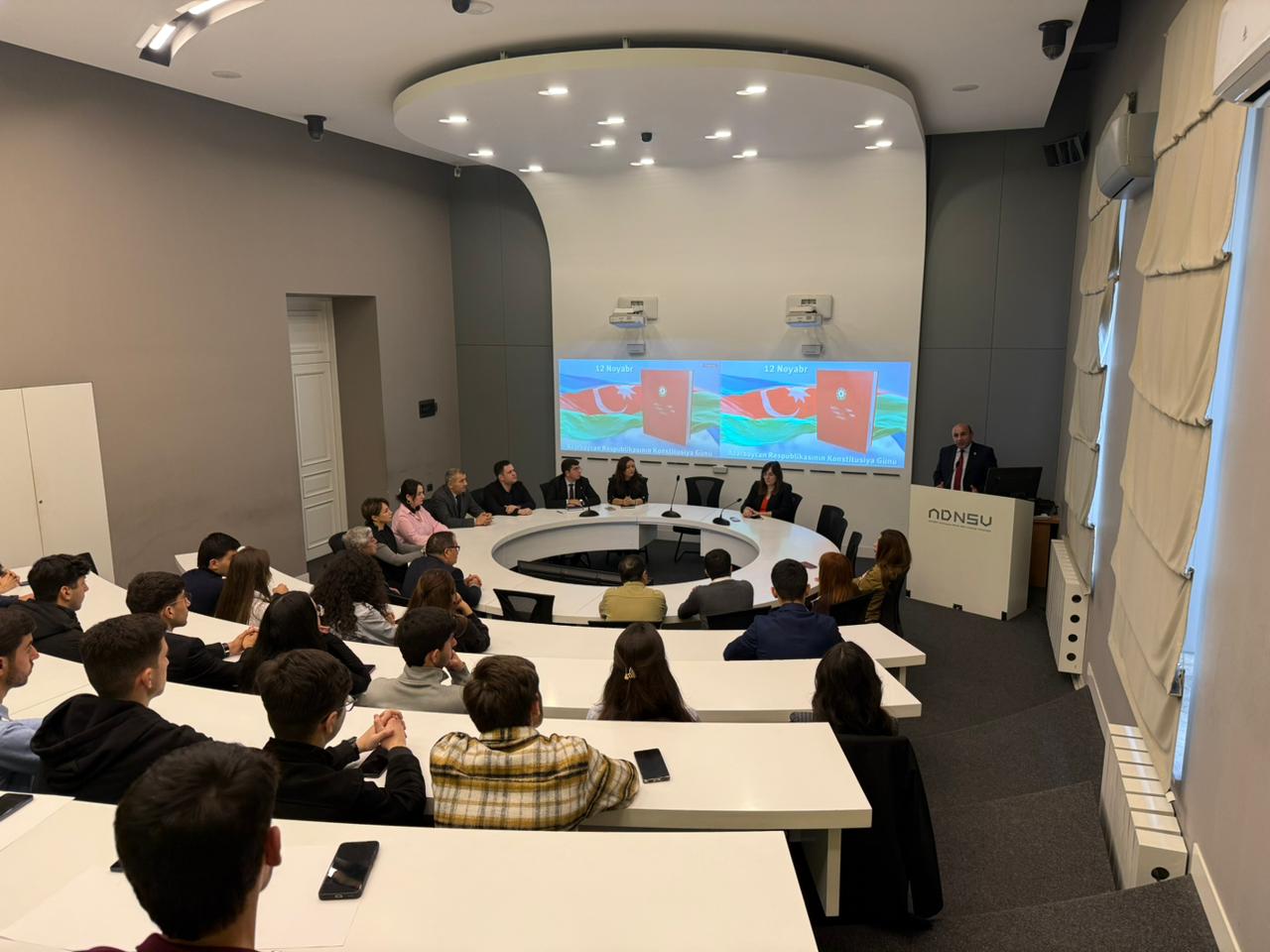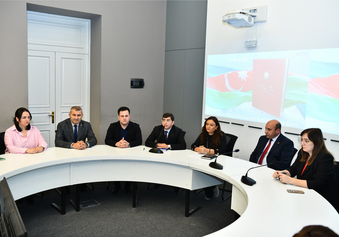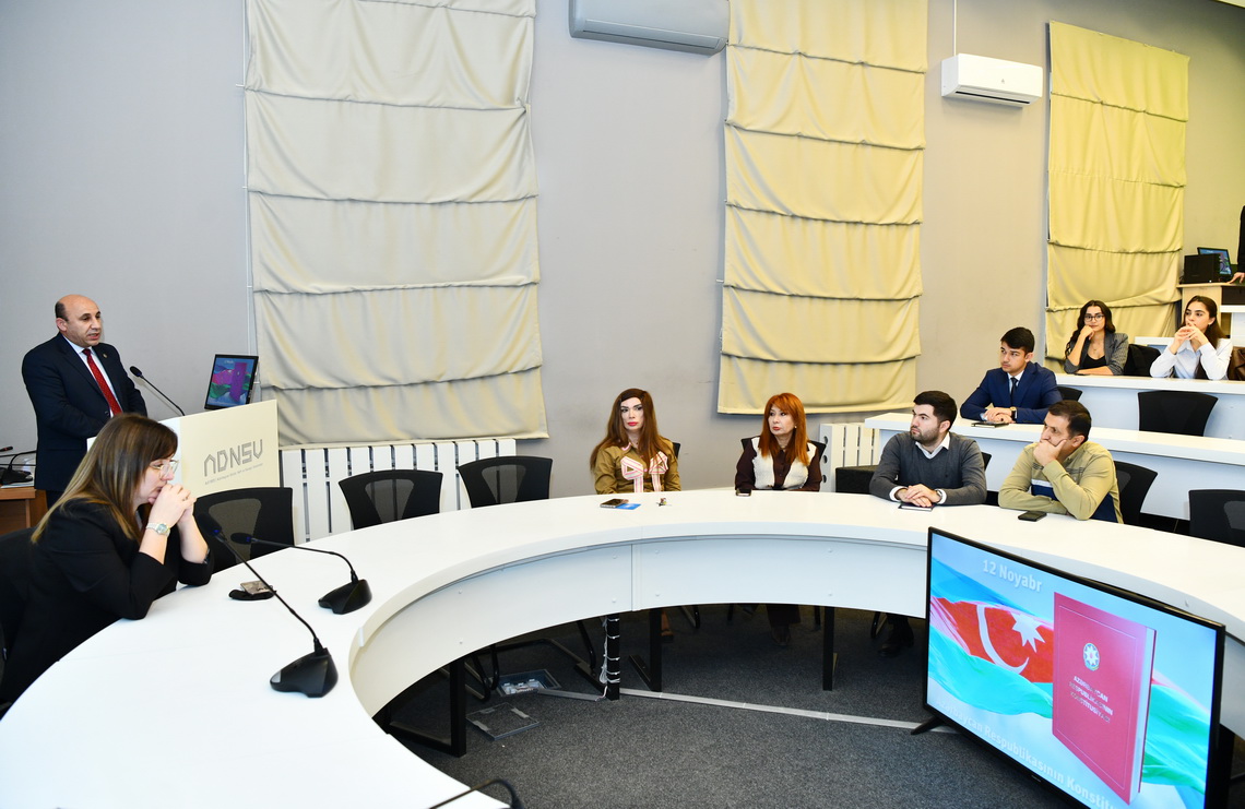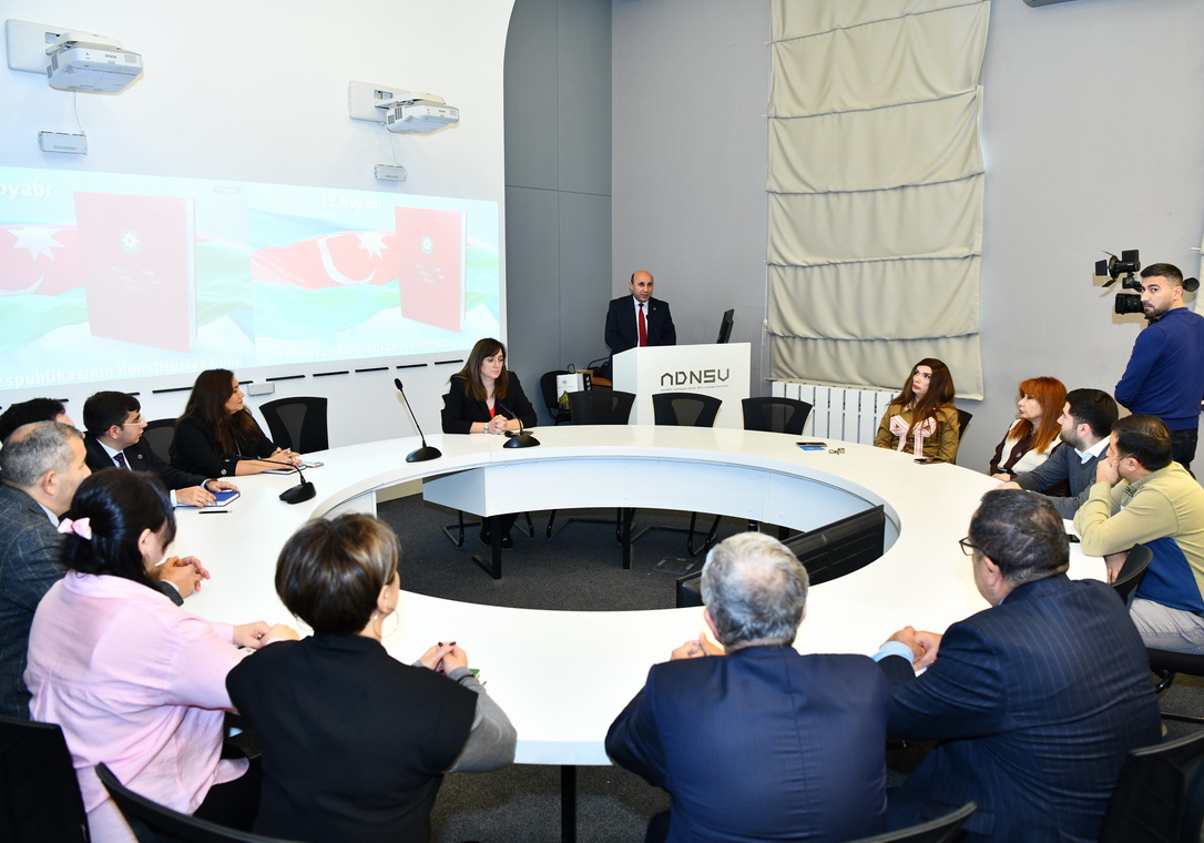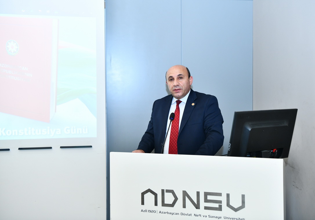 Noyabrın 12-də Azərbaycan Dövlət Neft və Sənaye Universitetində (ADNSU) Konstitusiya Gününə həsr olunmuş “Hüquqi dövlət quruculuğunda konstitusion dəyərlər” adlı dəyirmi masa təşkil olunub.