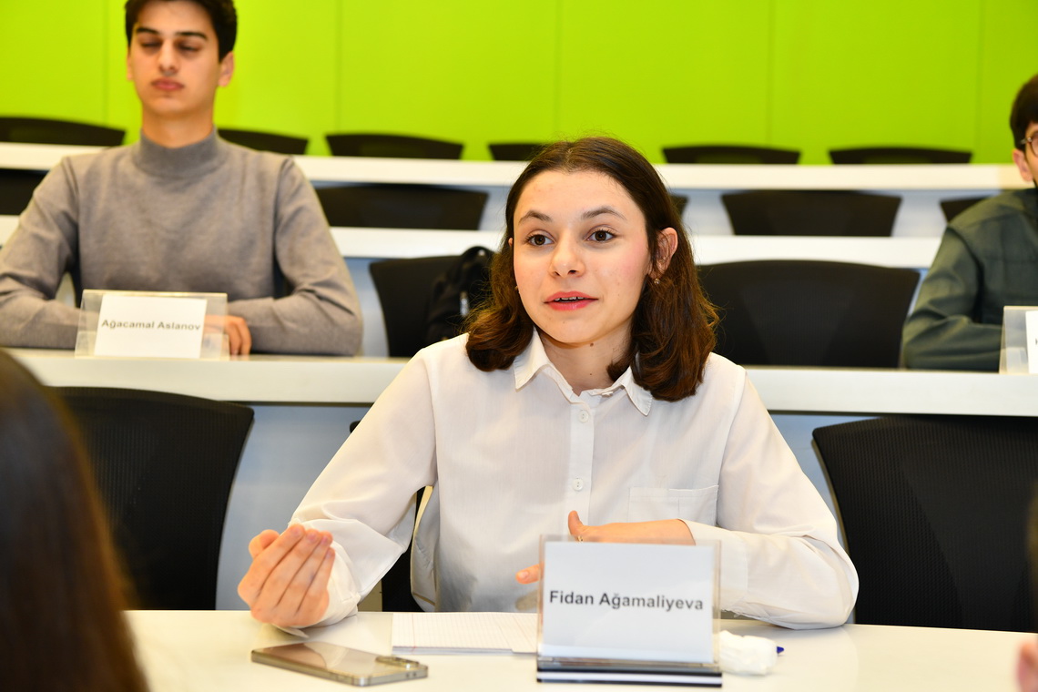 Ardınca Zamirə Ədilova şəffaflığın etibar qurmaqda rolu və emosional ünsiyyətin faktlarla balanslaşdırılmasının əhəmiyyətini real nümunələr üzərində izah edib. Təlim zamanı tələbələrlə interaktiv “Etibar zənciri” adlı qrup tapşırığı həyata keçirilib. Tapşırıq, qulaqdan-qulağa ötürülən məlumat üzərində aparılan təcrübə, informasiya mübadiləsinin nə qədər asanlıqla təhrif oluna biləcəyini göstərərək dəqiq və dürüst kommunikasiyanın önəmini vurğulayıb. Sessiya tələbələrin fəal iştirakı, suallar və müzakirələrlə davam edib.