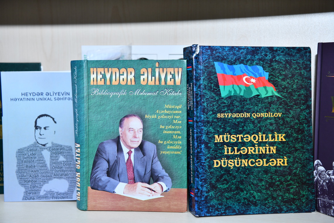 Sərgidə Azərbaycan xalqının müstəqilliyinin, suverenliyinin bərpa olunmasına, milli azadlıq və istiqlal mübarizəsinə, dövlətçilik tariximizə, milli özünüdərk, mənəvi dəyərlər, Ulu Öndər Heydər Əliyevin xilaskarlıq missiyasına, eləcə də əzəli torpaqlarımıza möhtəşəm qayıdışımıza həsr olunmuş 50-dən çox Azərbaycan və xarici dillərdə nəşr olunmuş kitablar və foto materiallar nümayiş olunub.
