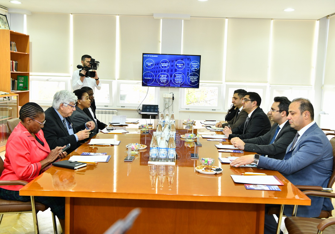Nazir müavini Nomusa Dube-Ncube, eləcə də müxtəlif istiqamətlər üzrə texniki və beynəlxalq əlaqələr üzrə mütəxəssislərlə ADNSU-nun rektoru, dosent Rüfət Əzizov arasında keçirilən görüşdə ADNSU-nun Tədris məsələləri üzrə prorektoru, dosent Rza Məmmədov, Strateji məsələlər üzrə prorektor, dosent Vazeh Əskərov, Elm və innovasiya üzrə prorektor vəzifəsini icra edən, dosent Elviz İsmayılov, həmçinin Beynəlxalq Əməkdaşlıq Şöbəsinin müdiri Həbibə Nəzirova yer alıblar.