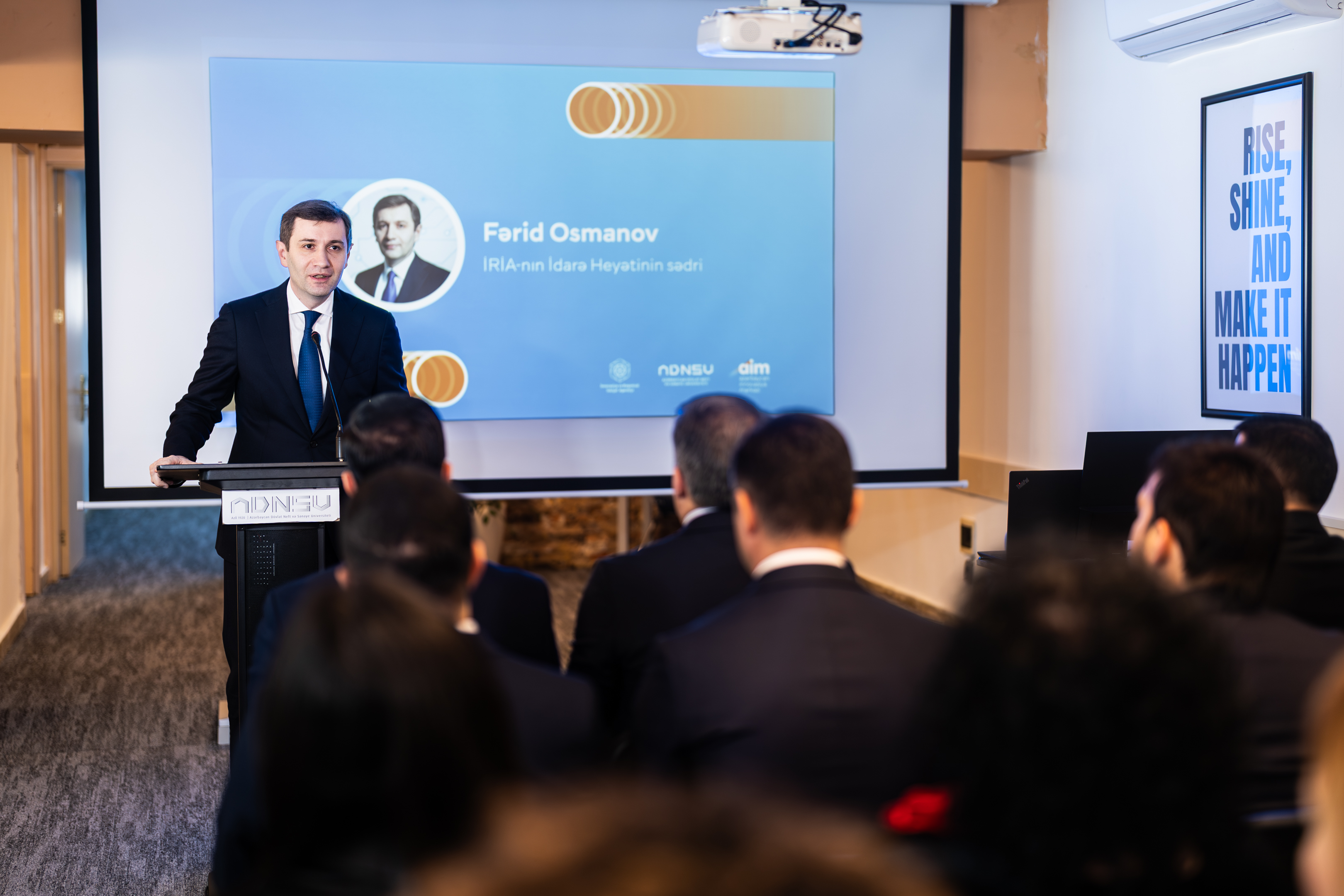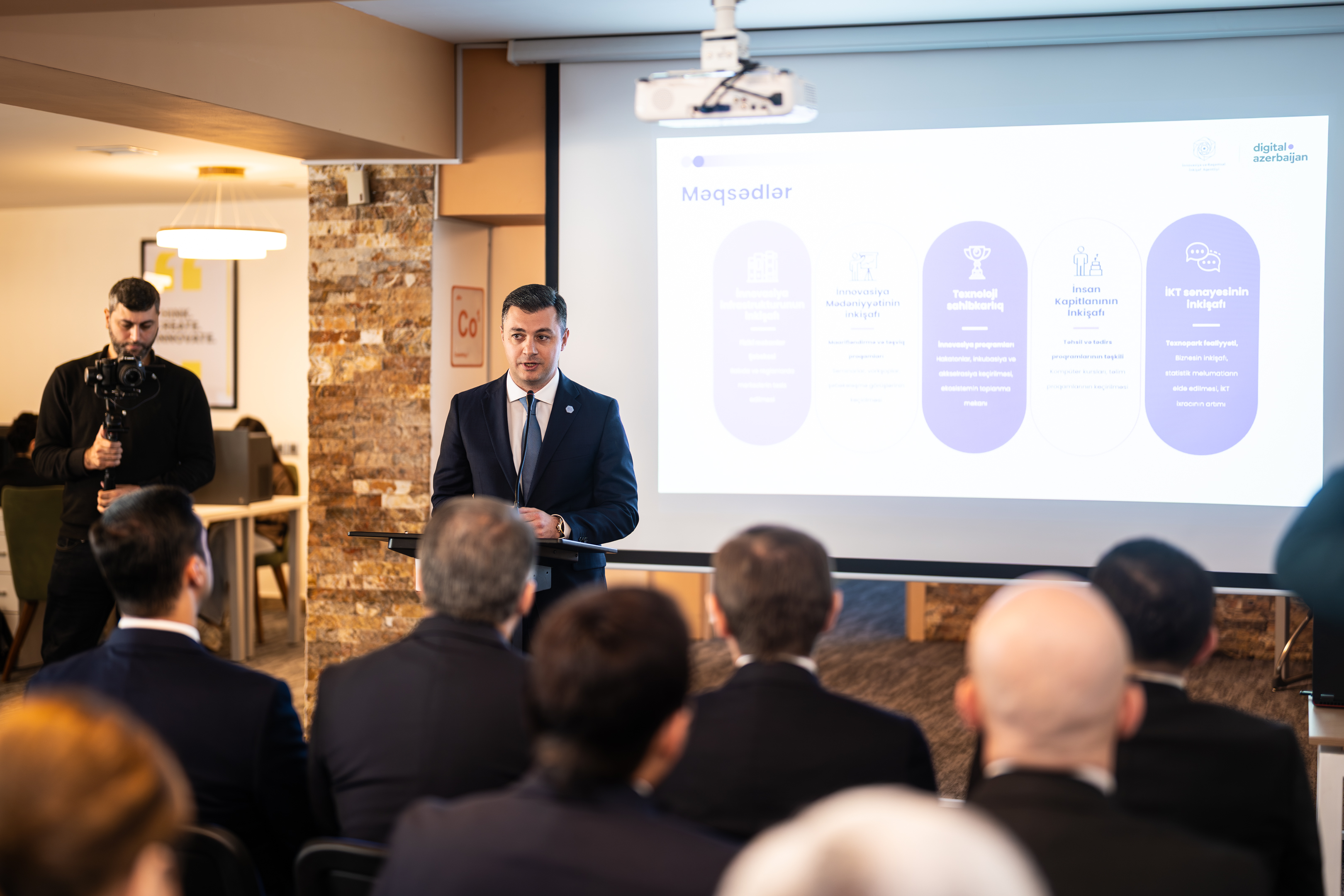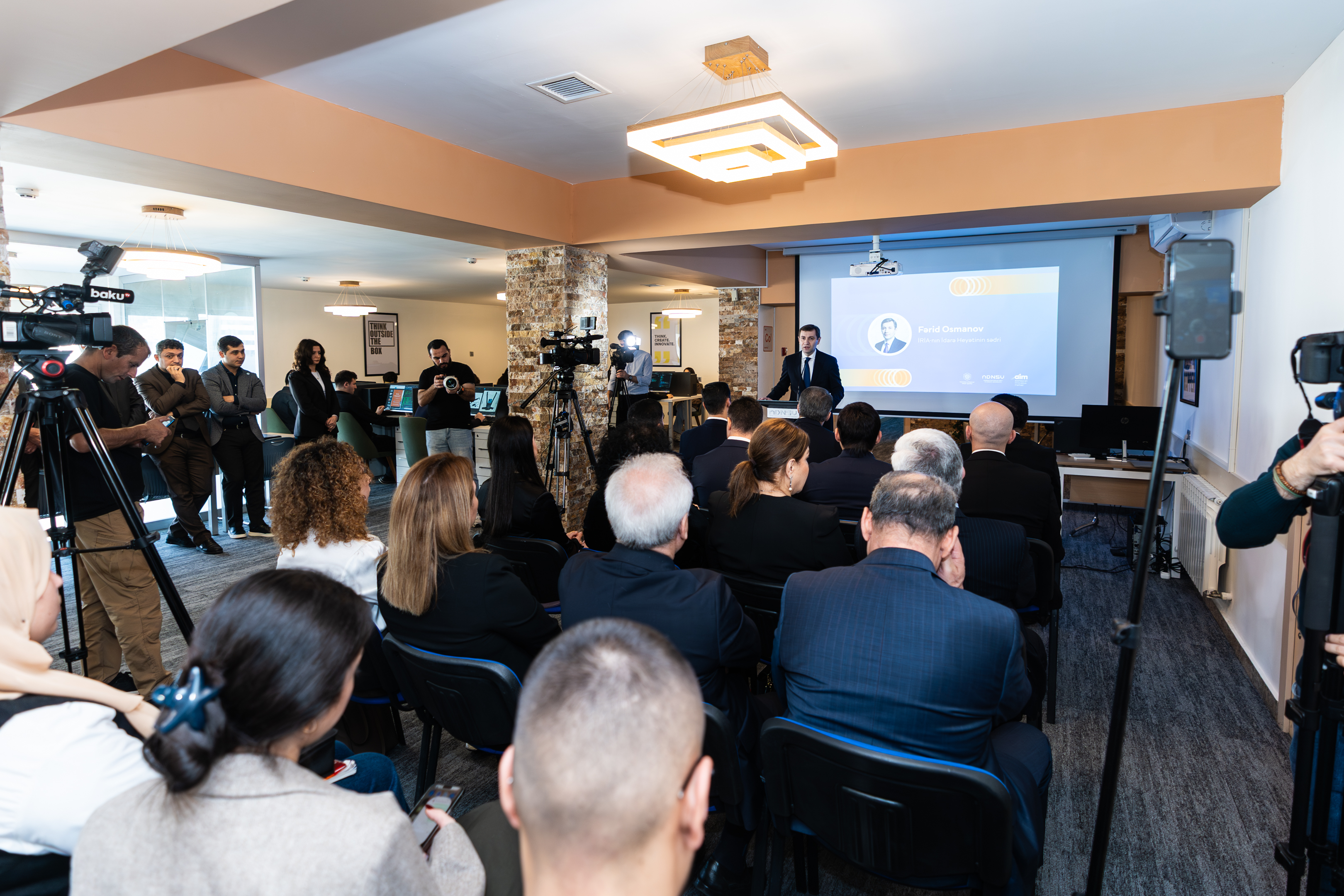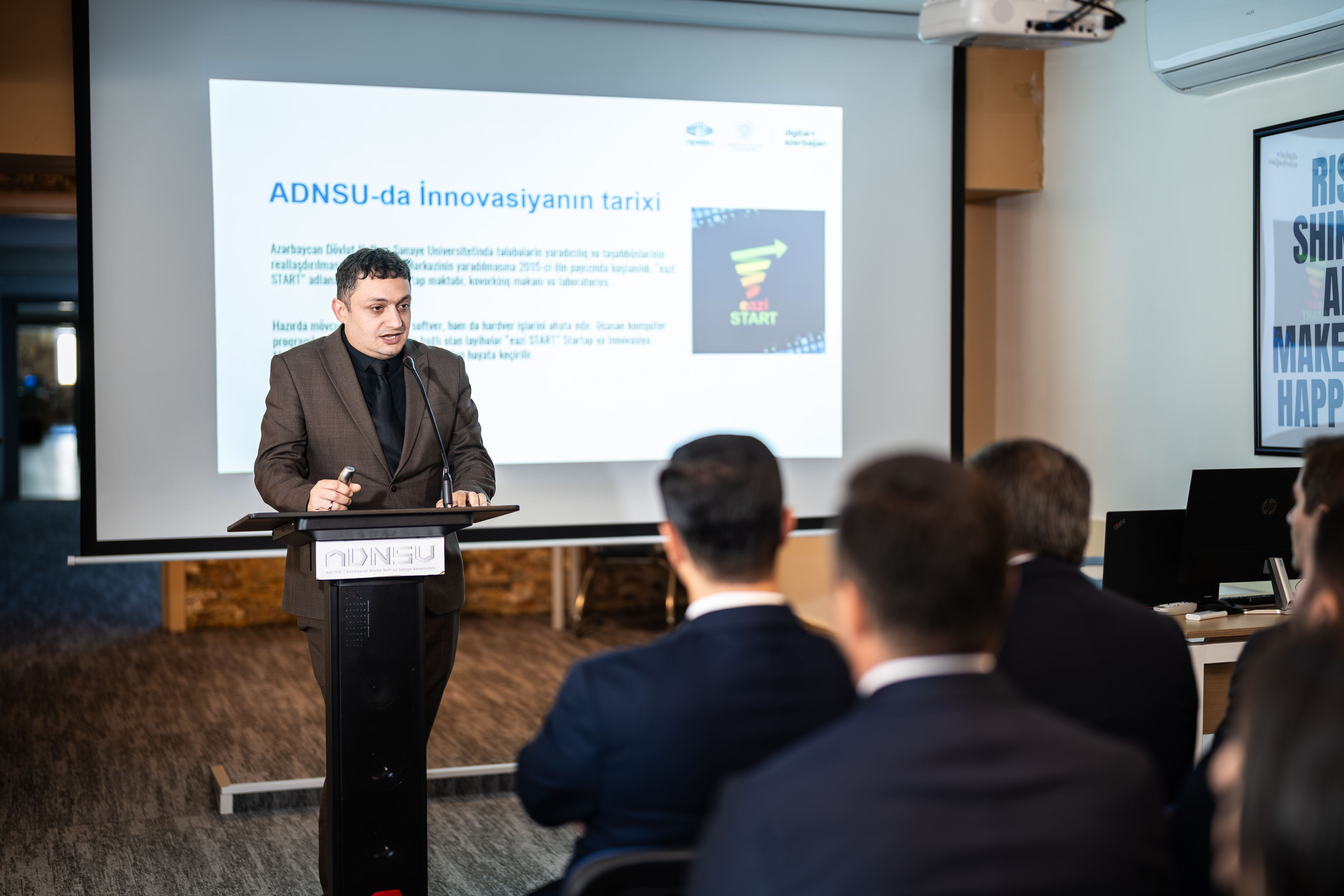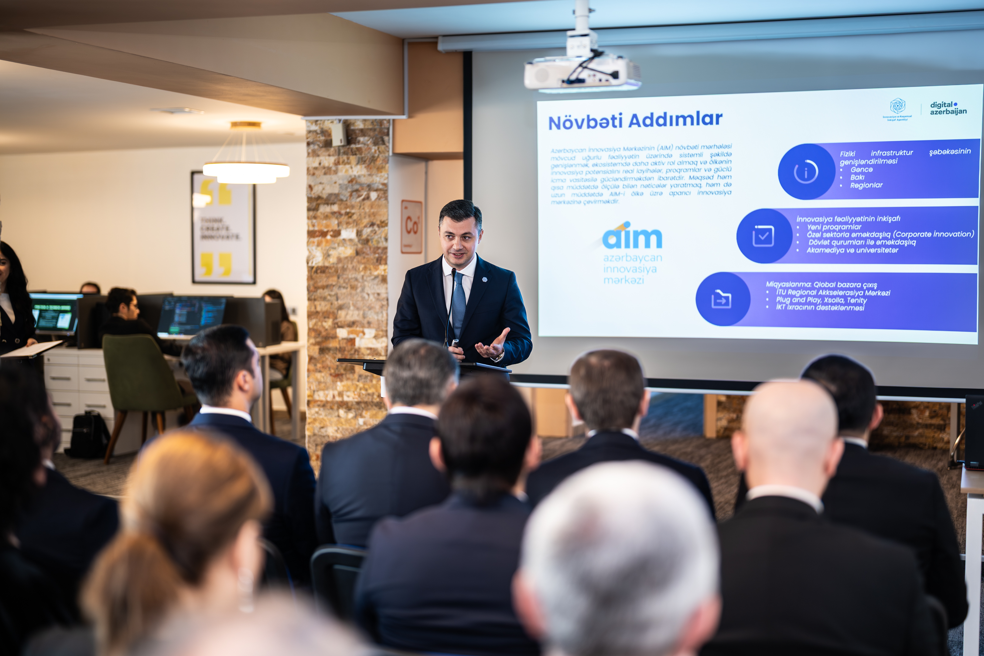 Açılış mərasimində İRİA-nın Texnoparklarla iş şöbəsinin müdiri Elvin Hacıyev Azərbaycan İnnovasiya Mərkəzinin konsepsiyası və fəaliyyət istiqamətləri haqqında təqdimatla çıxış edib.