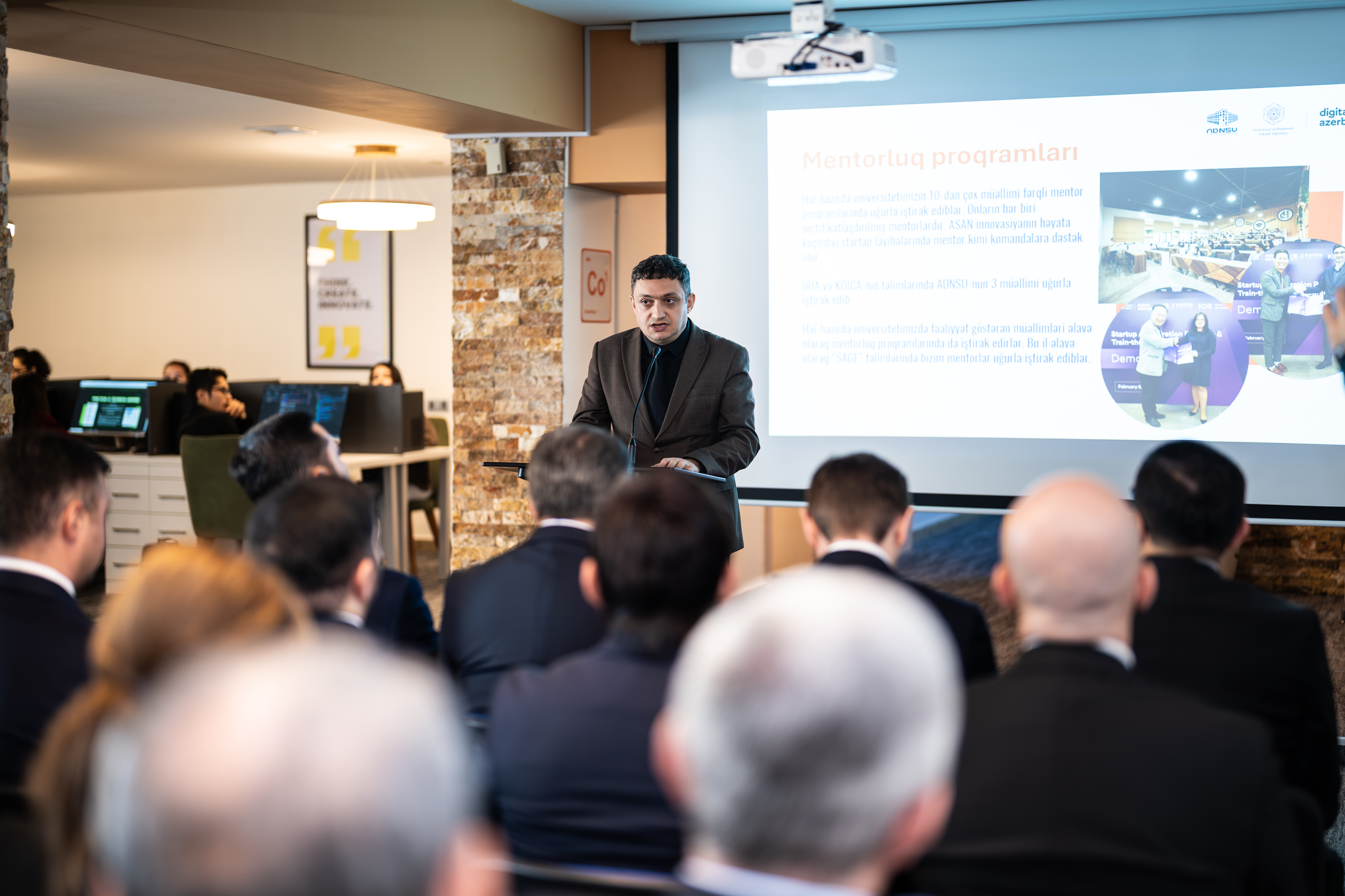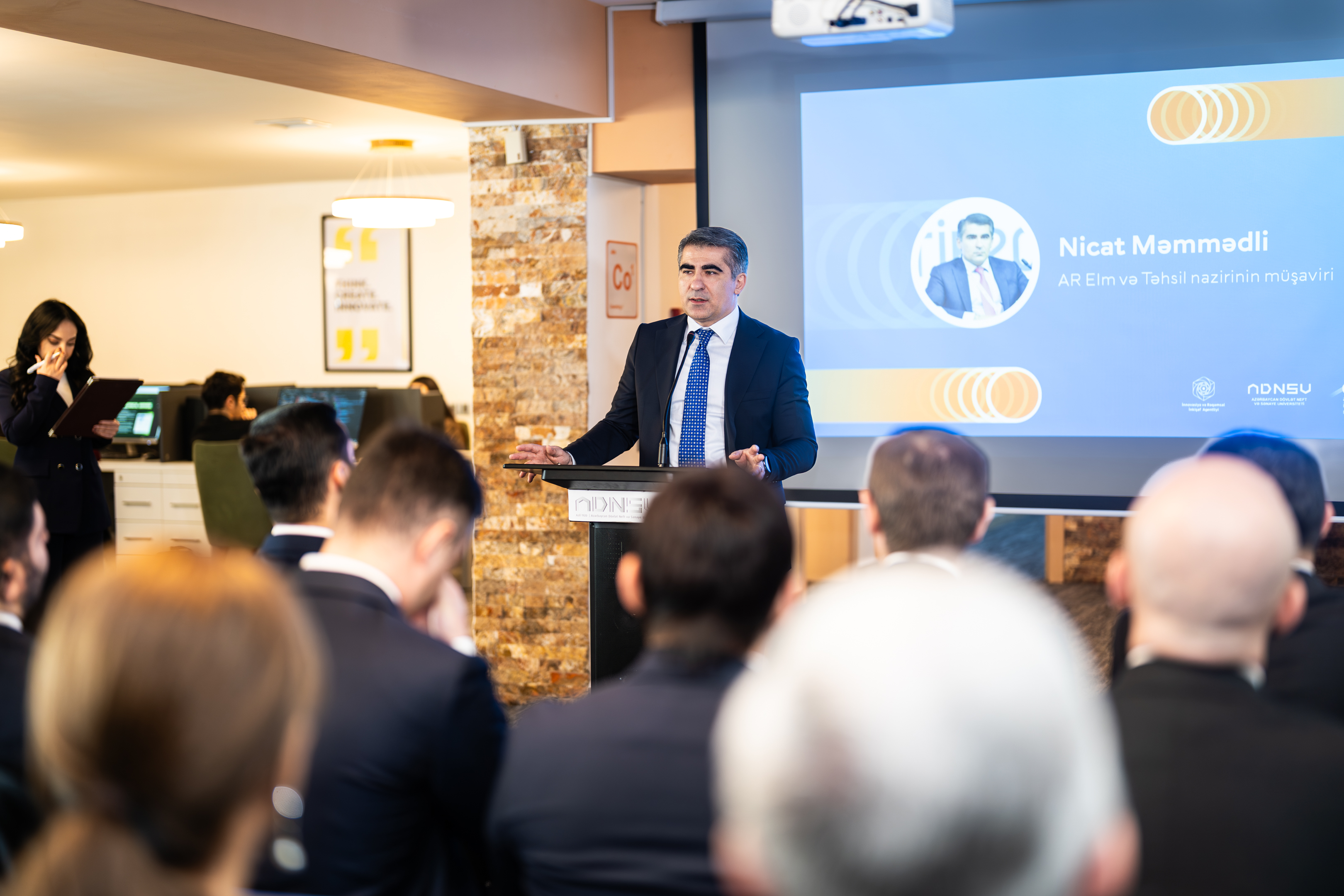 Daha sonra ADNSU-nun Elm və innovasiya məsələləri üzrə prorektoru vəzifəsini müvəqqəti icra edən, dosent Elviz İsmayılov universitetdə innovasiya ekosisteminin qurulması istiqamətində görülən işlər barədə geniş təqdimatla iştirakçıları məlumat verib.