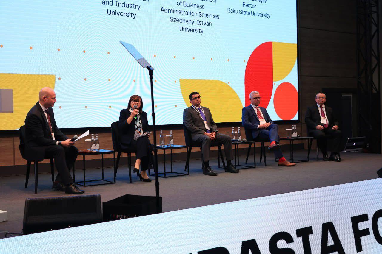 ADNSU-nun rektoru, dosent Rüfət Əzizov Forumun əsas plenar sessiyasında geniş təqdimatla çıxış edib.