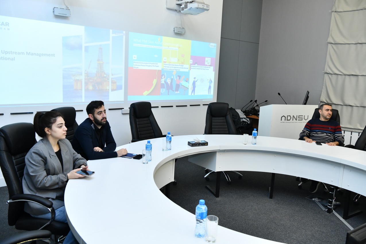 2nd, 3rd, and 4th-year students of ASOIU and UFAZ, as well as students interested in project management and wishing to learn PMP fundamentals, participated in the event and asked their questions.