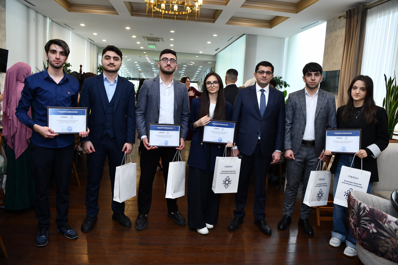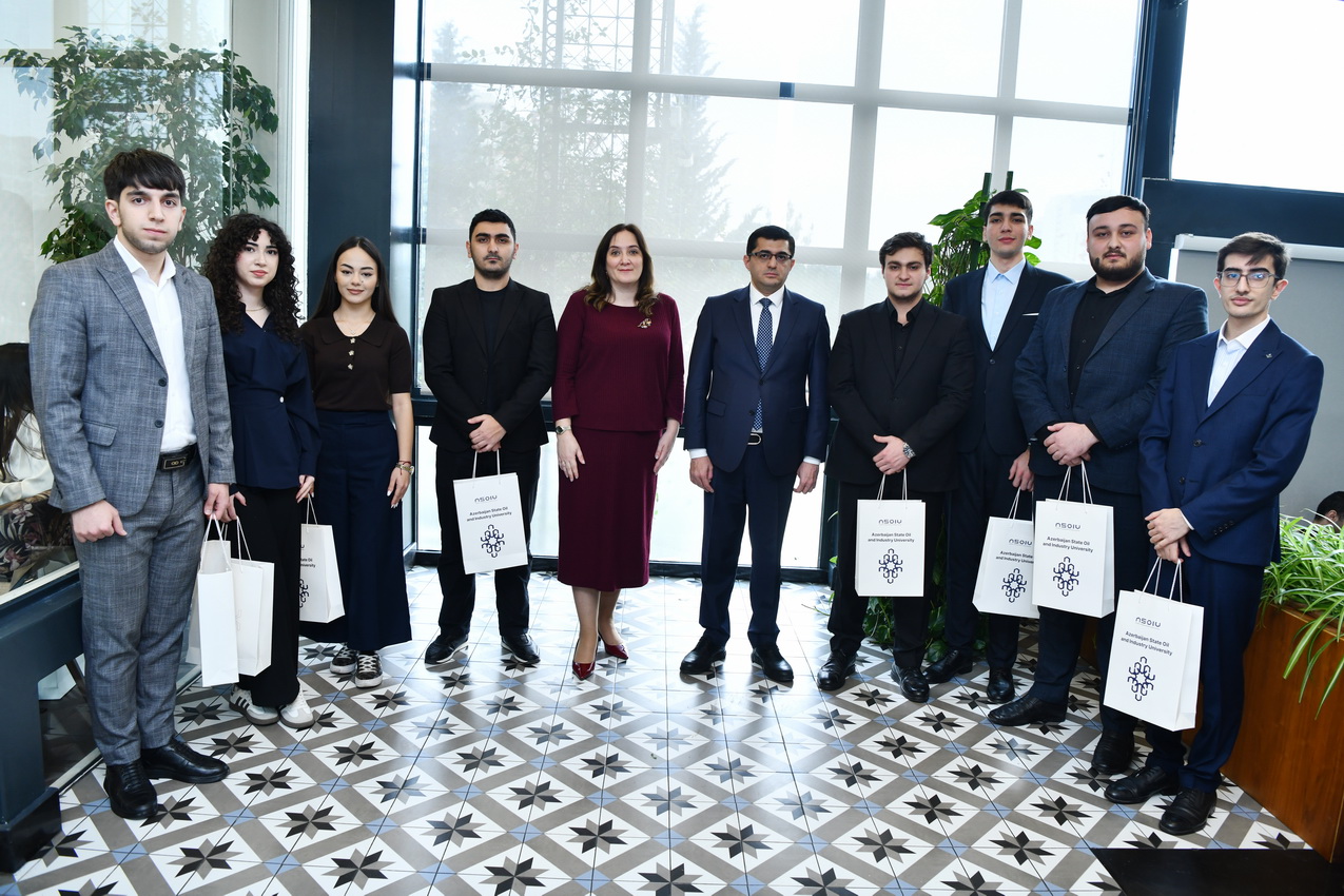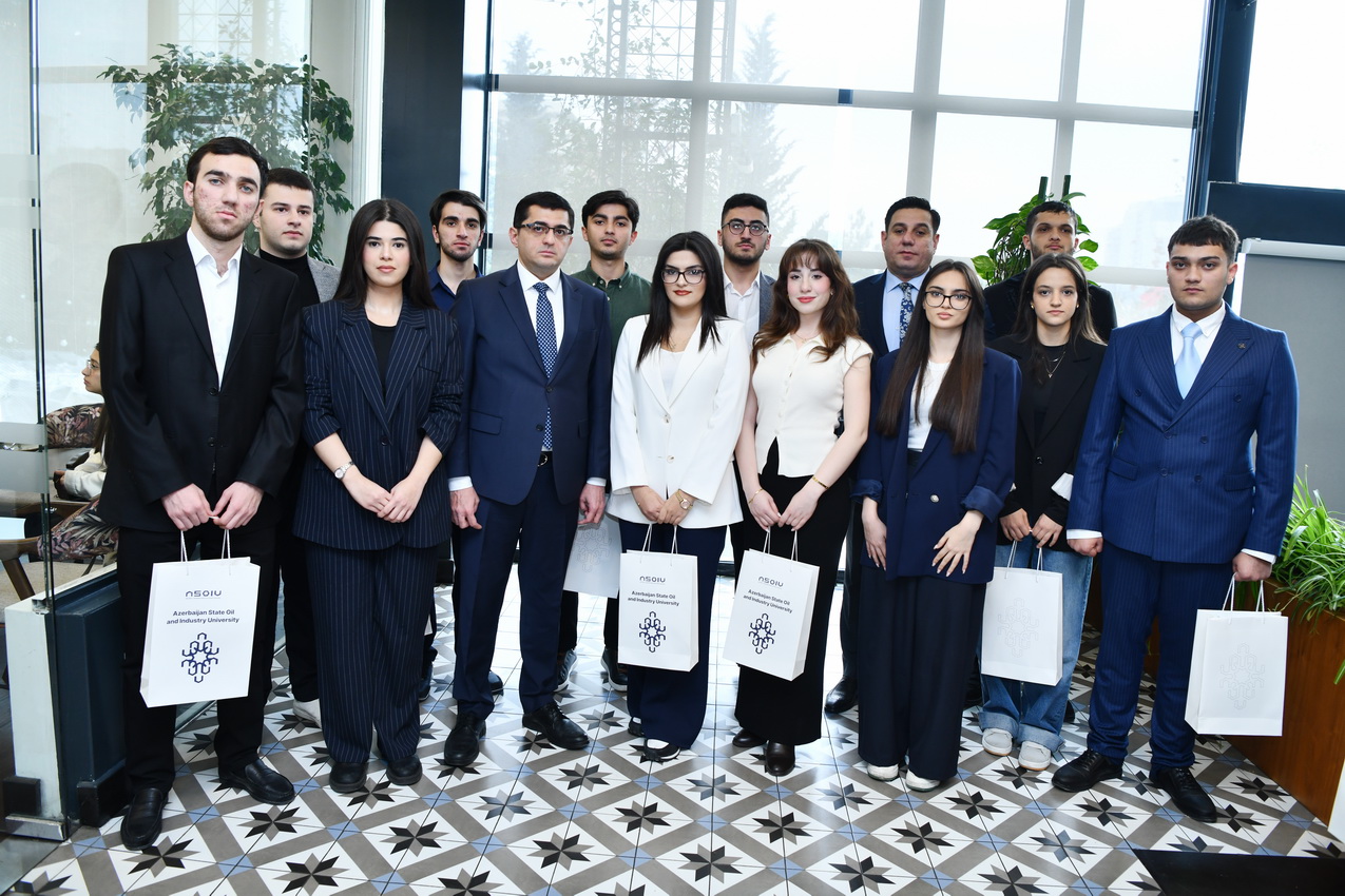 Azərbaycan Dövlət Neft və Sənaye Universitetinin il ərzində yüksək akademik göstəriciləri və fəallığı ilə seçilən 100 tələbəsi ilə görüş keçirilib. Tədbirin məqsədi universitet həyatında fərqlənən tələbələrin uğurlarını qiymətləndirmək, onların motivasiyasını artırmaq və gələcək inkişaflarına dəstək olmaq olub.