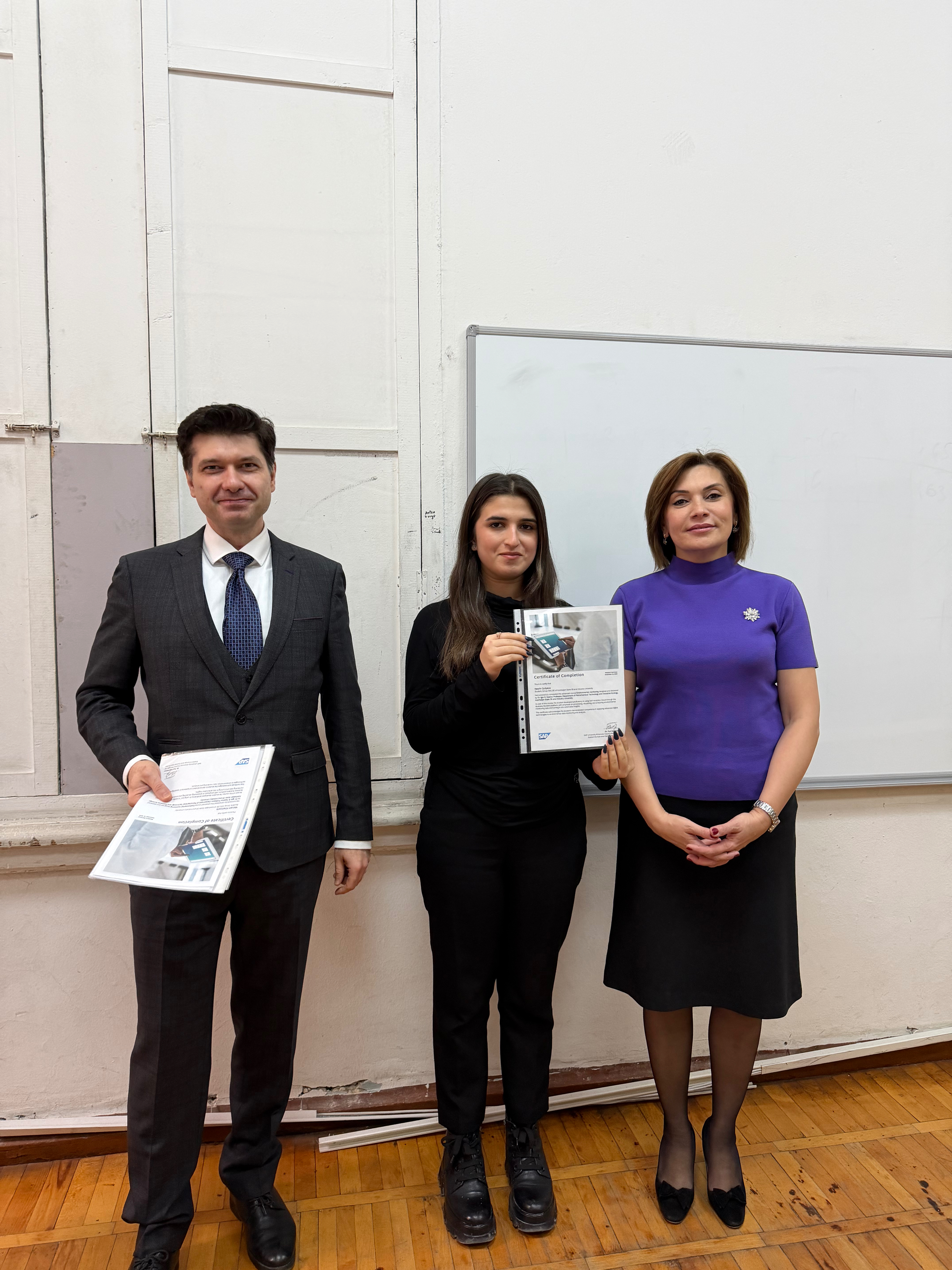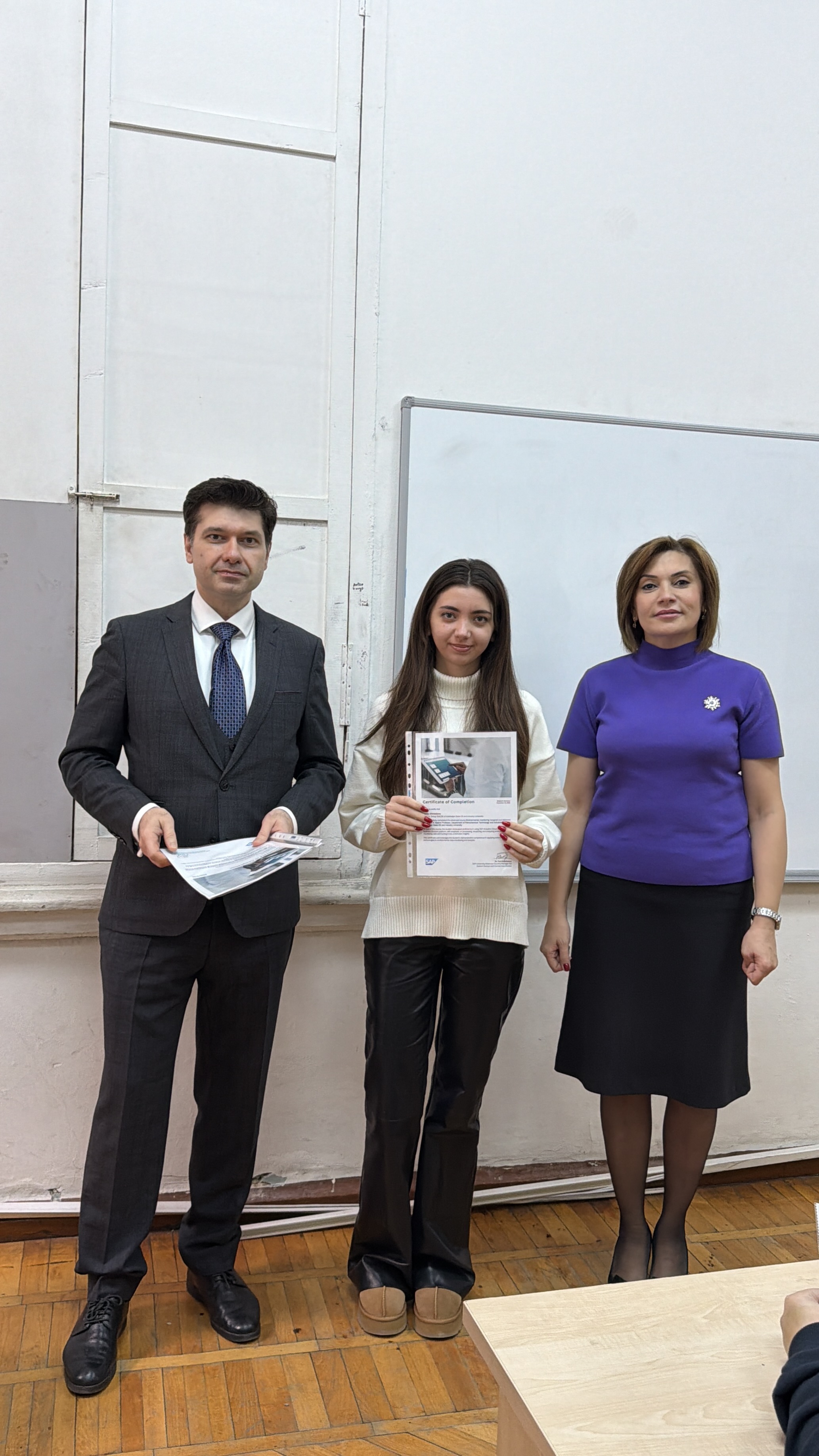 Kursu uğurla başa vuran tələbələrə Neft-kimya texnologiyası və sənaye ekologiyası kafedrasının müdiri Nərminə Əliyeva və ADNSU-nun müəllimi və kursun təlimçisi İqor Nəsirov tərəfindən sertifikatlar təqdim olunub.