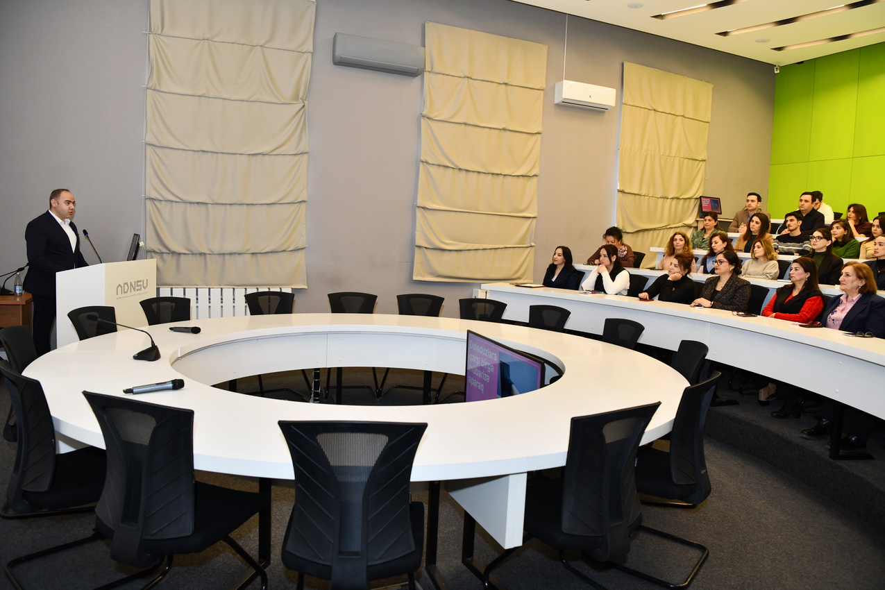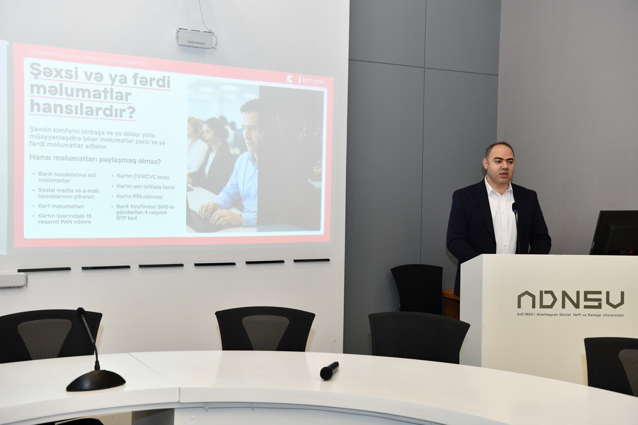 Təlimi ADNSU-nun İctimaiyyətlə Əlaqələr və Marketinq şöbəsinin əməkdaşı Günel Tağıyeva açıb. O, çıxışında rəqəmsal mühitdə təhlükəsizlik mövzusunun aktuallığını vurğulayaraq qeyd edib ki, ali məktəbdə minlərlə tələbə təhsil alır. Onlar arasında xarici vətəndaşlar da az deyil. Xüsusən xarici tələbələrin həm bank xidmətləri, həm də kibertəhlükəsizliklə bağlı tez-tez sualları yaranır. Akademik heyətin bu mövzuda maarifləndirilməsi tələbələrlə işin də daha effektiv qurulmasına dəstək olacaq.