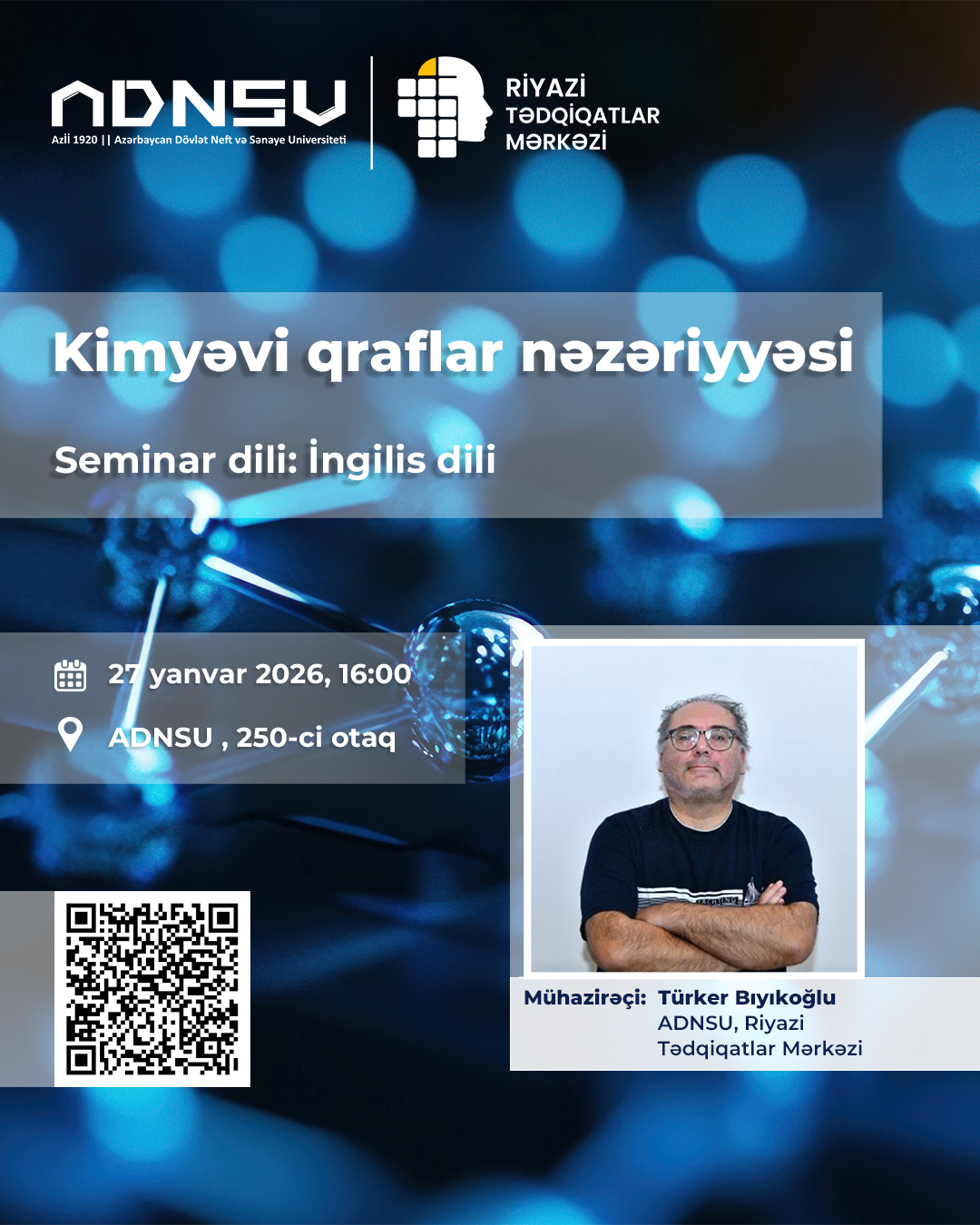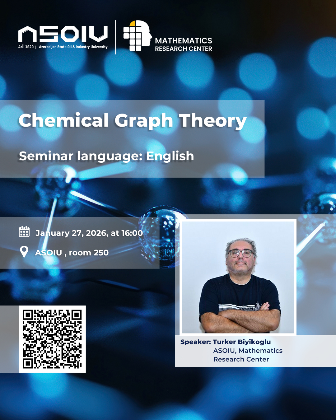 27 yanvar 2026-cı il tarixində, saat 16:00-da Azərbaycan Dövlət Neft və Sənaye Universitetinin (ADNSU) 250 nömrəli auditoriyasında “Kimyəvi qraf nəzəriyyəsinin topoloji indeksləri” mövzusunda seminar keçiriləcək. Kimyəvi qraf nəzəriyyəsi kimyəvi hadisələri və obyektləri anlamaq üçün qraf nəzəriyyəsi metodlarından istifadə edir. Bu nəzəriyyədə molekulyar strukturlar qraflarla ifadə olunur və topoloji indekslər adlanan qraf xüsusiyyətləri müəyyən edilir. Topoloji indekslər qeyri-empirik "kəmiyyət struktur-xassə əlaqələri" (QSPR) və "kəmiyyət struktur-aktivlik əlaqələri"ndə (QSAR) istifadə olunur. Onlar farmakologiya, toksikologiya və dərman vasitələrinin dizaynında intensiv şəkildə tətbiq edilir. Məruzəçi çıxışında bu topoloji indekslərin bəziləri haqqında danışacaq.