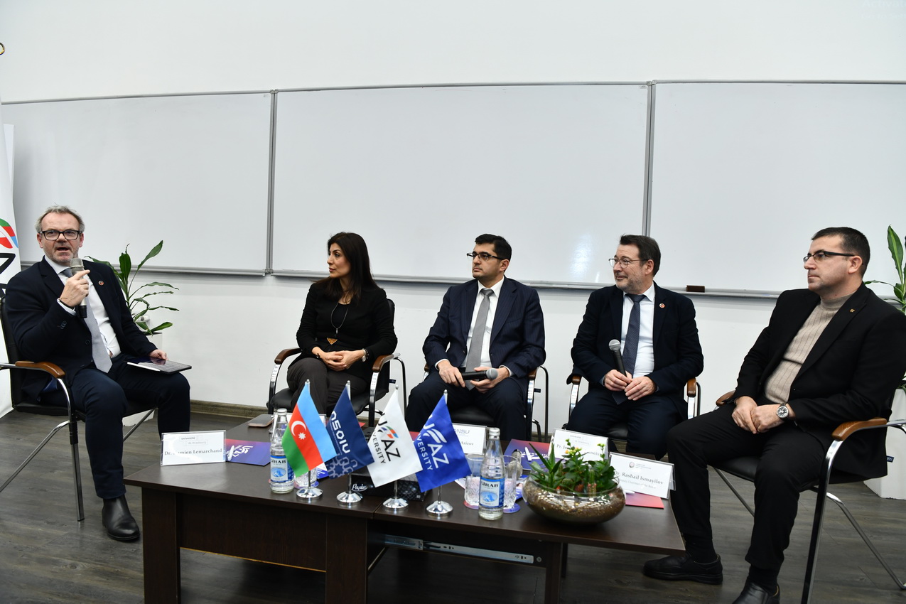 Panel müzakirəsi və interaktiv sual-cavab sessiyasında akademik heyət, tələbələr və digər iştirakçılar çıxışçılarla birbaşa ünsiyyət quraraq Azərbaycanda su ehtiyatlarının idarə olunmasının strateji prioritetlərini müzakirə ediblər.