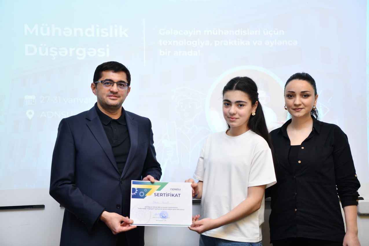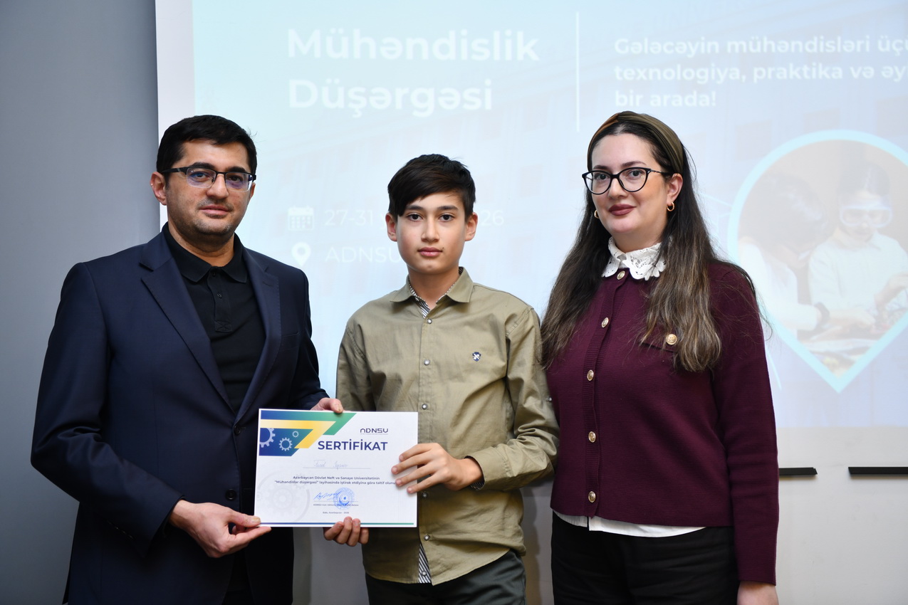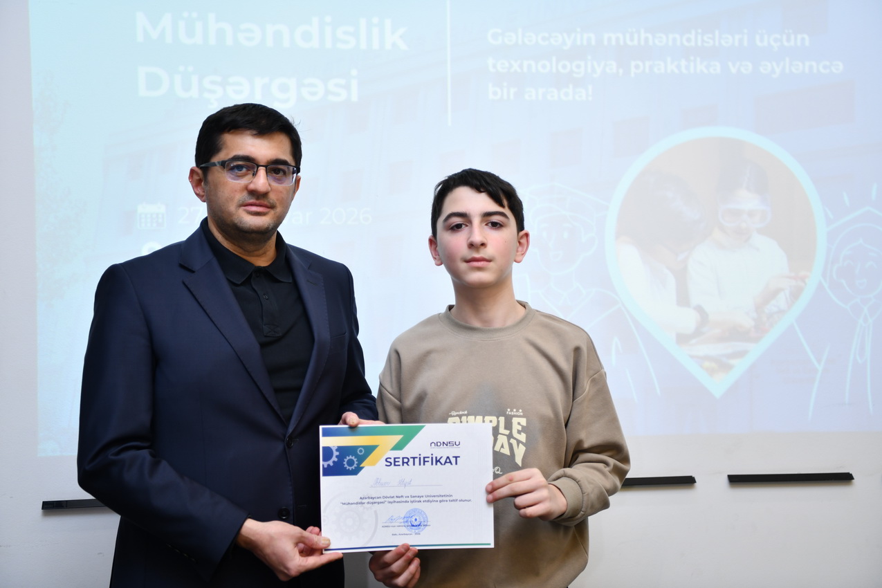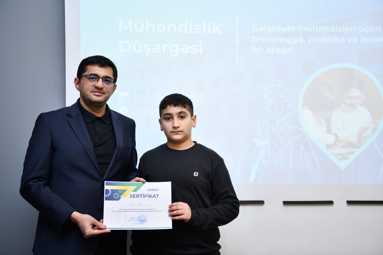 Azərbaycan Dövlət Neft və Sənaye Universitetində (ADNSU) şagirdlər üçün təşkil olunan “Mühəndislik düşərgəsi” başa çatıb. Yanvarın 27–31-də keçirilən düşərgə çərçivəsində iştirakçılar mühəndislik və texnologiya sahələri üzrə nəzəri və praktiki təlimlərdə iştirak ediblər.