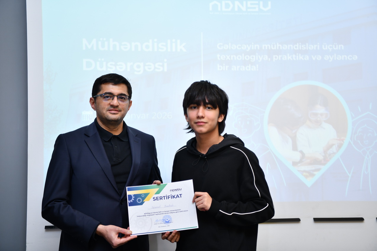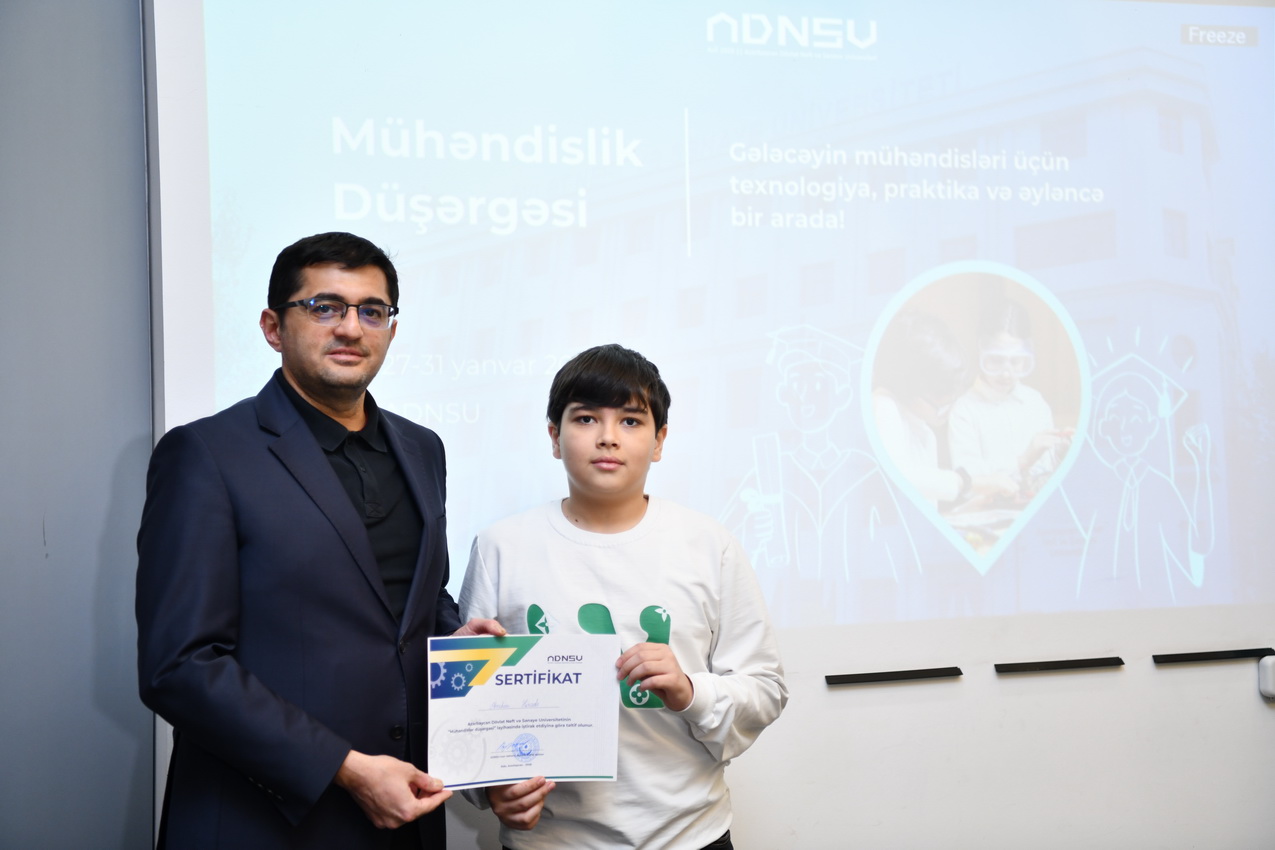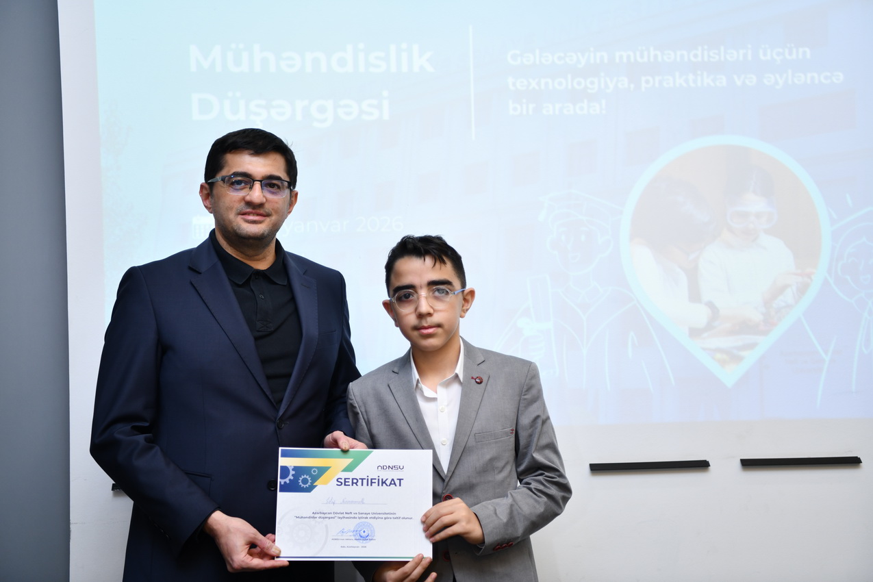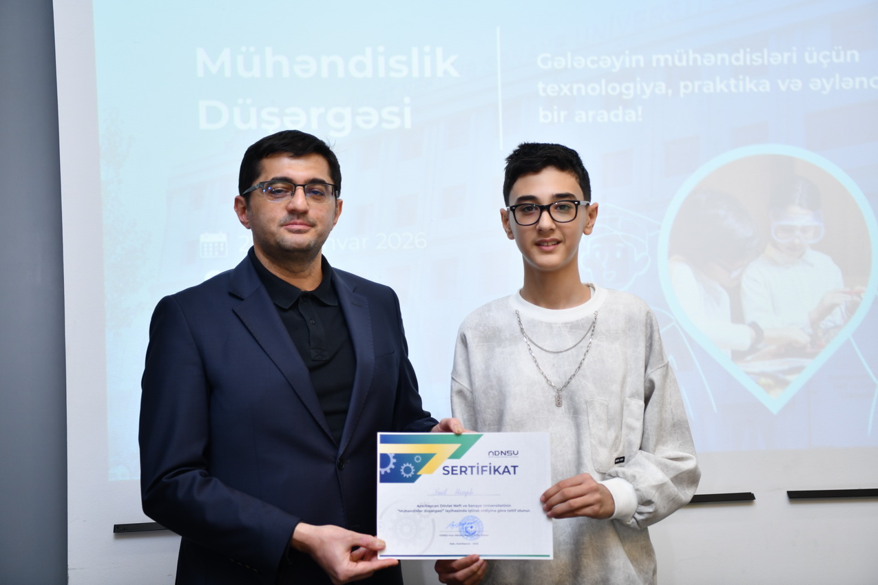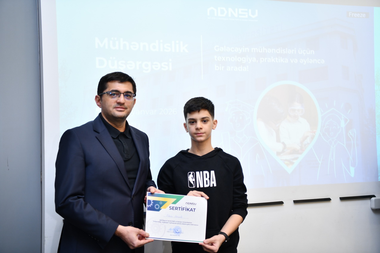 Azərbaycan Dövlət Neft və Sənaye Universitetində (ADNSU) şagirdlər üçün təşkil olunan “Mühəndislik düşərgəsi” başa çatıb. Yanvarın 27–31-də keçirilən düşərgə çərçivəsində iştirakçılar mühəndislik və texnologiya sahələri üzrə nəzəri və praktiki təlimlərdə iştirak ediblər.