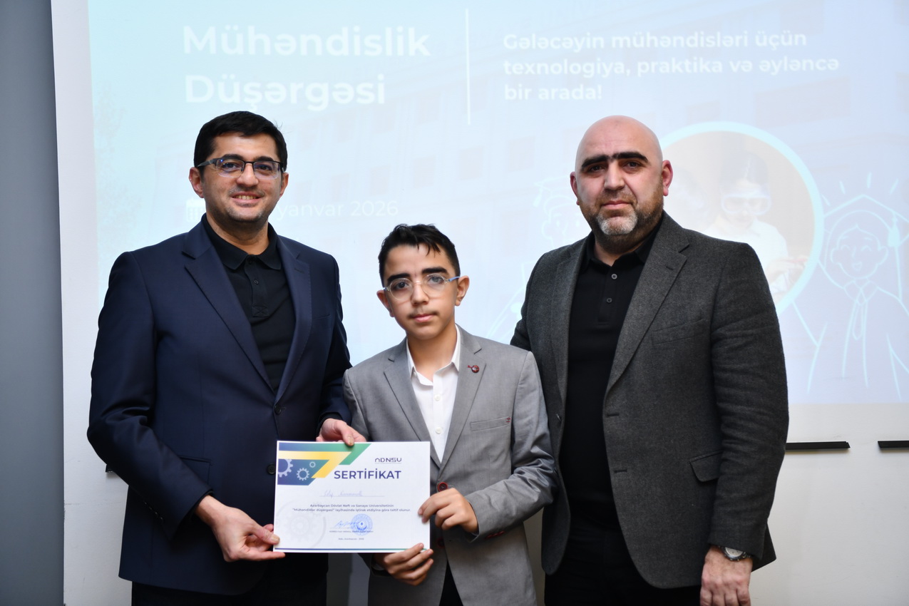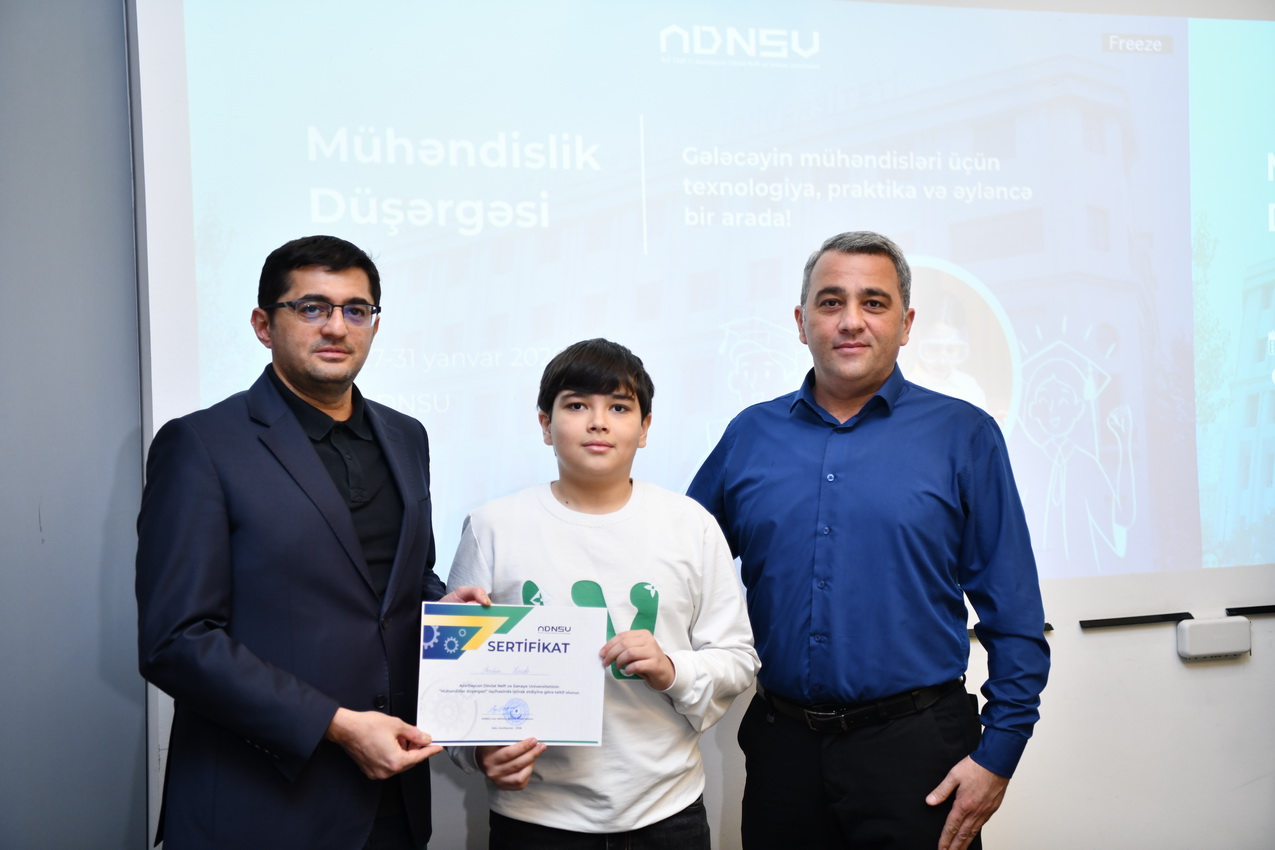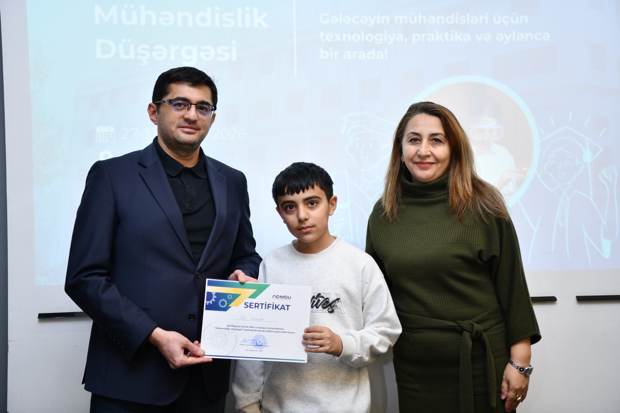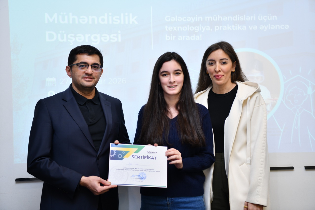Azərbaycan Dövlət Neft və Sənaye Universitetində (ADNSU) şagirdlər üçün təşkil olunan “Mühəndislik düşərgəsi” başa çatıb. Yanvarın 27–31-də keçirilən düşərgə çərçivəsində iştirakçılar mühəndislik və texnologiya sahələri üzrə nəzəri və praktiki təlimlərdə iştirak ediblər.