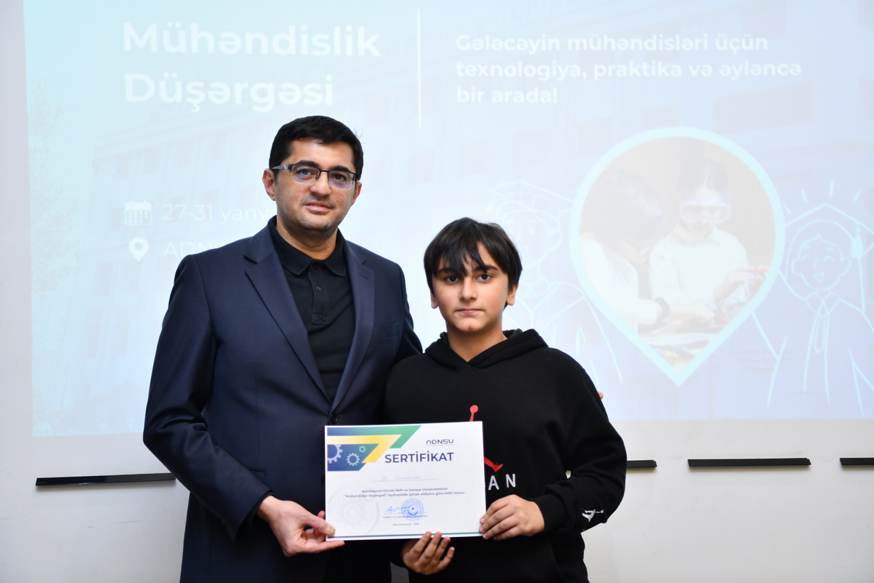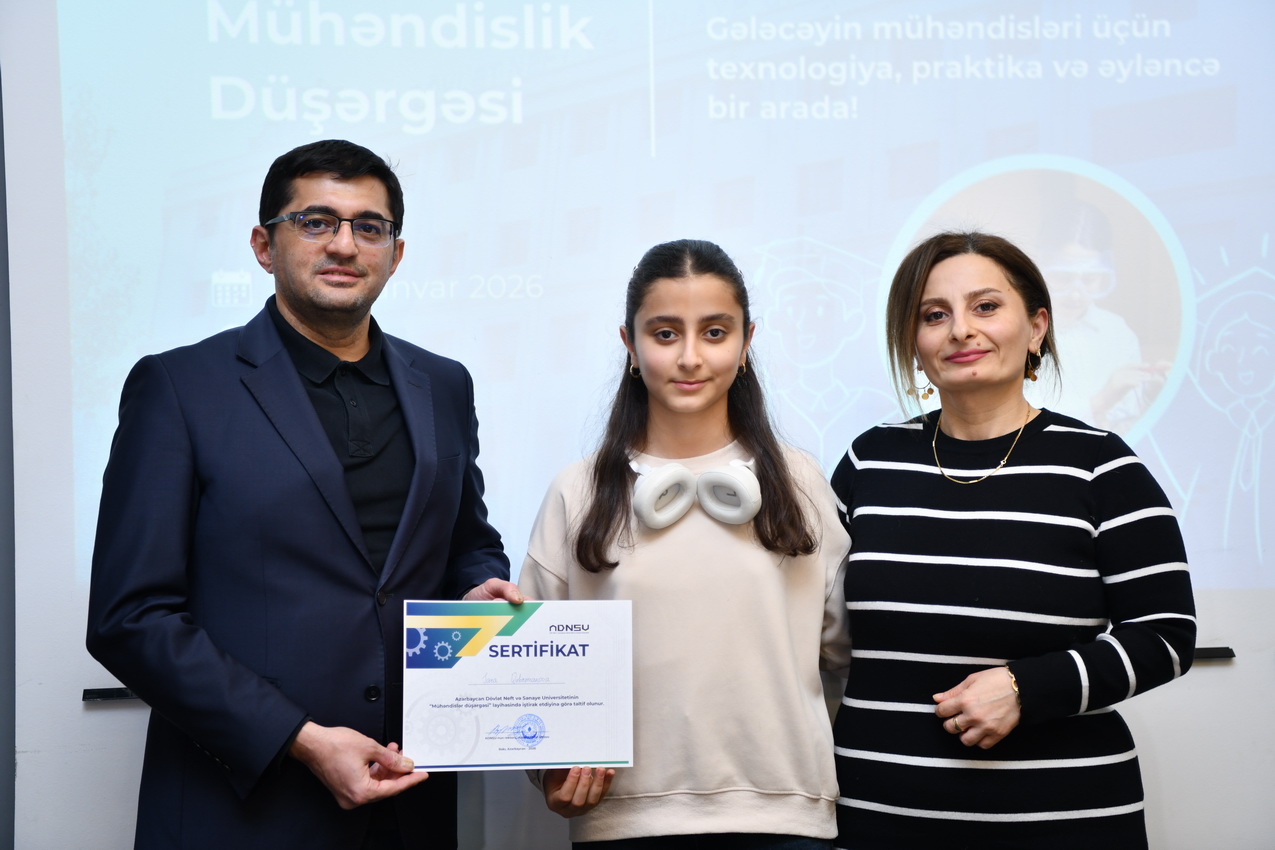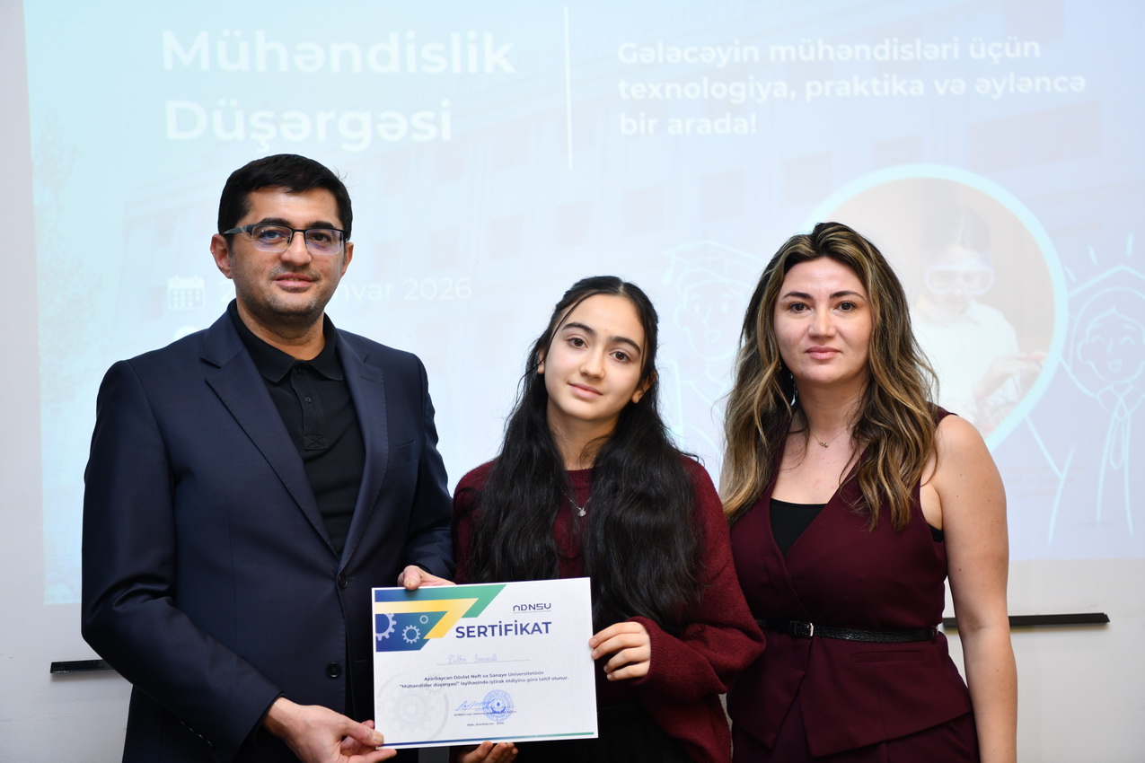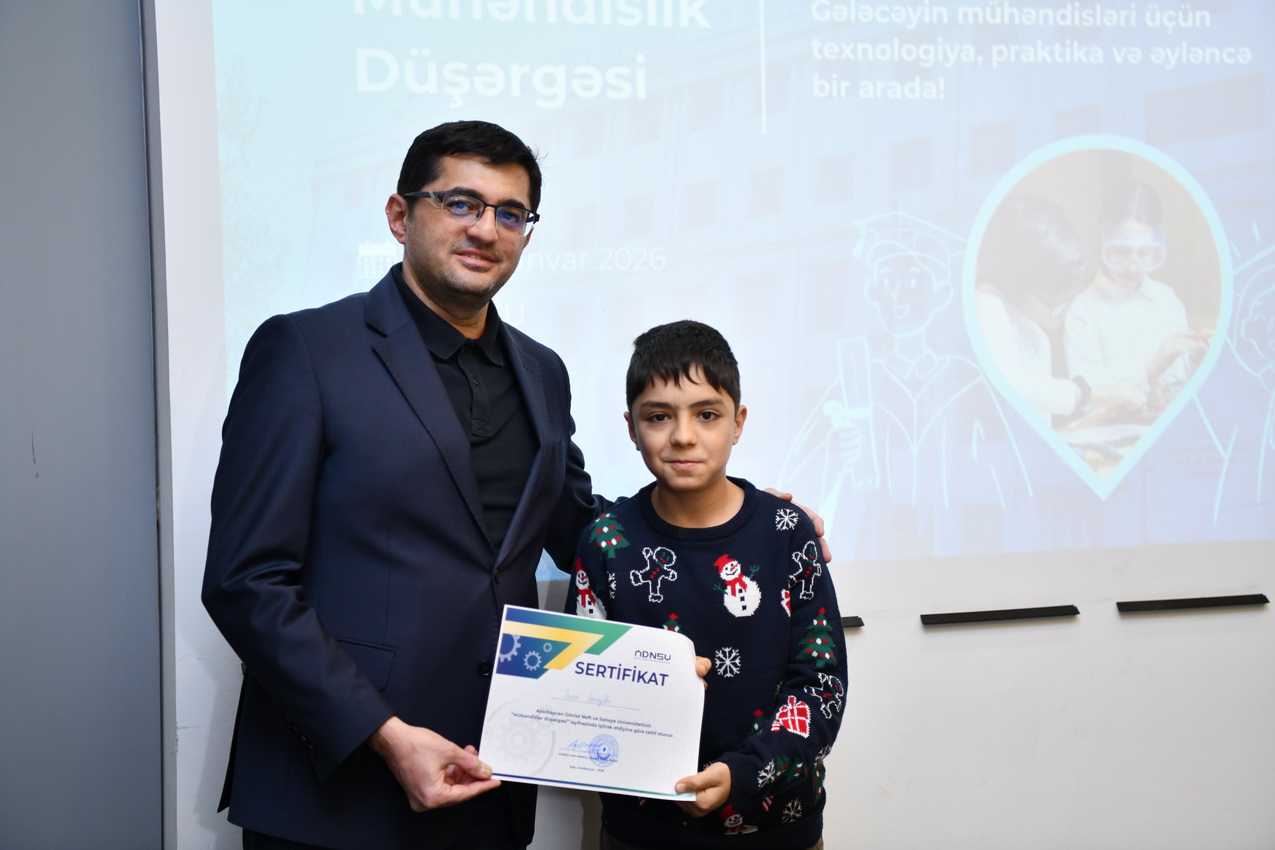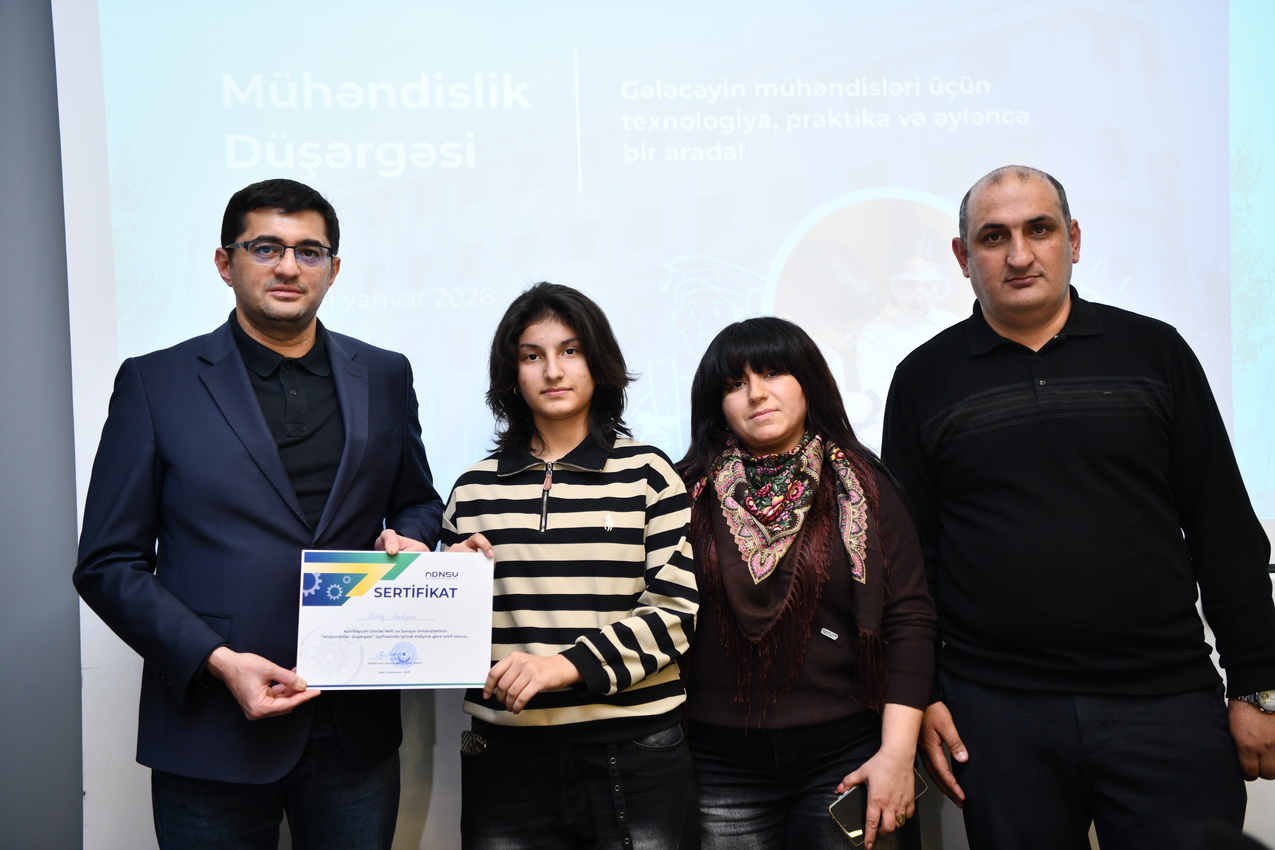 Azərbaycan Dövlət Neft və Sənaye Universitetində (ADNSU) şagirdlər üçün təşkil olunan “Mühəndislik düşərgəsi” başa çatıb. Yanvarın 27–31-də keçirilən düşərgə çərçivəsində iştirakçılar mühəndislik və texnologiya sahələri üzrə nəzəri və praktiki təlimlərdə iştirak ediblər.