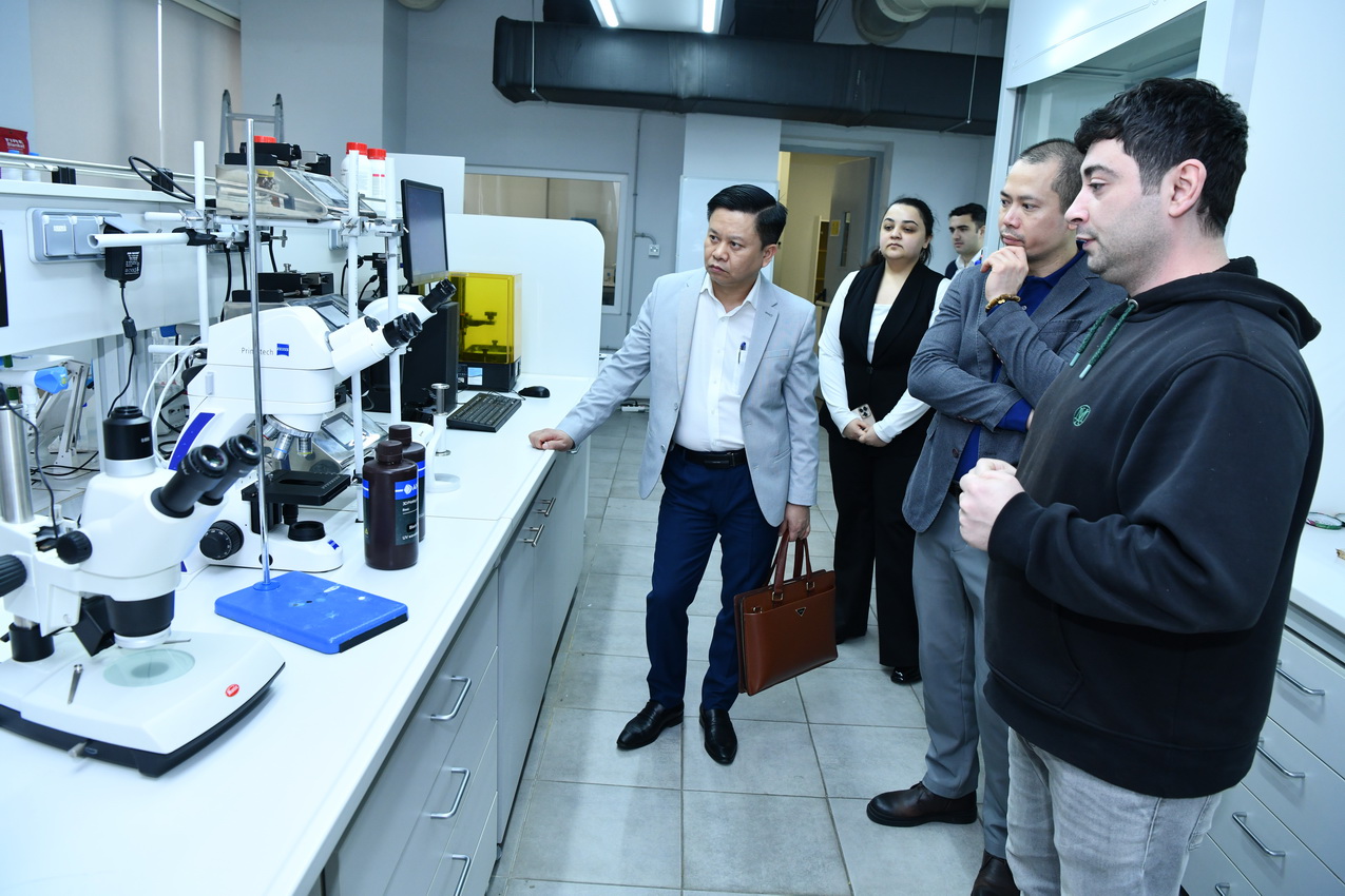 Nümayəndə heyəti səfər çərçivəsində ADNSU-da Tarix Muzeyi, Vyetnamın görkəmli siyasi xadimi, ilk Prezidenti Ho Şi Minin Memorial otağı, Kibertəhlükəsizlik laboratoriyası və UFAZ laboratoriyaları ilə tanış olub, universitetin tədqiqat infrastrukturu və innovasiya imkanlarını yaxından öyrəniblər.