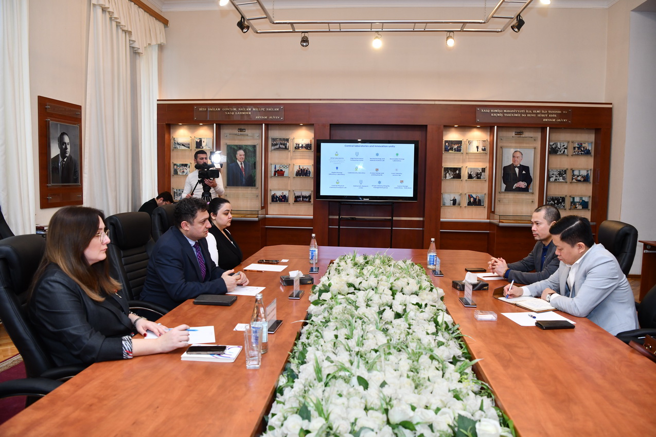 ADNSU-da səfərdə olan qonaqlar universitetin rəhbərliyi ilə görüşüblər. Görüşdə ADNSU-nun elm və innovasiya məsələləri üzrə prorektoru, dosent Elviz İsmayılov, Rektorun sosial məsələlər üzrə müşaviri Nəsibə Əmirbəyova və Beynəlxalq əməkdaşlıq şöbəsinin müdiri Həbibə Nəzirova iştirak edib.