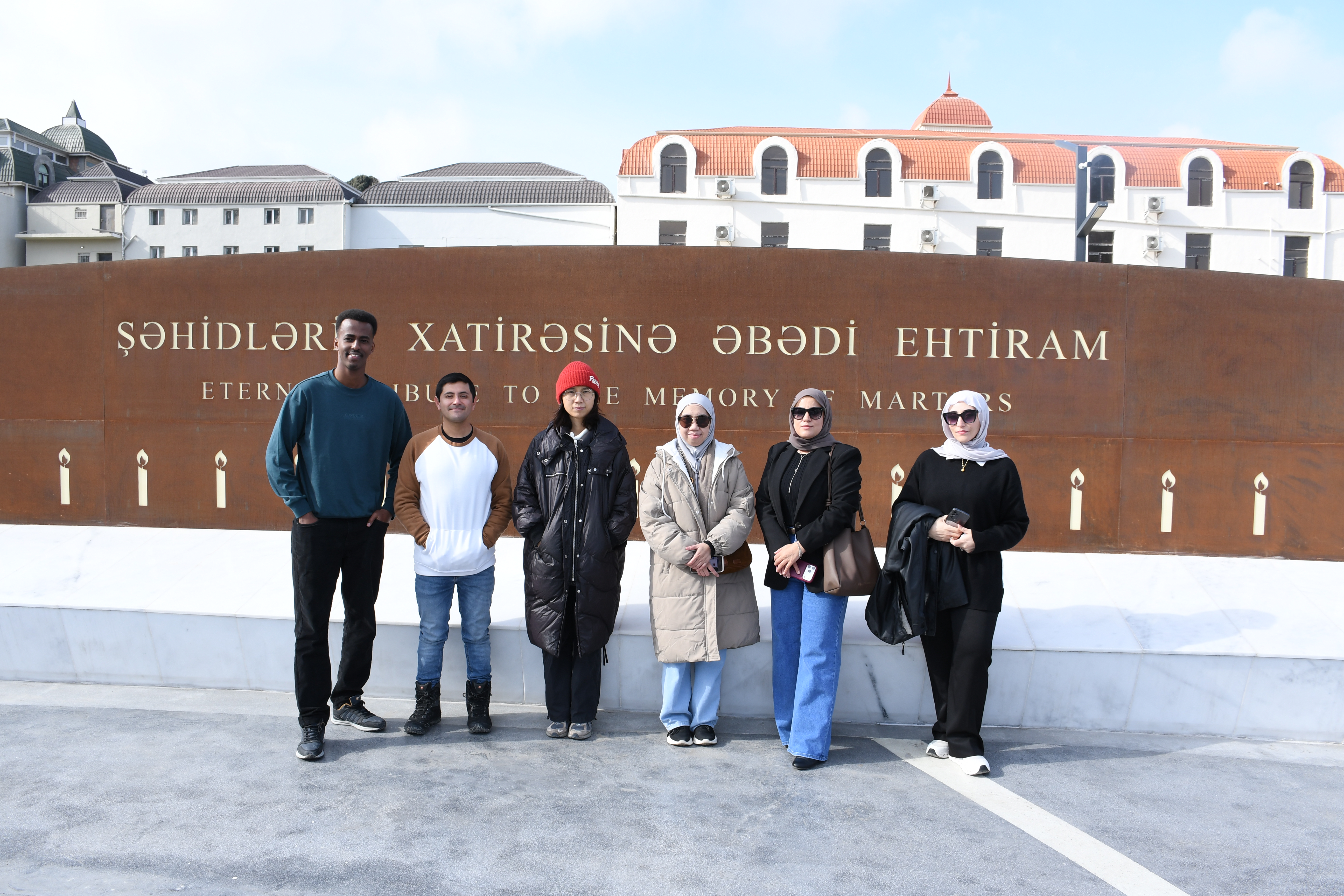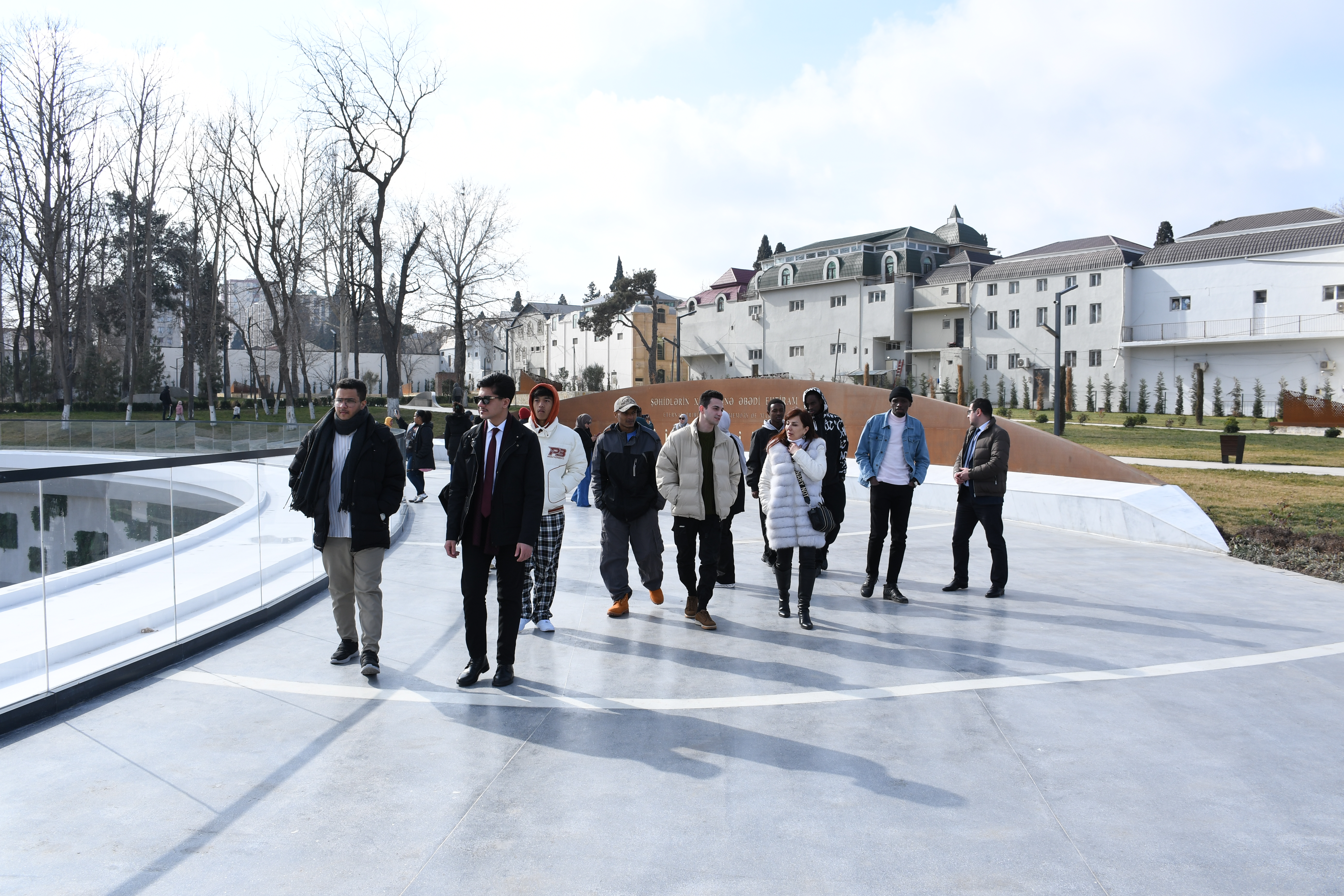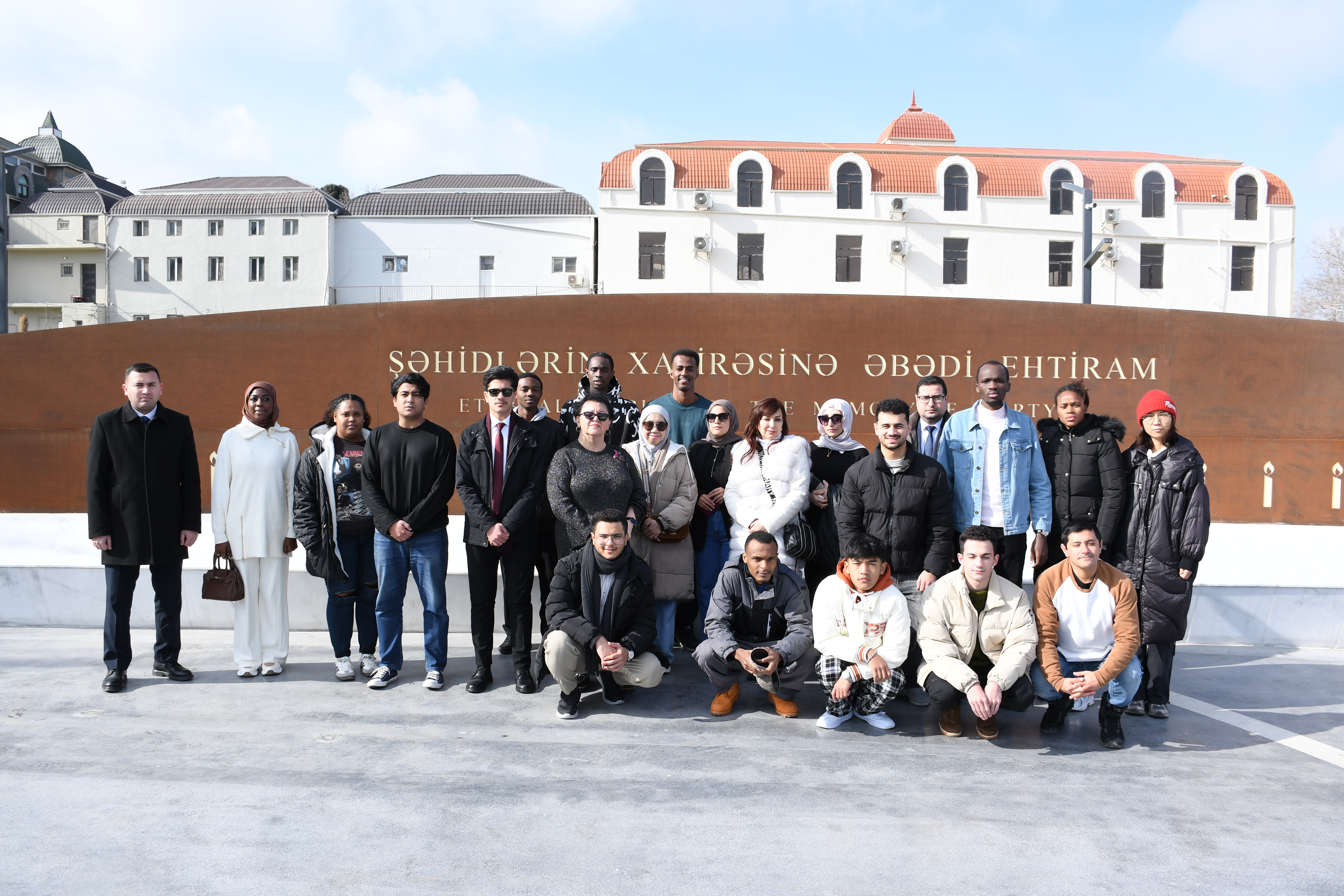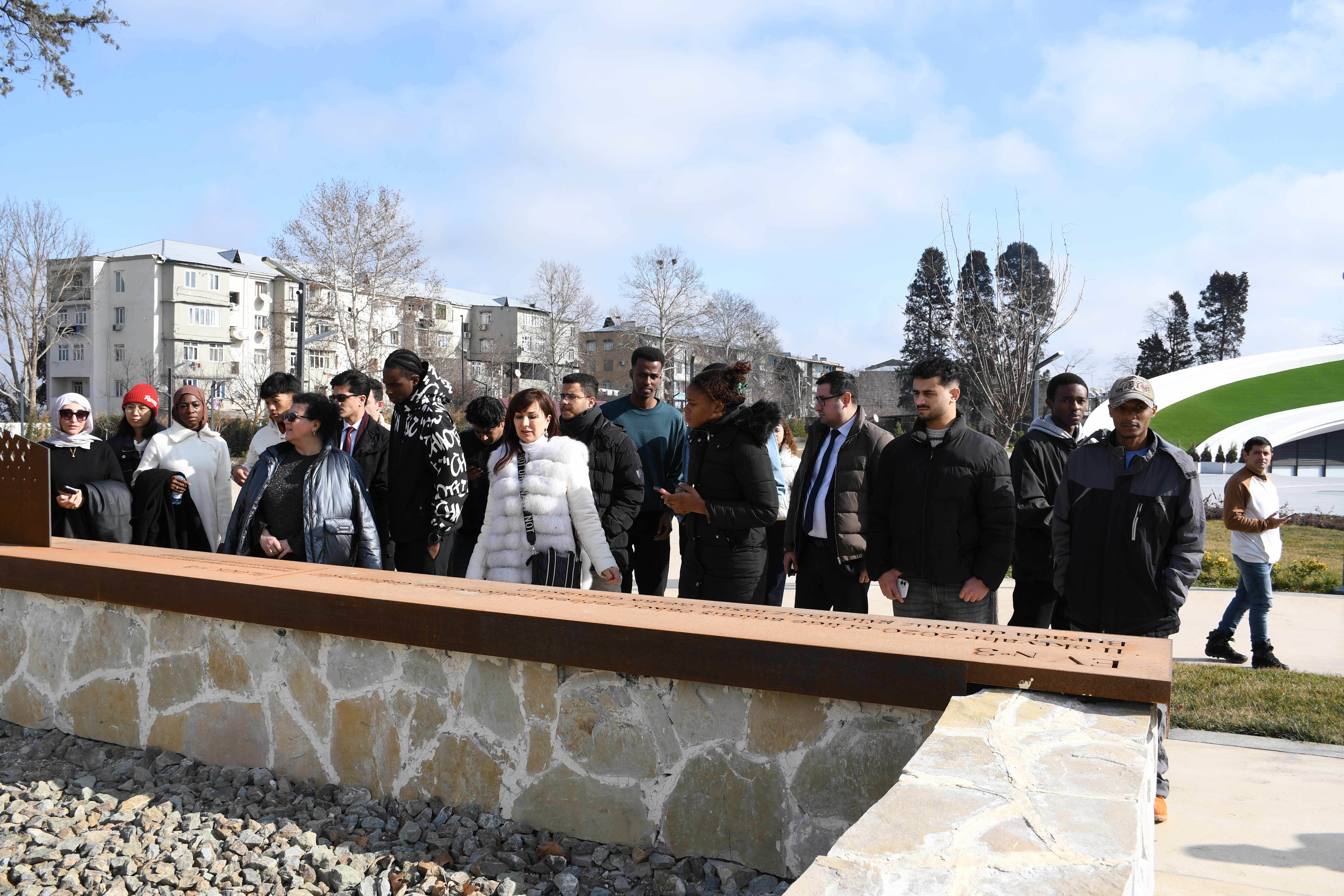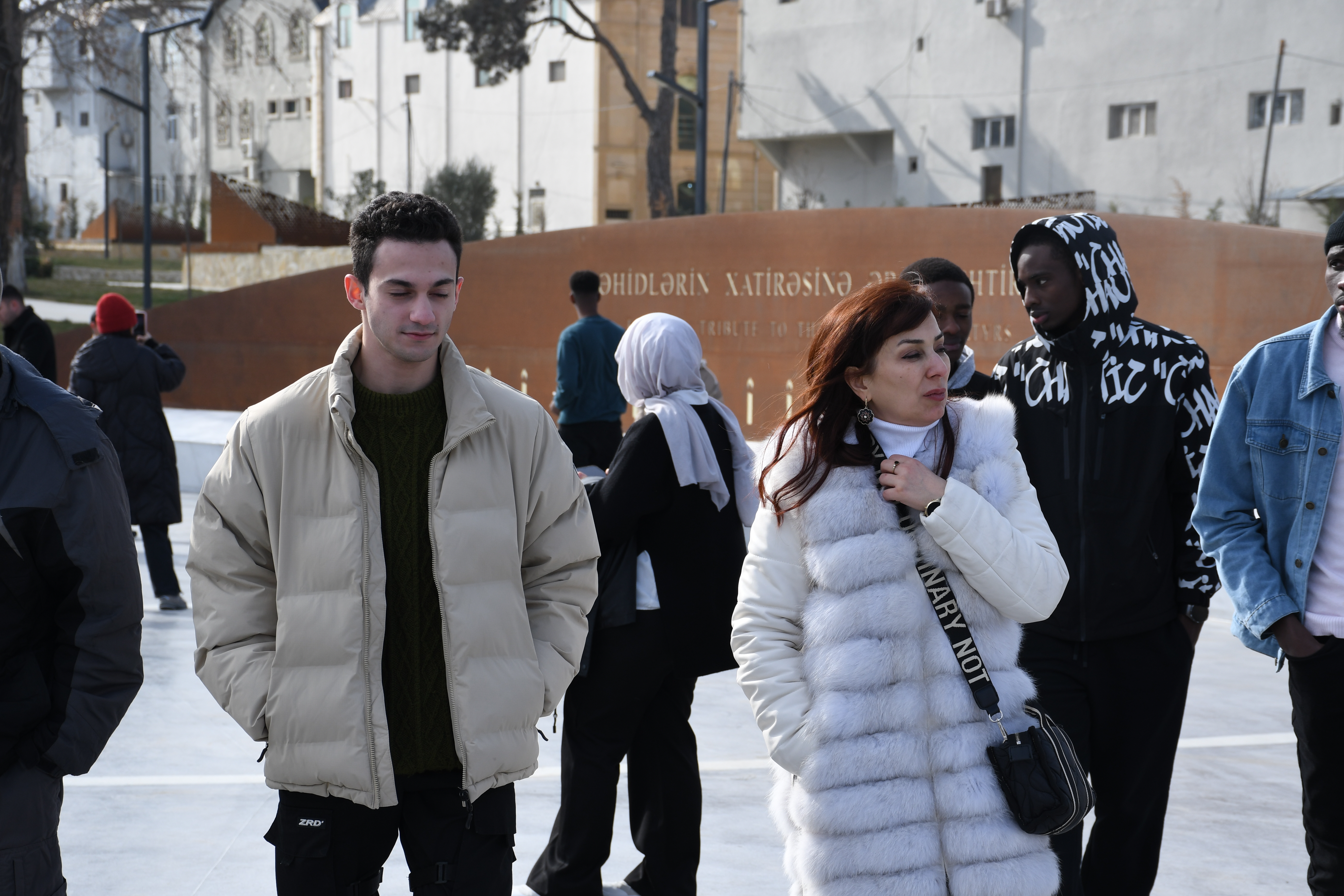 Səfərdə “Heydər Əliyev adına Beynəlxalq Təhsil Qrantı” proqramı çərçivəsində ADNSU-da təhsil alan, 20 ölkəni təmsil edən 20 nəfər əcnəbi tələbə iştirak edib. Proqramın ilk mərhələsində nümayəndə heyəti Gəncə Memorial Kompleksini ziyarət edərək Azərbaycanın tarixi, milli-mənəvi dəyərləri və dövlətçilik ənənələri ilə yaxından tanış olublar.