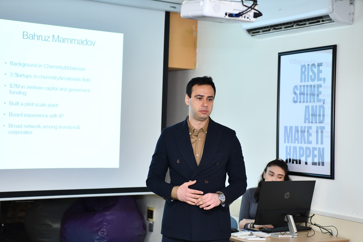 Azərbaycan Dövlət Neft və Sənaye Universitetində (ADNSU) Startup & TTO şöbəsinin təşkilatçılığı ilə materialşünaslıq və kimya sahəsində beynəlxalq təcrübəyə malik sahibkar, CEO və həmtəsisçi Bəhruz Məmmədov ilə görüş keçirilib. Tədbirdə universitetin akademik heyəti, doktorantlar, tədqiqatçılar və innovasiya fəaliyyəti ilə maraqlanan iştirakçılar yer alıblar.