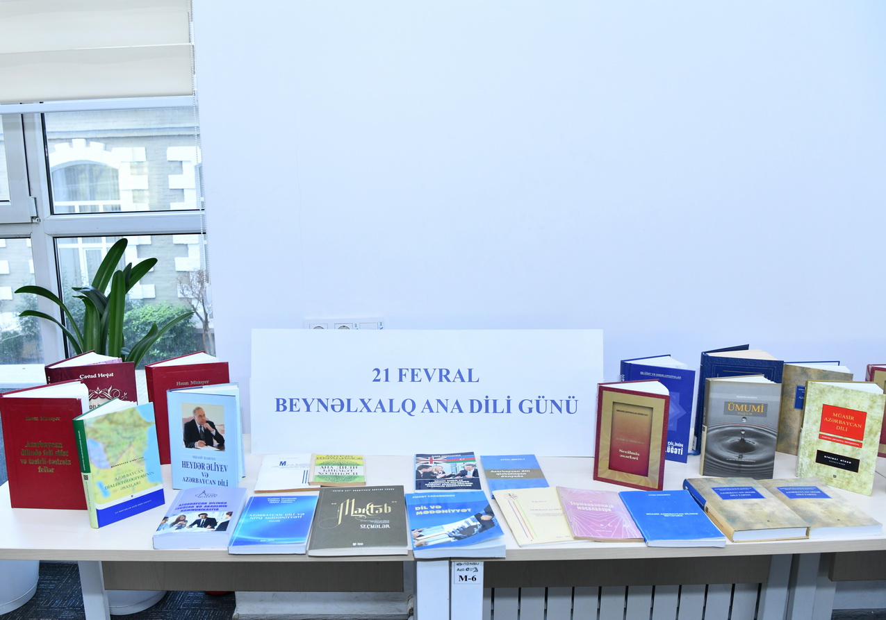 Tədbirin sonunda “Beynəlxalq Ana dili Günü”nə həsr olunmuş kitab sərgisi iştirakçılar tərəfindən maraqla qarşılanıb. Sərgidə Azərbaycan dilinin tarixi, ədəbi irsi və dilçilik elminə dair nəşrlər nümayiş etdirilib.