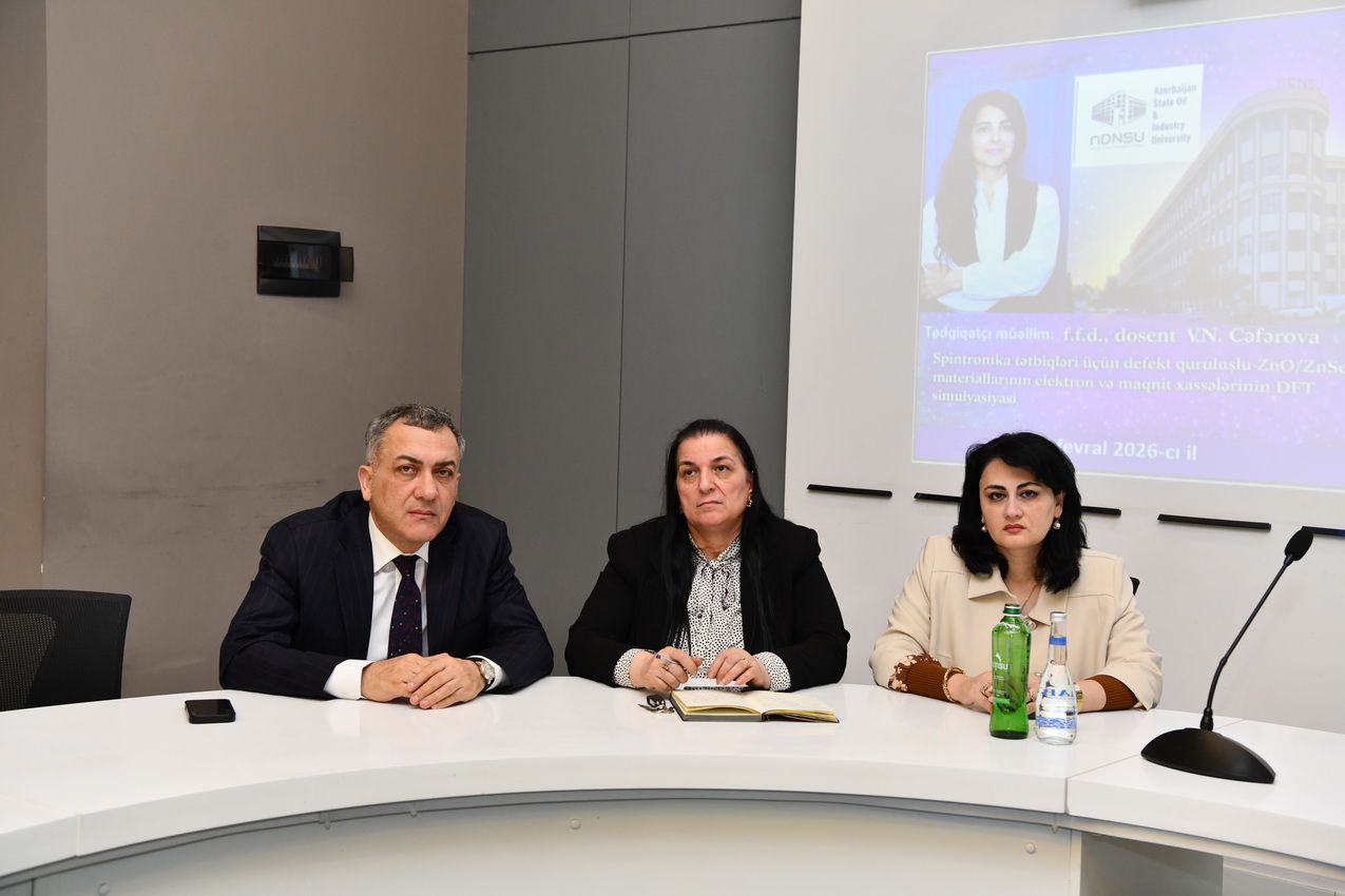 Azərbaycan Dövlət Neft və Sənaye Universitetində (ADNSU) “Spintronika tətbiqləri üçün TM ilə dopinq edilmiş ZnO/ZnSe-nin elektron və maqnit xüsusiyyətlərinin DFT simulyasiyası” mövzusunda elmi seminar keçirilib.