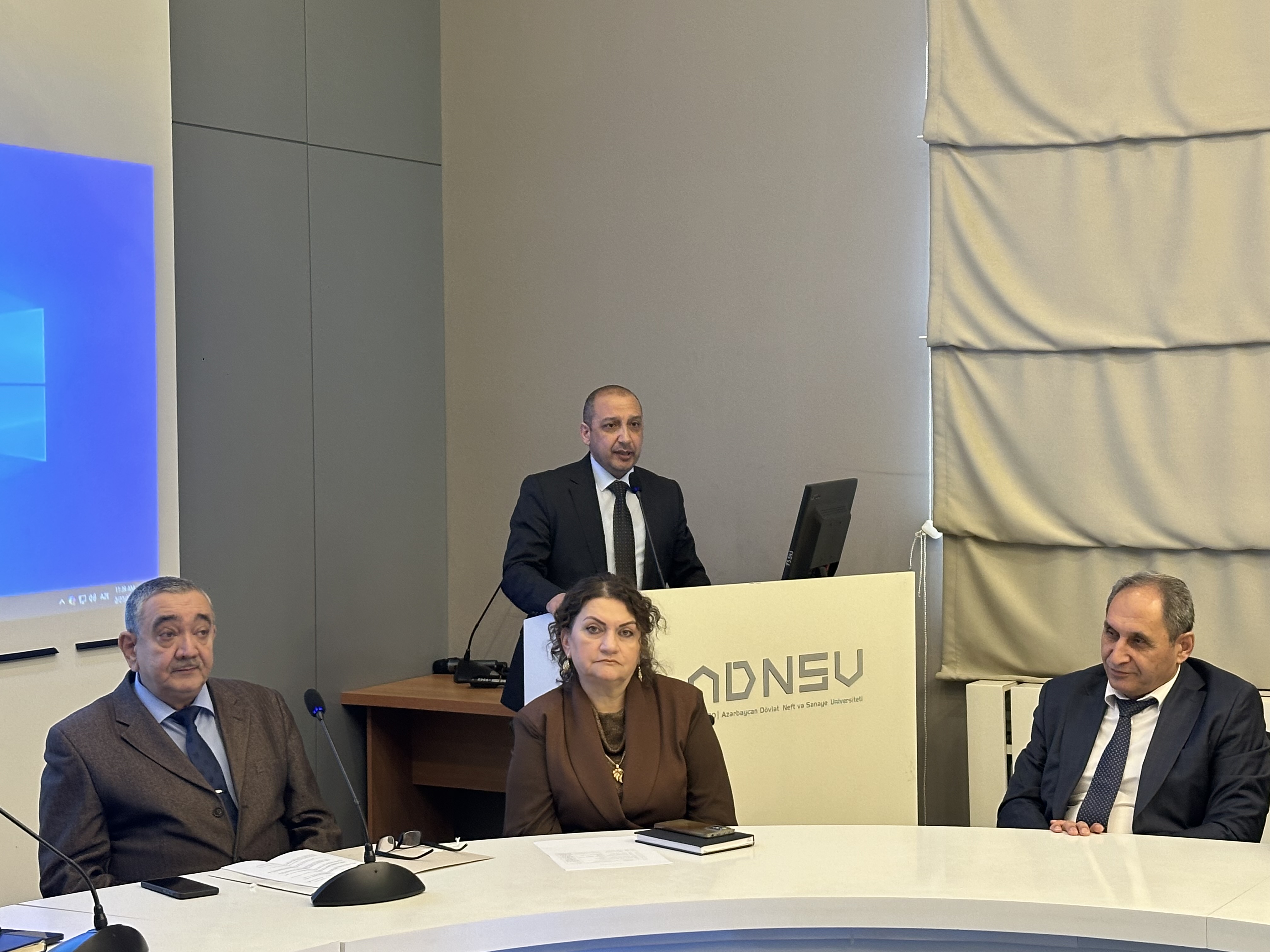 Tədbiri giriş sözü ilə açan ADNSU-nun ümumi işlər üzrə prorektoru Elnur İsmayılov təhlükəsizlik, mülki müdafiə, eləcə də ekoloji risklərin idarə olunmasından danışıb və bu baxımdan belə tədbirlərin əhəmiyyətli olduğunu bildirib. Prorektor çıxışında qeyd edib ki, mülki müdafiə, təhlükəsizlik, o cümlədən ekoloji təhlükəsizliyin təmin olunması insan sağlamlığının, iqtisadi sabitliyin və sosial rifahın müdafiəsini əhatə edir. Onun sözlərinə görə, təhlükəsizlik tədbirlərində ətraf mühitin qorunması mühüm qlobal məsələdir və bu baxımdan ekoloji risklərin qabaqlayıcı tədbirlər əsasında idarə olunması dayanıqlı inkişafın əsas şərtlərindən biri kimi qiymətləndirilir. Elnur İsmayılov iştirakçıların diqqətinə onu da çatdırıb ki, təhlükəsizlik sahəsində elmi yanaşmaların gücləndirilməsi və peşəkar kadr hazırlığı risklərin effektiv idarə edilməsində mühüm rol oynayır.