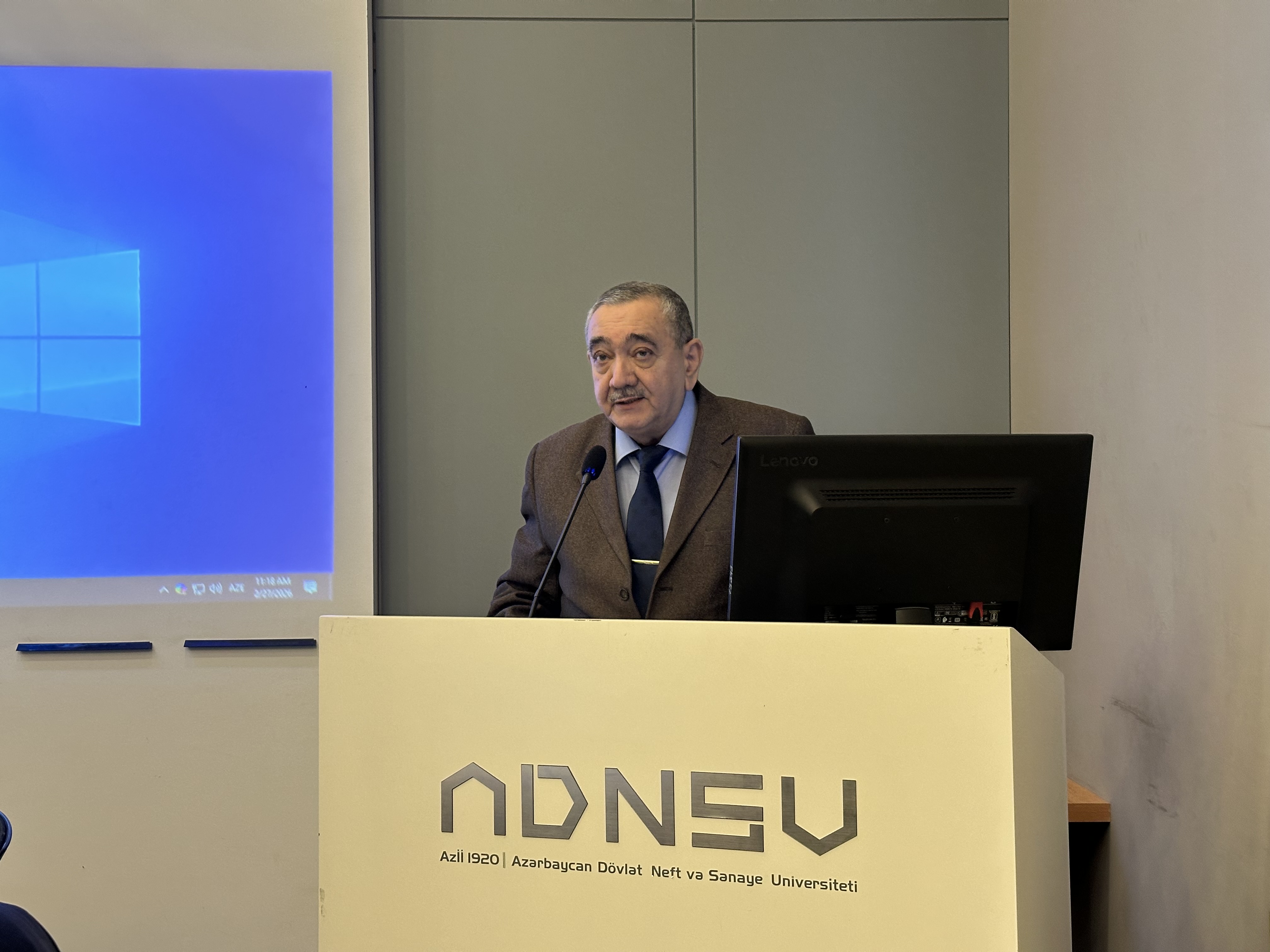 Tədbirdə ADNSU-nun 2 saylı poliklinikasının baş həkimi Xaqani Cəfərov fövqəladə hallar zamanı zərərçəkənlərə ilkin tibbi yardımın göstərilməsinin əhəmiyyəti barədə məlumat təqdim etdikdən sonra Sənaye təhlükəsizliyi və əməyin mühafizəsi kafedrasının dosenti Vəfa Kərimli ekoloji tarazlığın qorunması və risklərin idarə olunmasının elmi-praktik aspektləri haqqında çıxış edib.