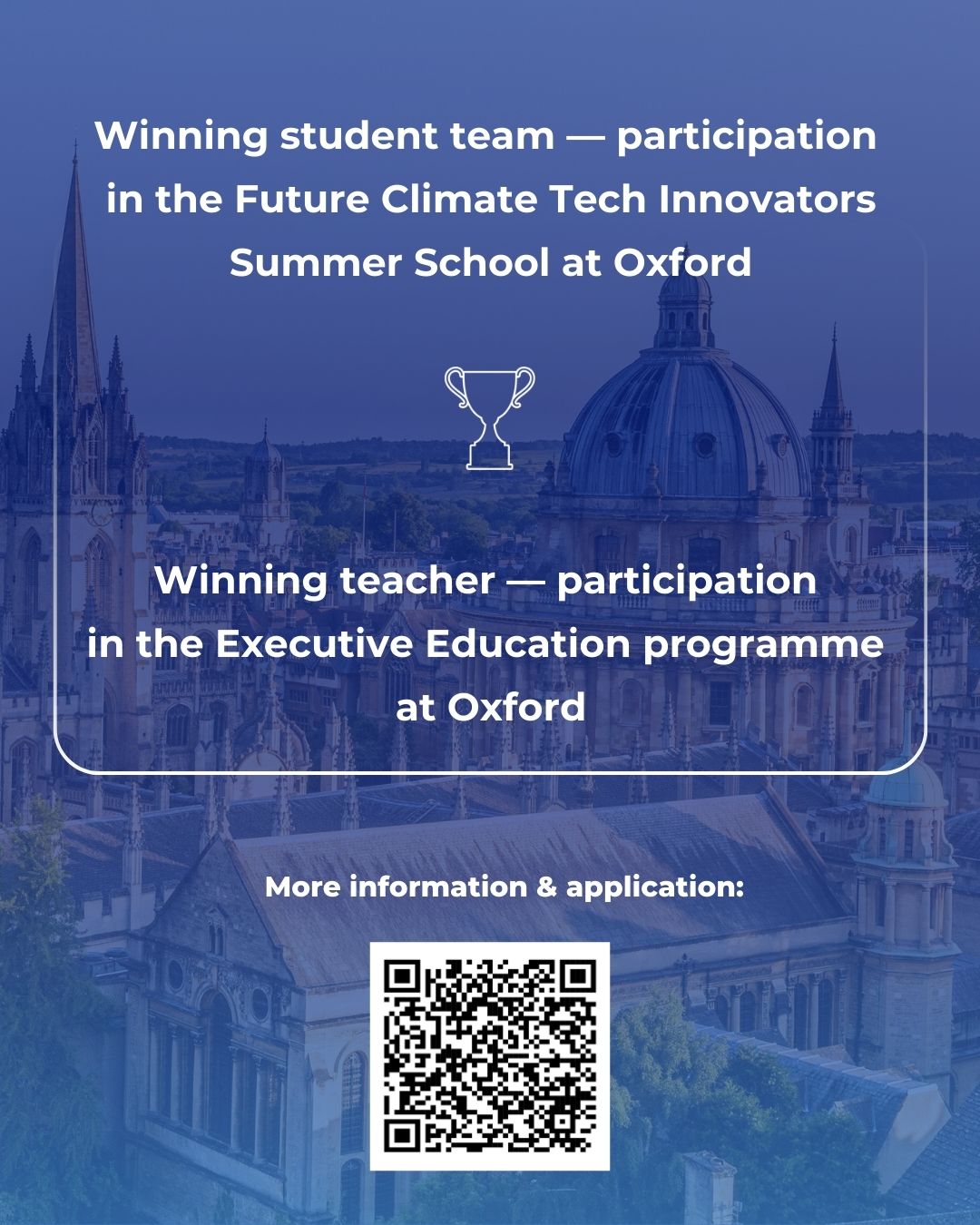 Müsabiqənin final mərhələsi 2026-cı ilin avqust ayında Oksfordda keçiriləcək. Finalçı şagird komandaları və müəllimlər Said Business Schoolda öz həllərini və dərs planlarını təqdim etmək imkanı əldə edəcəklər. Qalib şagird komandası 2027-ci ildə Oksfordda təşkil olunacaq “Future Climate Tech Innovators Summer School” proqramında iştirak üçün tam təqaüd qazanacaq. Qalib müəllim isə Said Business Schoolun əyani Executive Education proqramında iştirak etmək imkanı əldə edəcək. Finalçıların və qaliblərin bütün səfər və iştirak xərcləri təşkilatçılar tərəfindən qarşılanacaq.