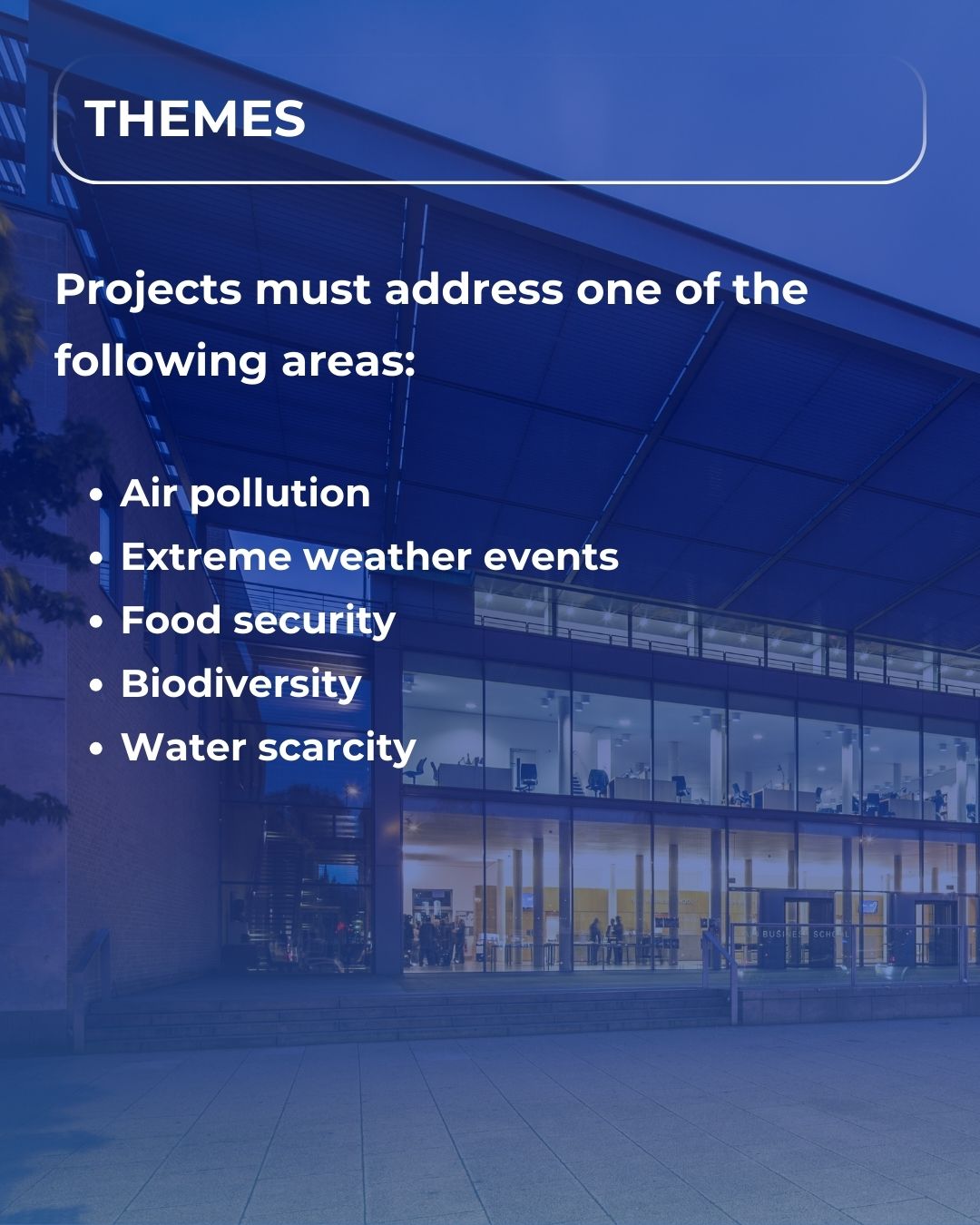 Müsabiqə çərçivəsində iştirakçılar hava çirklənməsi, ekstremal hava hadisələri, ərzaq təhlükəsizliyi, biomüxtəlifliyin itirilməsi və su qıtlığı kimi qlobal problemlər üzrə həllər hazırlayacaqlar. Layihədə texnologiyanın ətraf mühit dəyişikliklərinin monitorinqi, iqlim risklərinə uyğunlaşma və müxtəlif səviyyələrdə innovativ yanaşmaların tətbiqi baxımından xüsusi əhəmiyyət kəsb edir. Təşəbbüsün əsas məqsədi daha təmiz, təhlükəsiz və dayanıqlı gələcəyin formalaşdırılmasına töhfə verəcək yeni nəsil liderlərin yetişdirilməsidir.