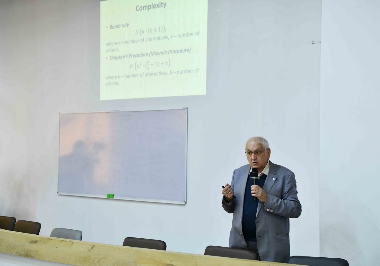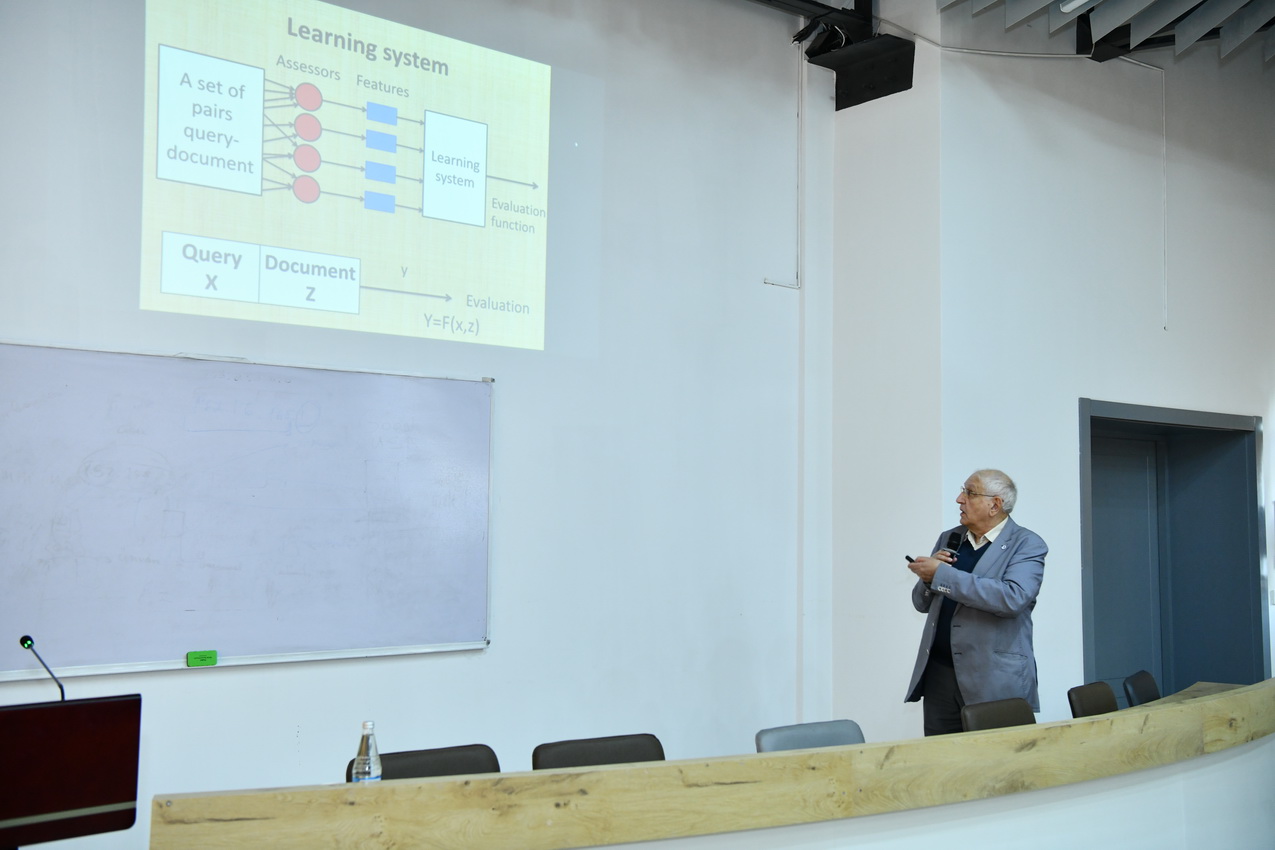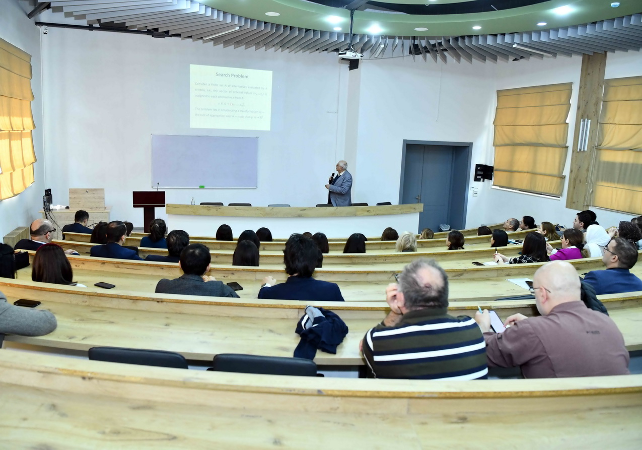 Daha sonra professor Fuad Ələsgərov mövzu üzrə məruzə ilə çıxış edib. O, çıxışında müasir elmi tədqiqatlarda süni intellektin tətbiqi imkanları, böyük verilənlərin analizi, alqoritmik modelləşdirmə üsulları və bu texnologiyaların elmi araşdırmaların keyfiyyətinin artırılmasında rolundan bəhs edib. Professor həmçinin süni intellekt əsaslı metodların akademik tədqiqatlarda istifadə perspektivləri, rəqəmsal transformasiya prosesləri və data analitikasının inkişaf istiqamətləri barədə iştirakçılara ətraflı məlumat verib. Mövzu ilə bağlı iştirakçıların sualları cavablandırılıb.