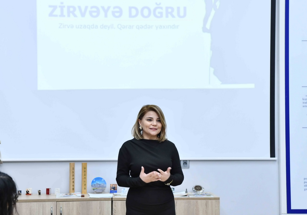 Təlim Azər Leqal Şirkətlər Qrupunun rəhbəri Günel Əliyeva tərəfindən keçirilib. Təlim zamanı iştirakçılar motivasiya, şəxsi potensialın üzə çıxarılması, özünəinamın formalaşdırılması və karyera inkişafı mövzularında məlumat əldə edib, interaktiv müzakirələrdə iştirak ediblər.