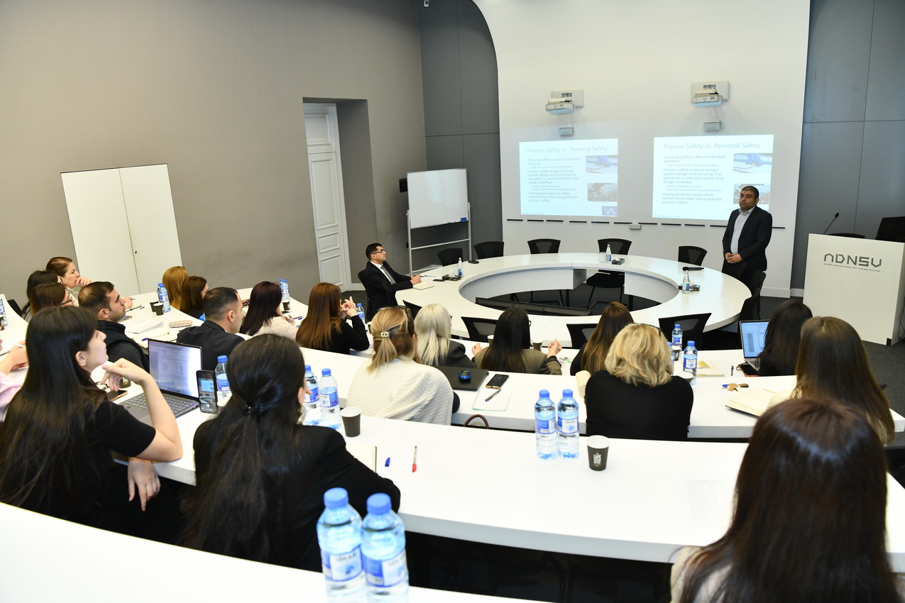 Universitetin Sənaye təhlükəsizliyi və əmək mühafizəsi kafedrasının əməkdaşları üçün nəzərdə tutulan təlimin ilk sessiyası bp şirkətinin baş proses mühəndisi Murad Cəfərov tərəfindən aparılıb.