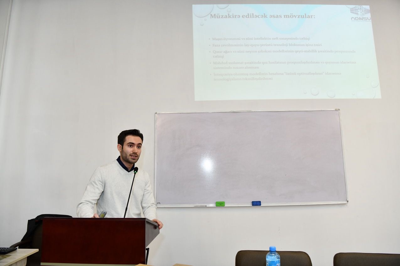 Martın 16-da Azərbaycan Dövlət Neft və Sənaye Universitetində (ADNSU) süni intellektin qaz hasilatı quyularında tətbiqinə dair seminar keçirilib. Seminar BP Exploration (Caspian Sea) LTD-də əməliyyat sahəsinin meneceri Vüqar Fətəliyev tərəfindən keçirilib. ADNSU-nun Məzunlarla İş və Karyera Mərkəzinin təşəbbüsü ilə təşkil olunan “Süni intellekt modellərinin qaz hasilatı quyularının “özünü optimallaşdırma” texnologiyalarına tətbiqi məsələləri” mövzusunda seminarda qaz hasilatı prosesində lay-quyu-yerüstü sistemlərində baş verən faza çevrilmələrinin fiziki-termodinamik xüsusiyyətləri və bunun yaratdığı texnoloji çətinliklər barədə məlumat verilib.