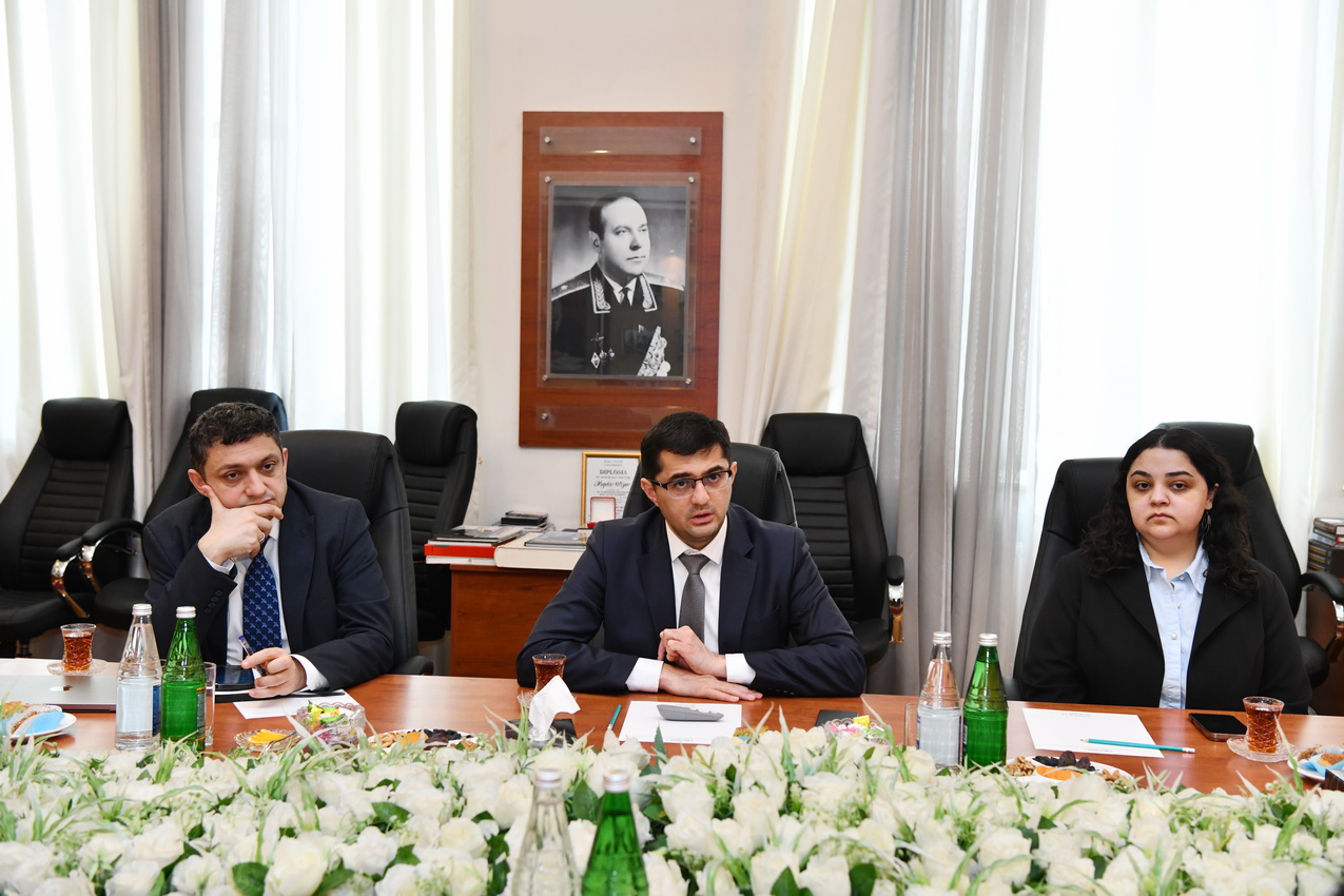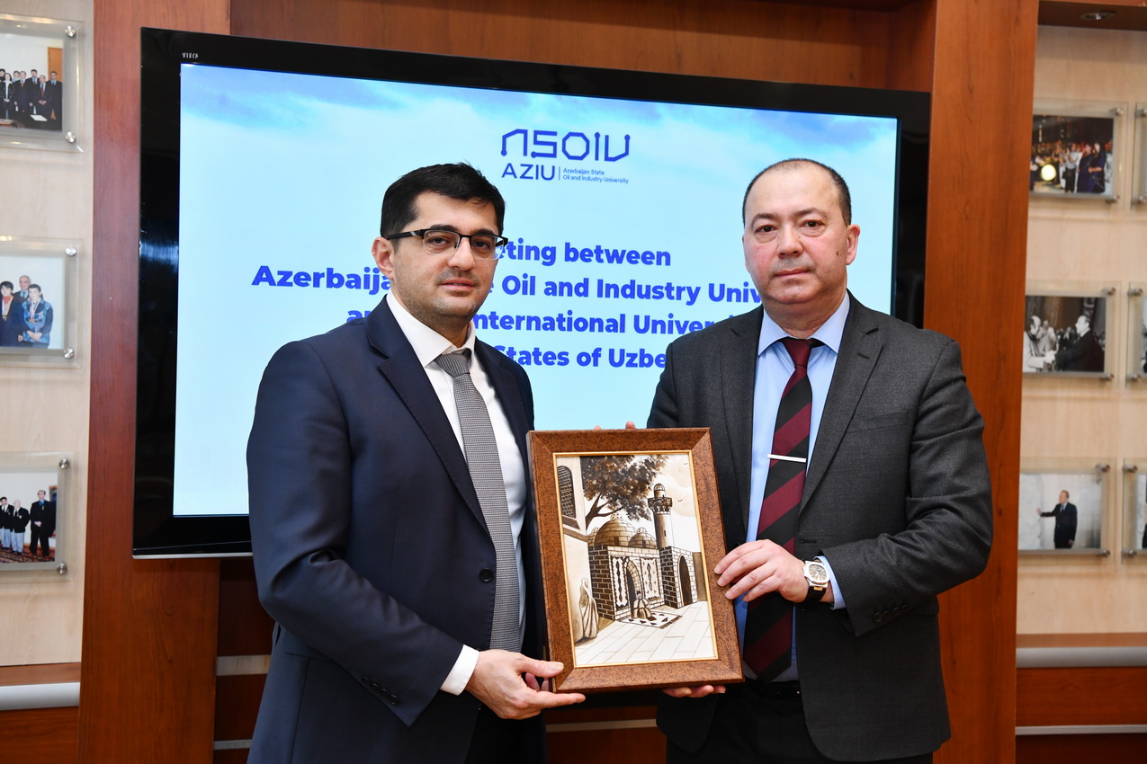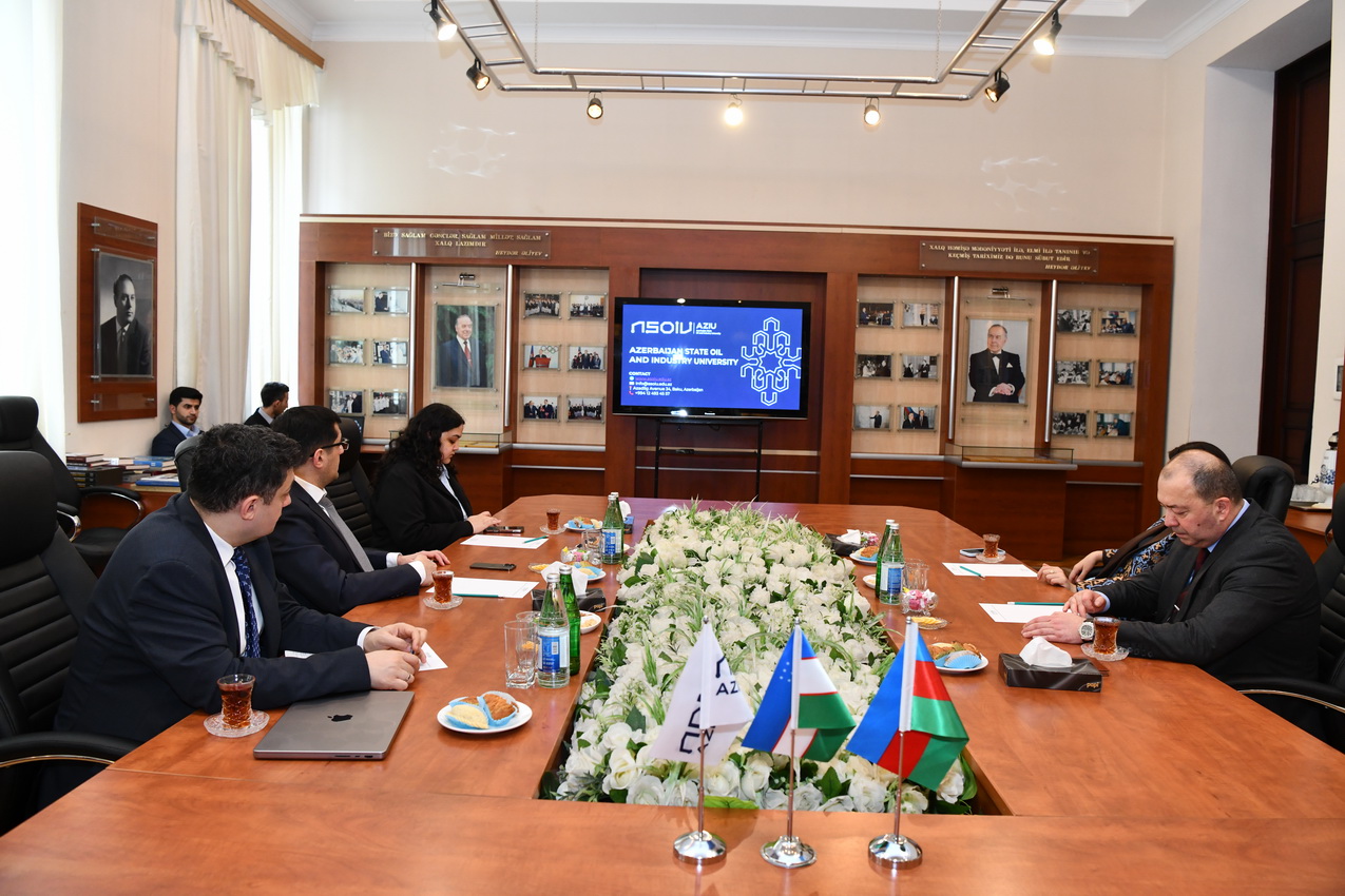 Qonaqlar Azərbaycan Dövlət Neft və Sənaye Universitetinin rektoru, dosent Rüfət Əzizovla görüşüblər.