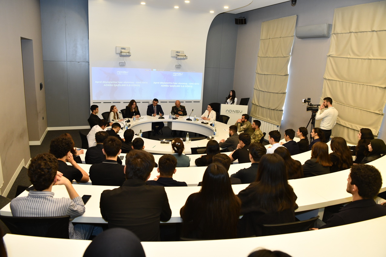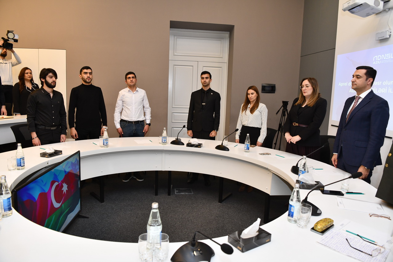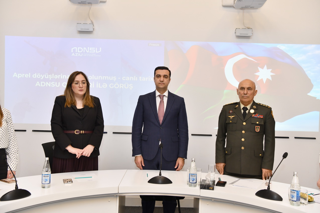 Tədbirdə giriş nitqi ilə çıxış edən ADNSU-nun ümumi işlər üzrə prorektoru Elnur İsmayılov Aprel döyüşlərinin Azərbaycan tarixində mühüm yer tutduğunu vurğulayıb. O bildirib ki, 2016-cı ilin aprelində baş vermiş döyüşlər xalqımızın mübarizə əzmini, ordumuzun yüksək peşəkarlığını və dövlətimizin qətiyyətini bütün dünyaya nümayiş etdirib.