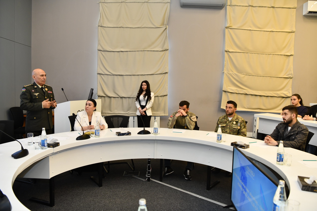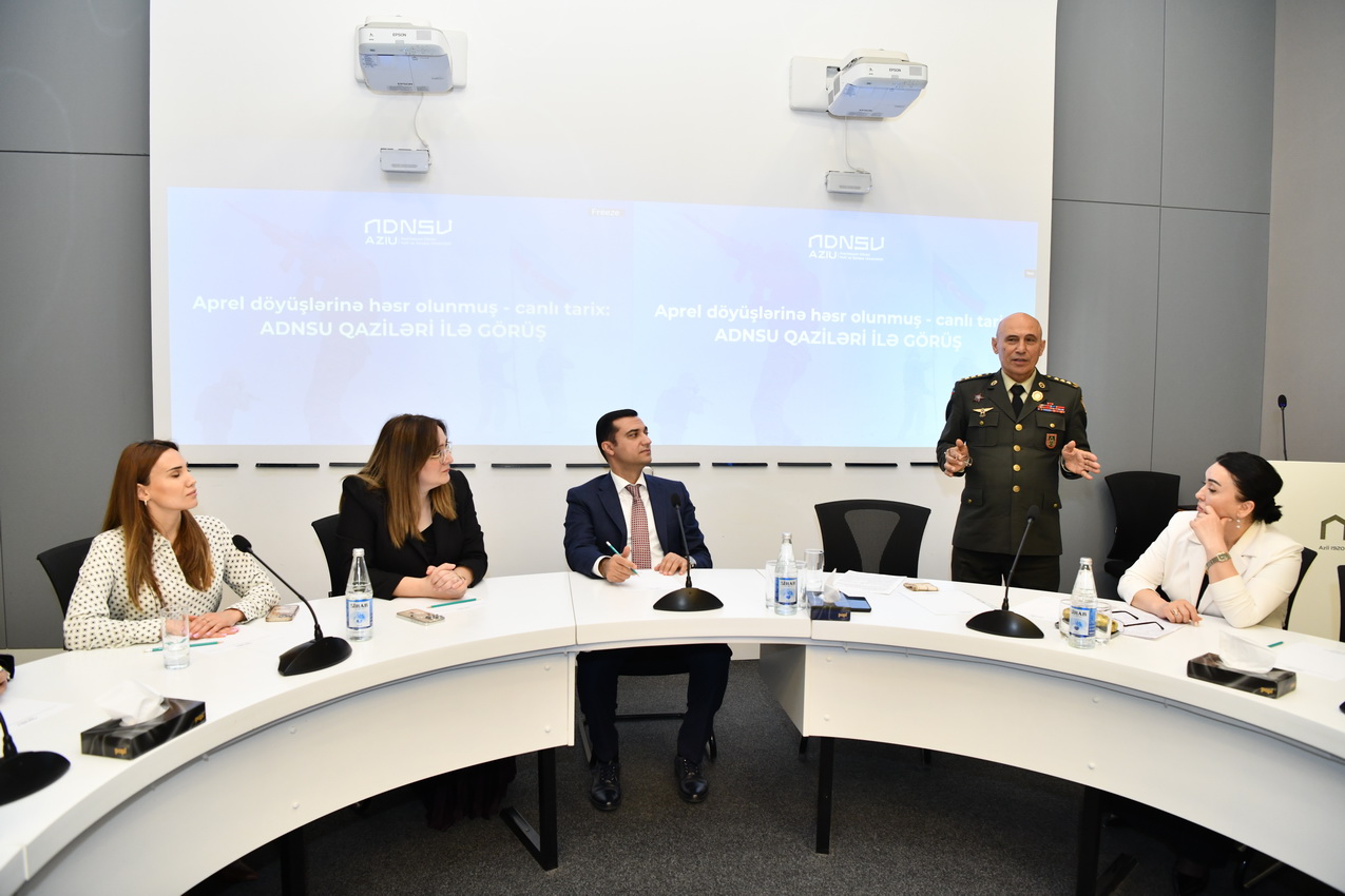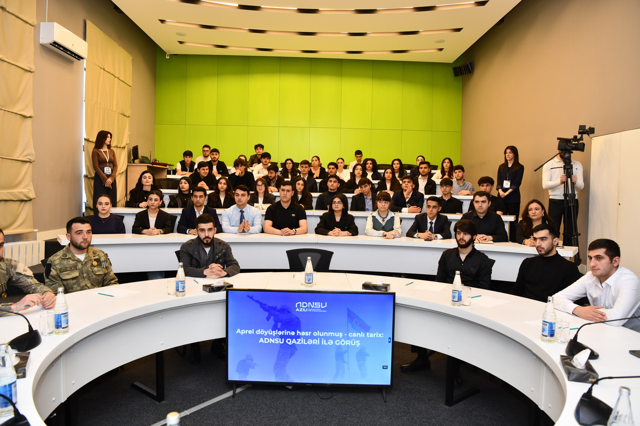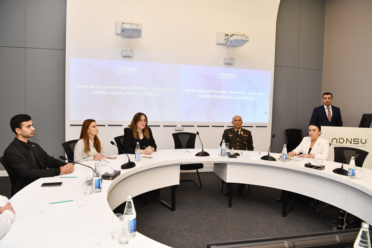 Tədbirdə giriş nitqi ilə çıxış edən ADNSU-nun ümumi işlər üzrə prorektoru Elnur İsmayılov Aprel döyüşlərinin Azərbaycan tarixində mühüm yer tutduğunu vurğulayıb. O bildirib ki, 2016-cı ilin aprelində baş vermiş döyüşlər xalqımızın mübarizə əzmini, ordumuzun yüksək peşəkarlığını və dövlətimizin qətiyyətini bütün dünyaya nümayiş etdirib.