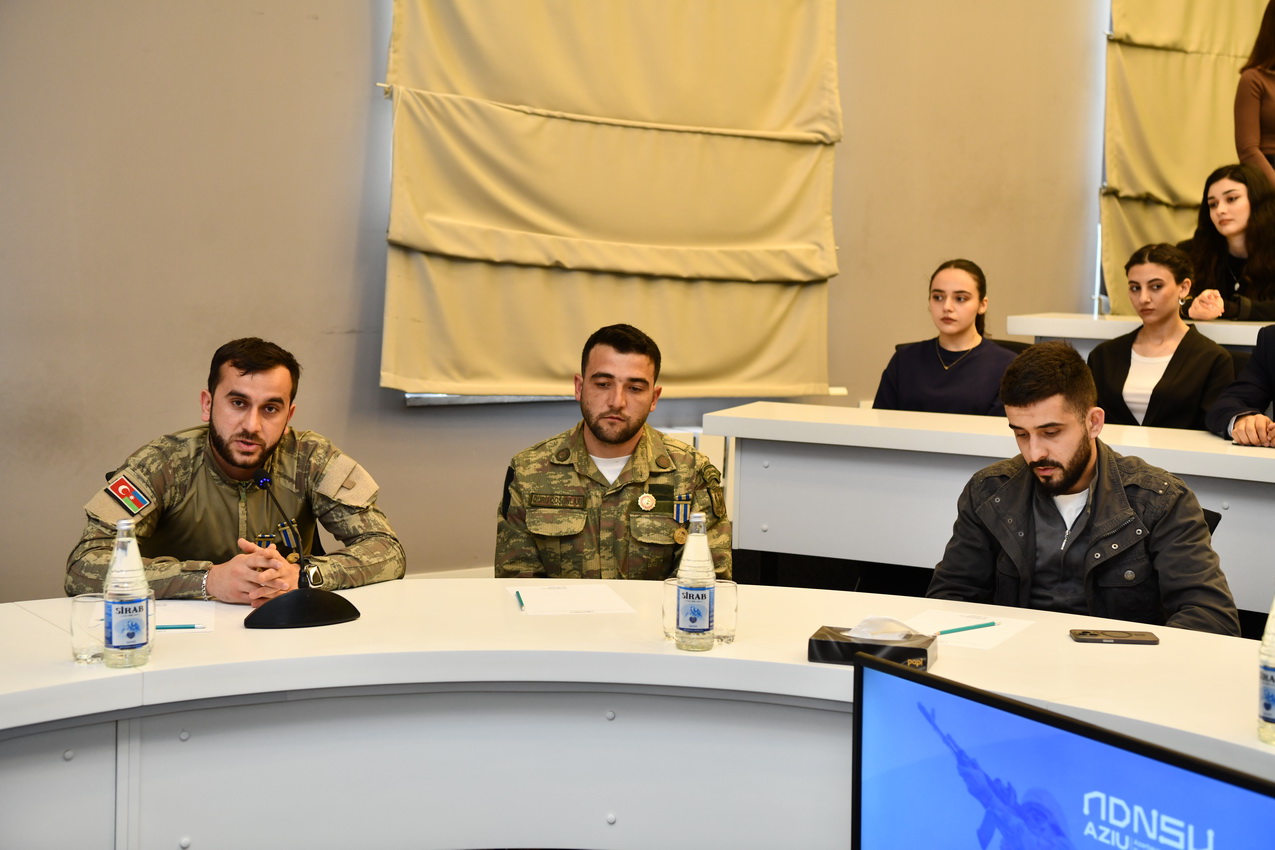 Anım tədbiri panel müzakirələrlə davam edib. Paneldə Vətən müharibəsi iştirakçıları, eyni zamanda ADNSU ailəsinin üzvləri olan qazilər: İbrahimli Elşad, Kərimov Səbuhi, Sadıxzadə Orxan, Piriyev Azər və Məmmədli Çingiz çıxış edərək döyüş xatirələrini bölüşüb, gənclərə vətənpərvərlik ruhunda tövsiyələr veriblər.